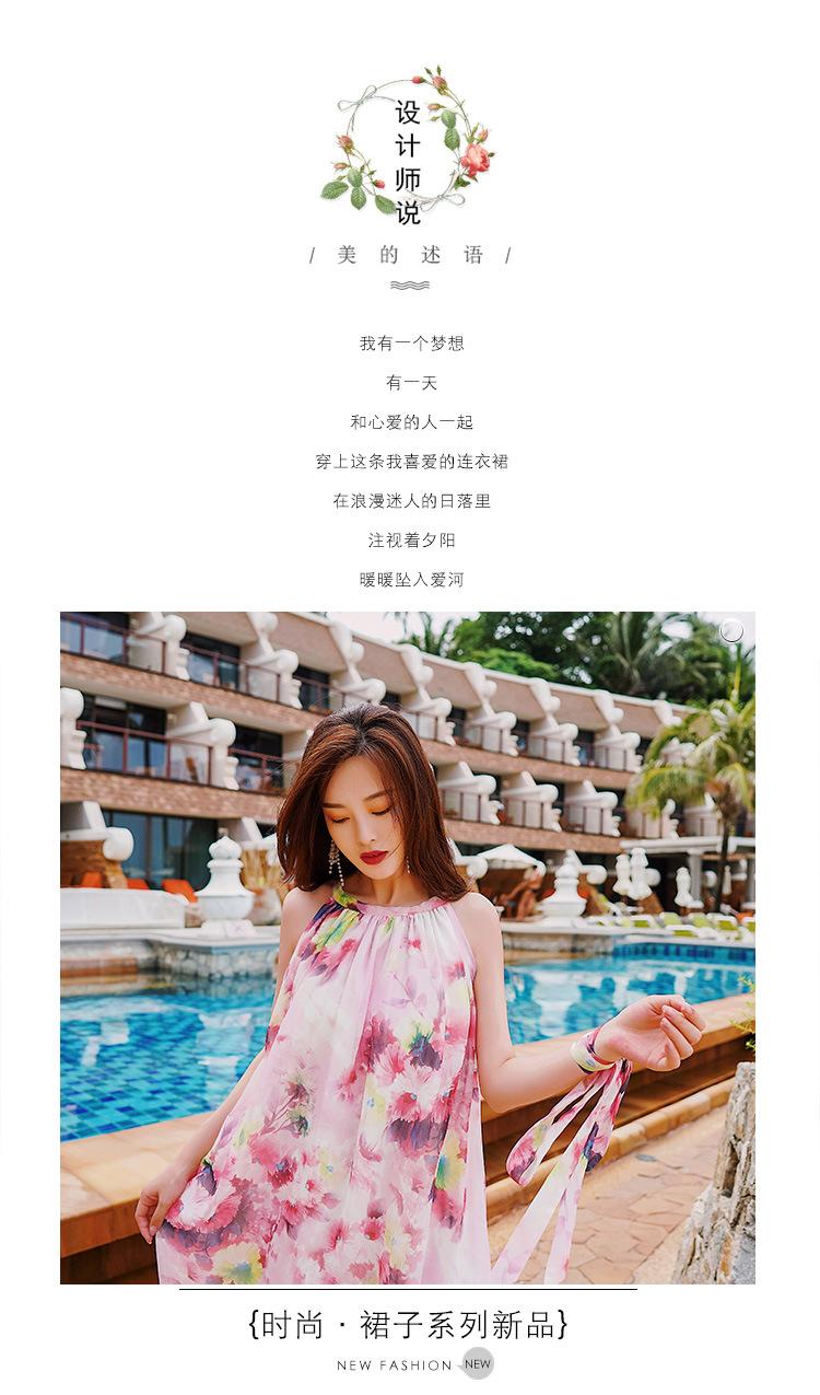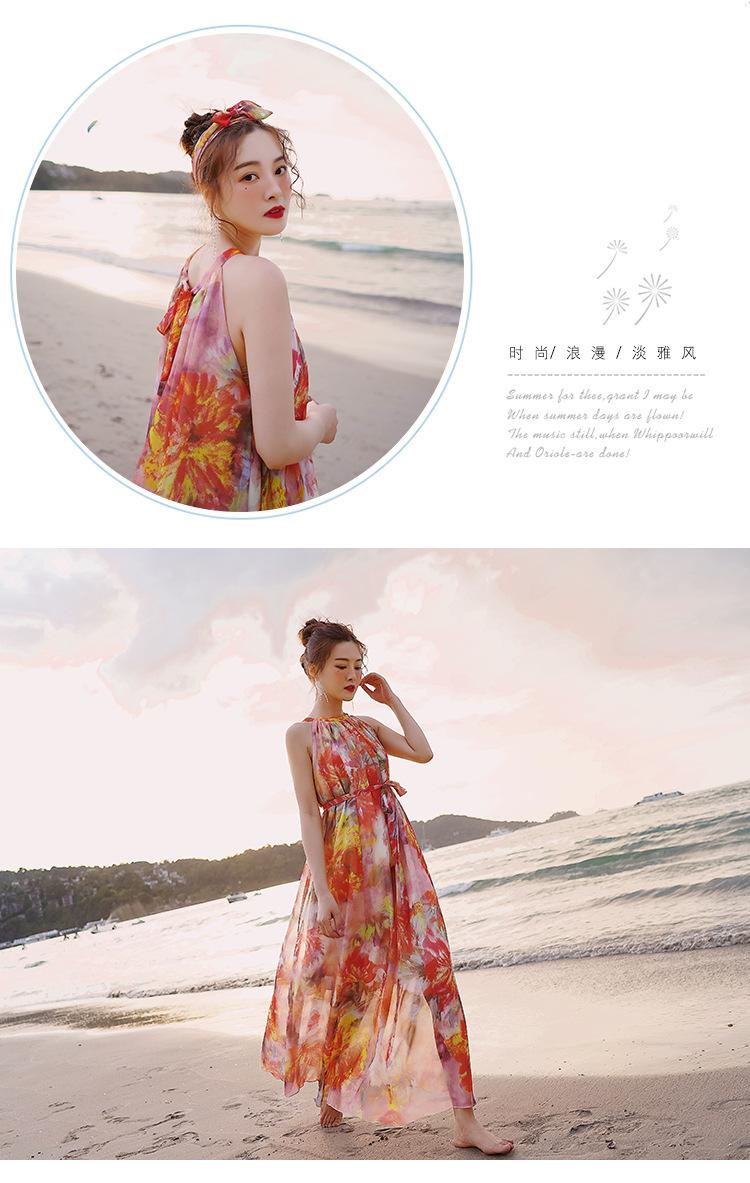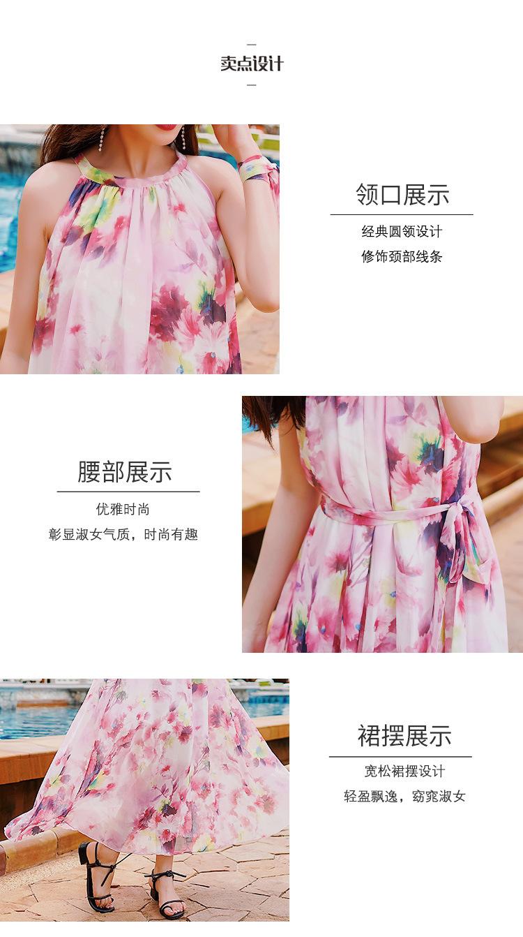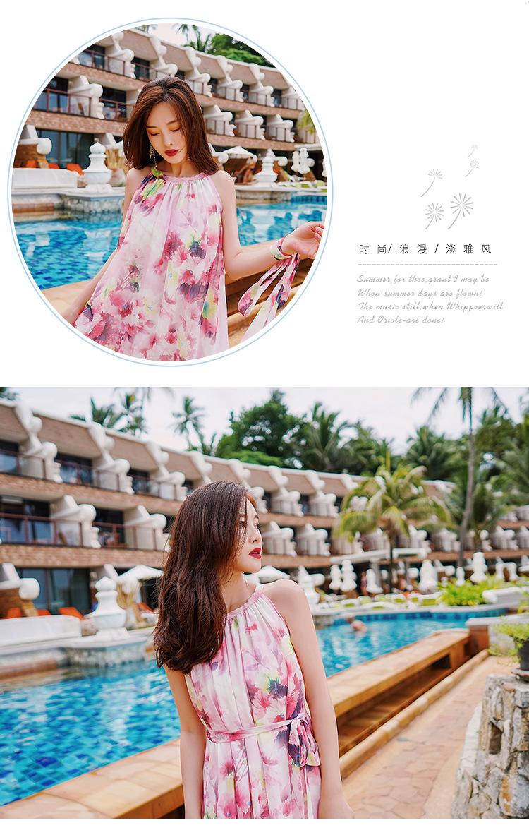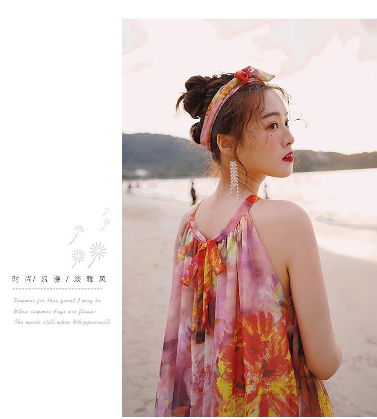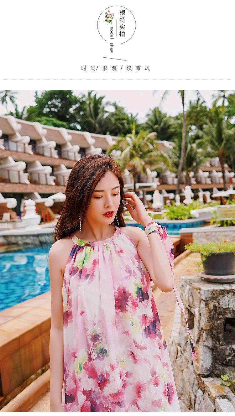 Foto Real Vestido de Chifón Floral con Tirantes Talla Grande Largo Bohemio Vacaciones Playa Cuello Vestido Largo Hada