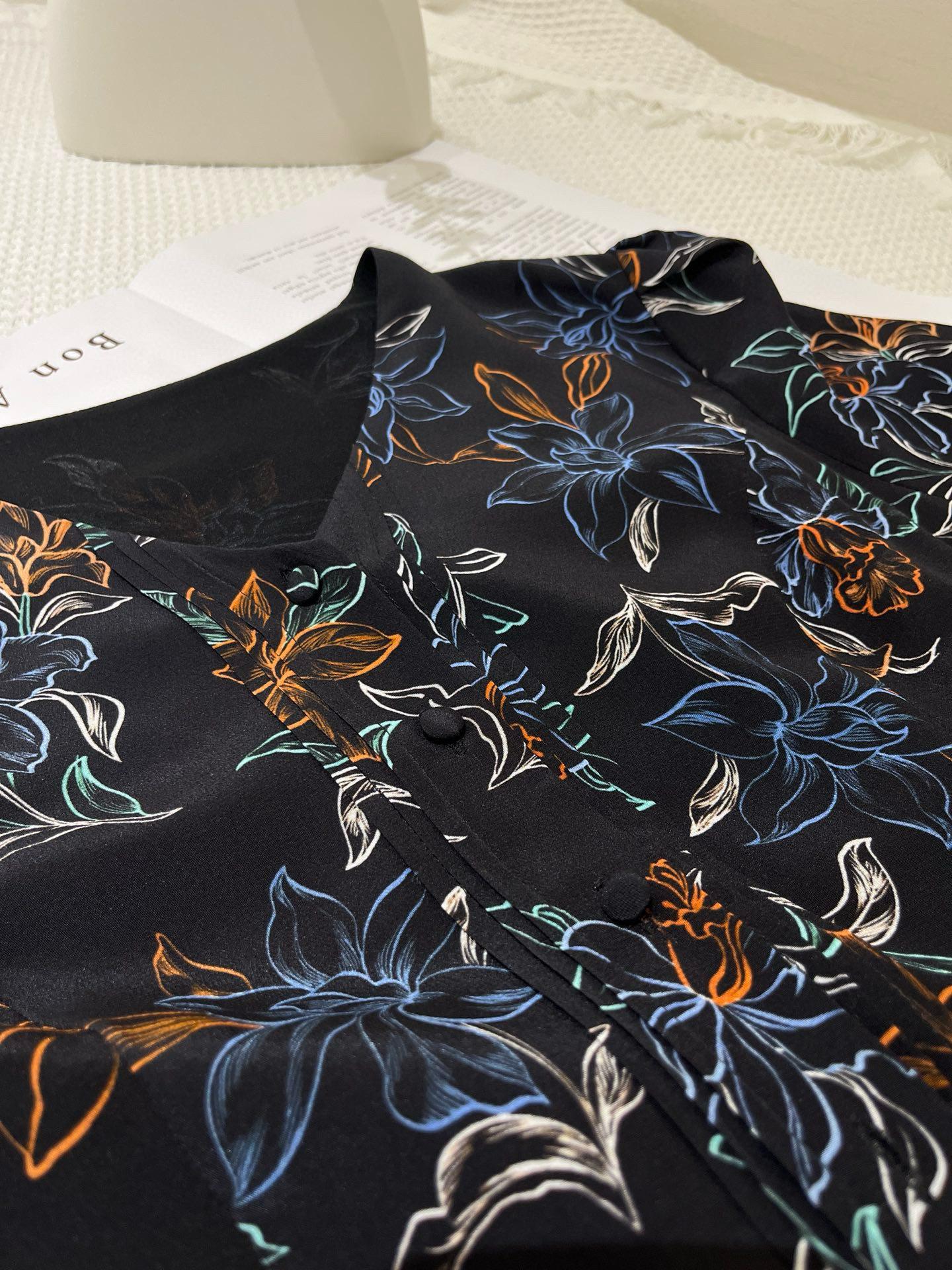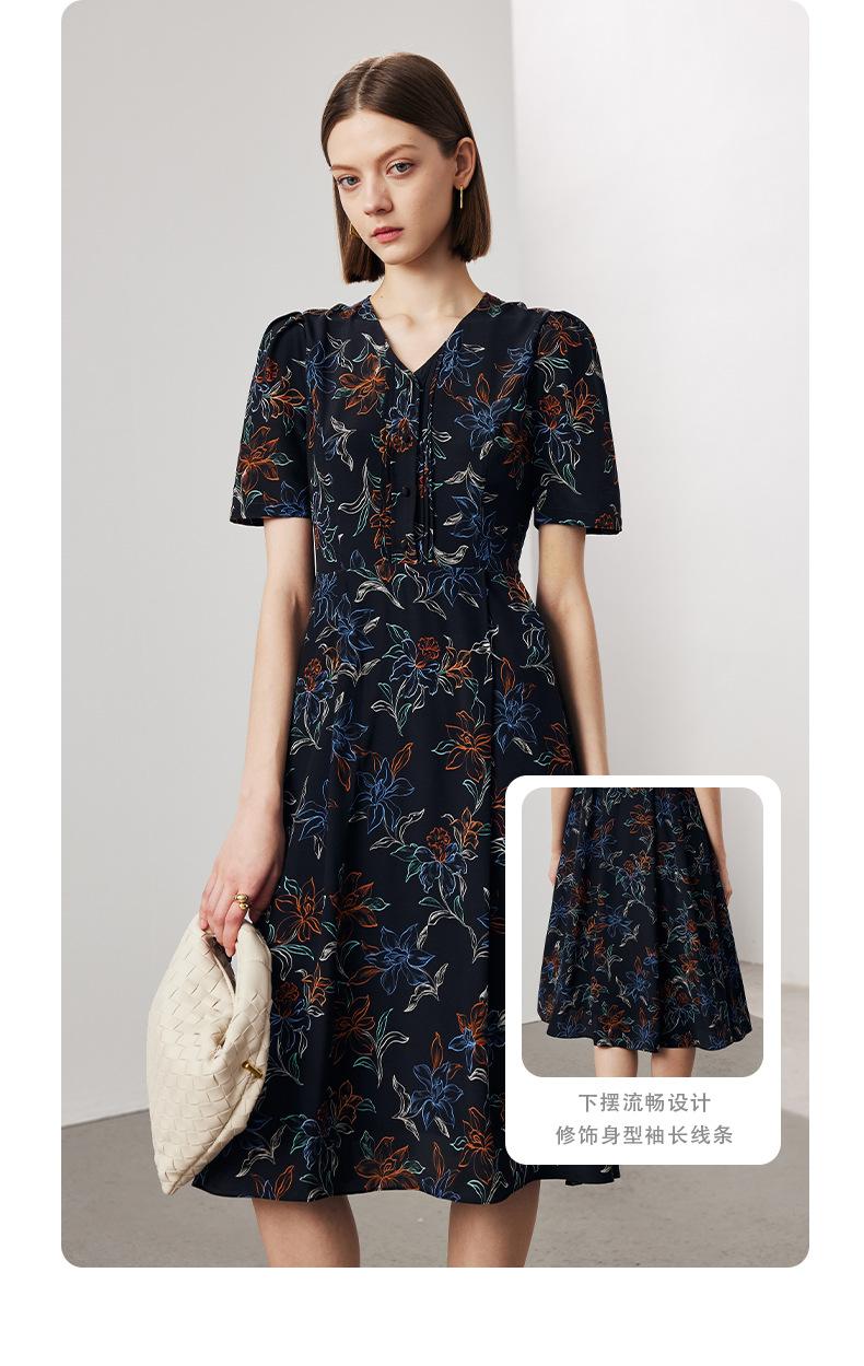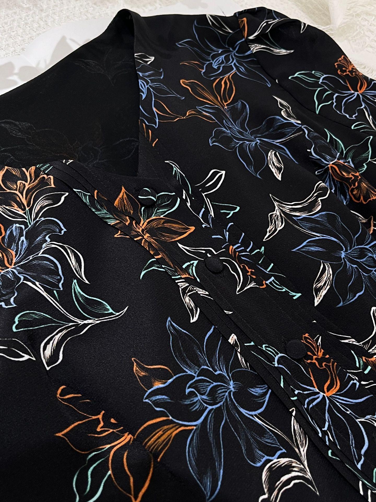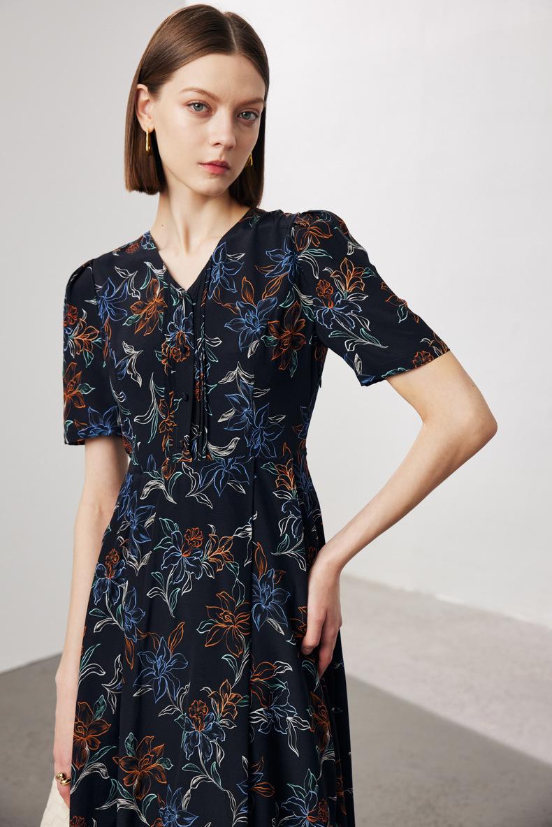 Vestido de Seda de Manga Corta Estampado Primavera y Verano 2025 Nuevo Estilo 100% Seda de Morera Elegante Falda Larga