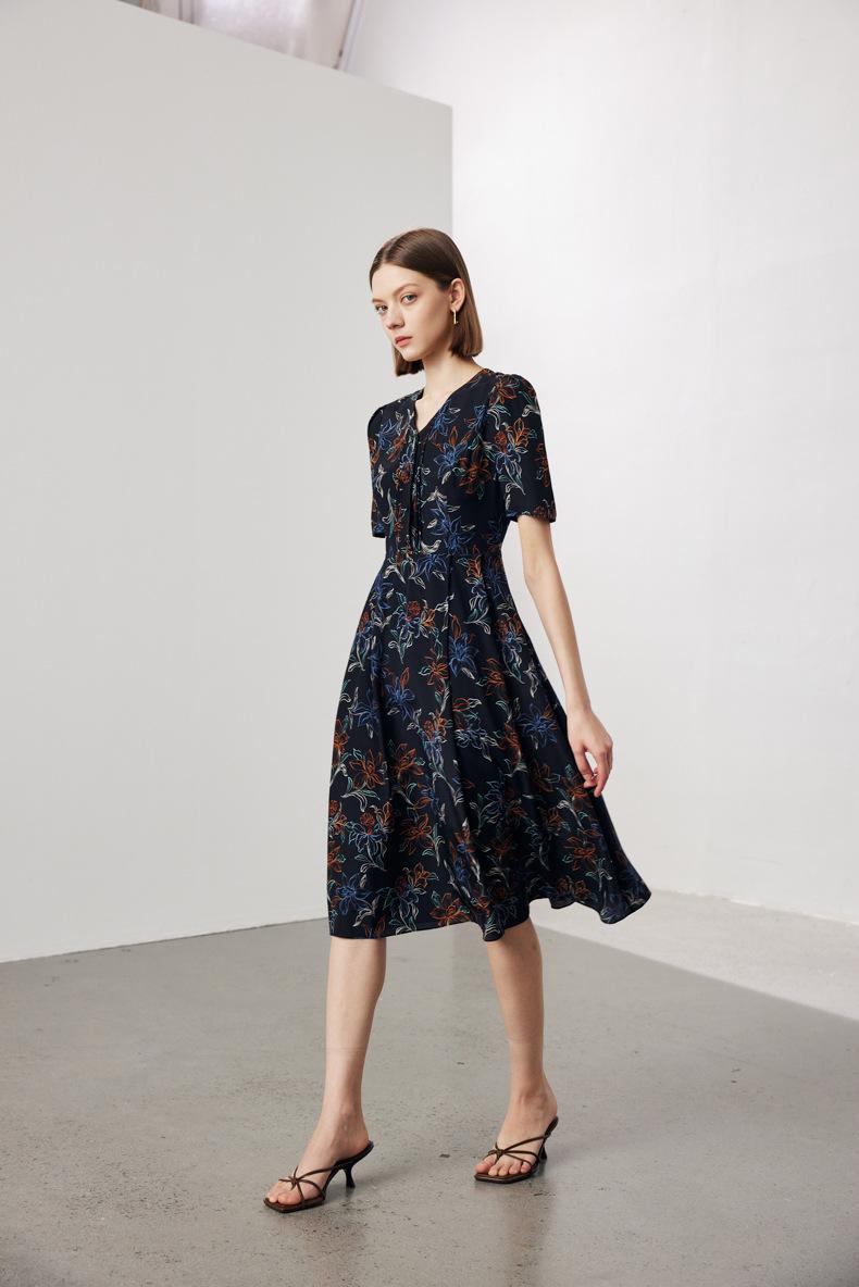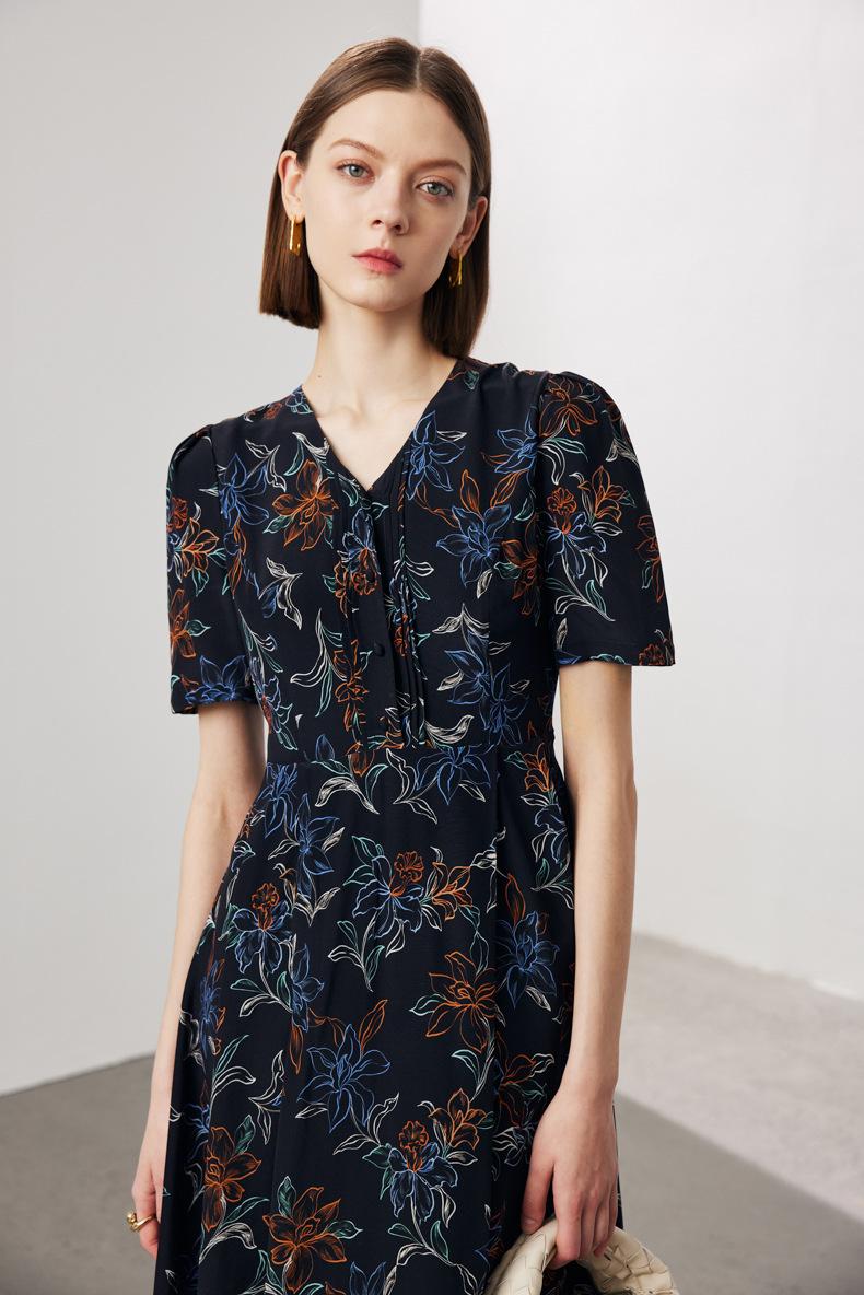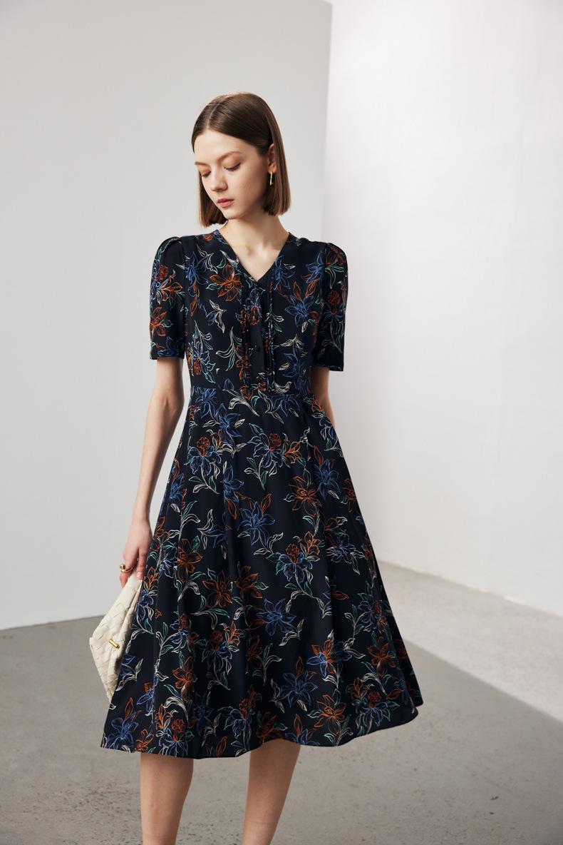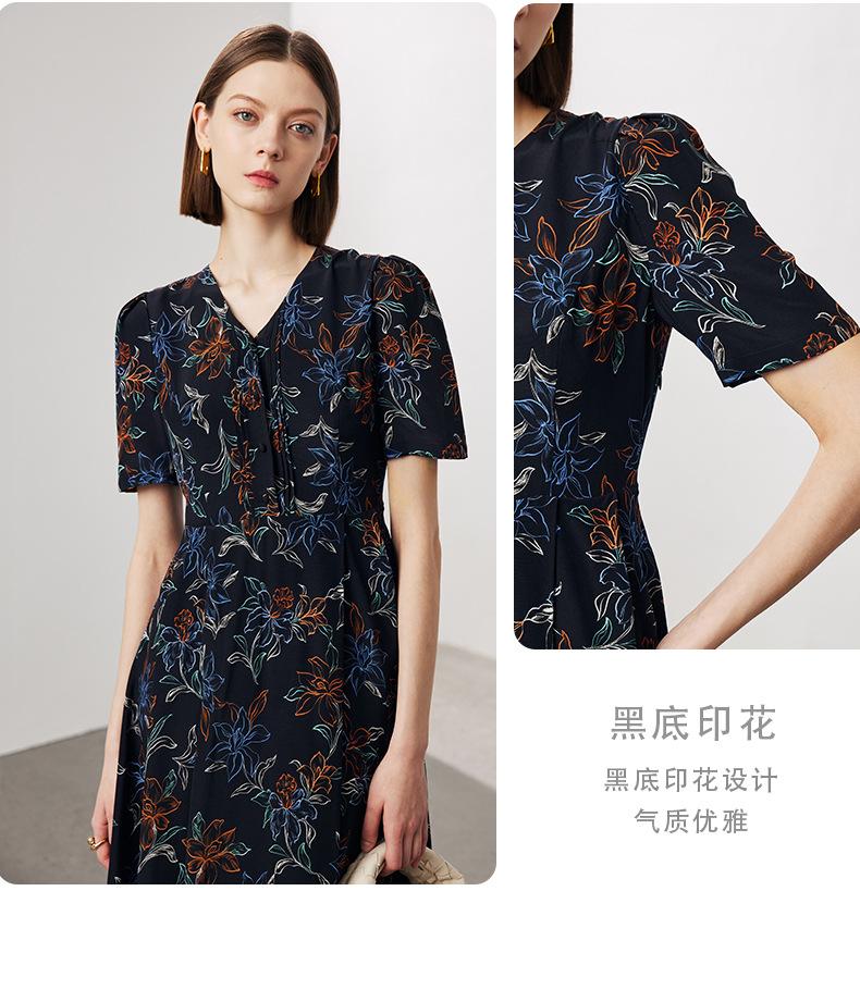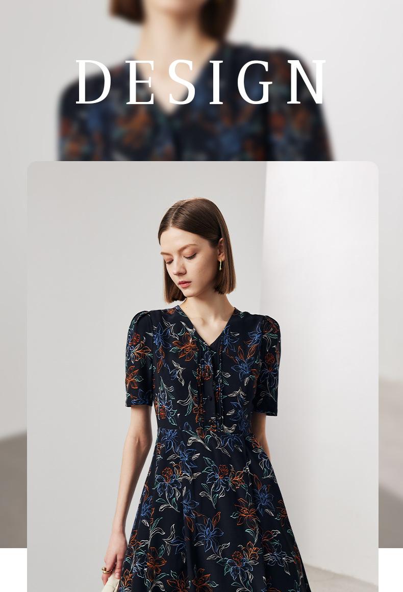 Vestido de Seda de Manga Corta Estampado Primavera y Verano 2025 Nuevo Estilo 100% Seda de Morera Elegante Falda Larga