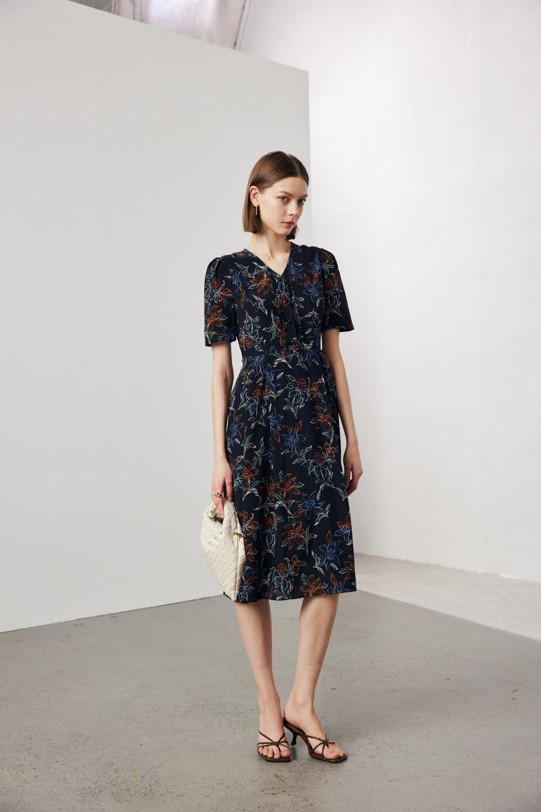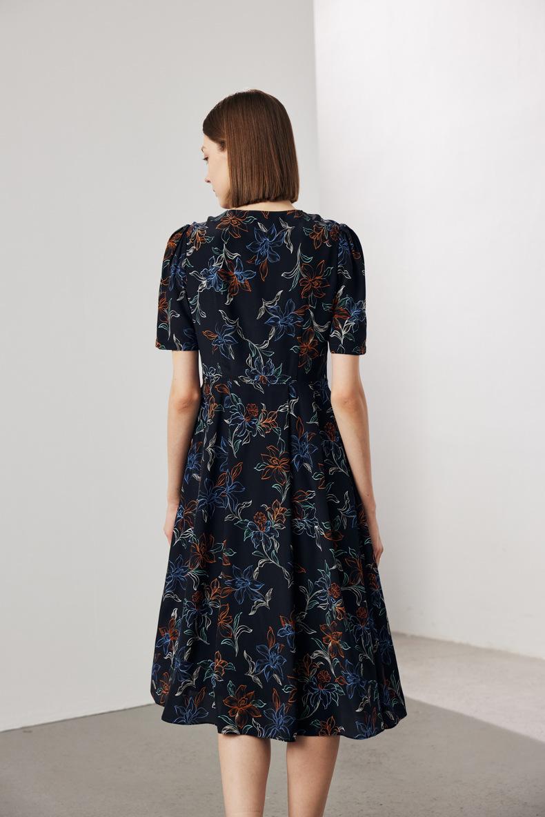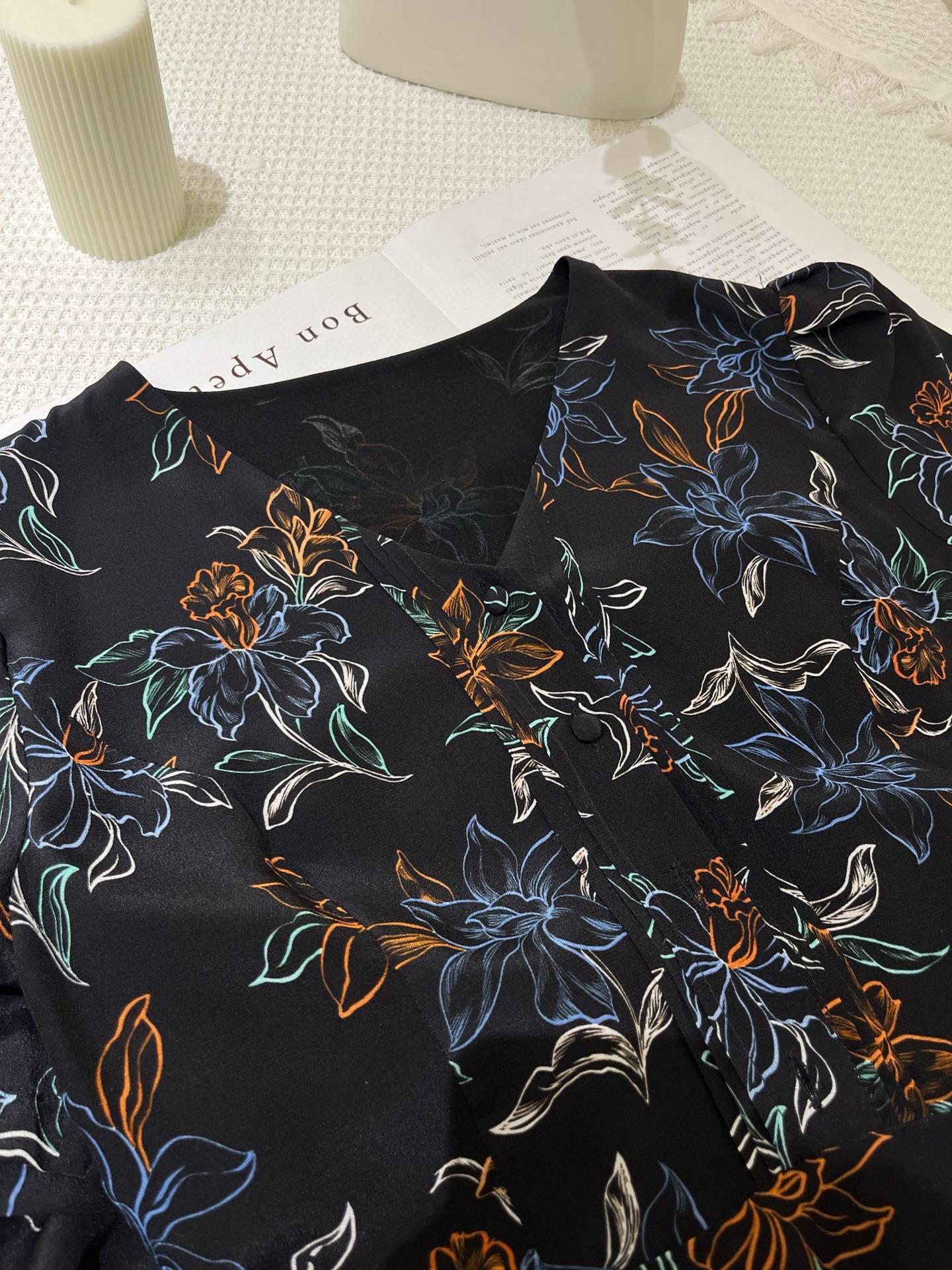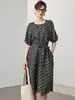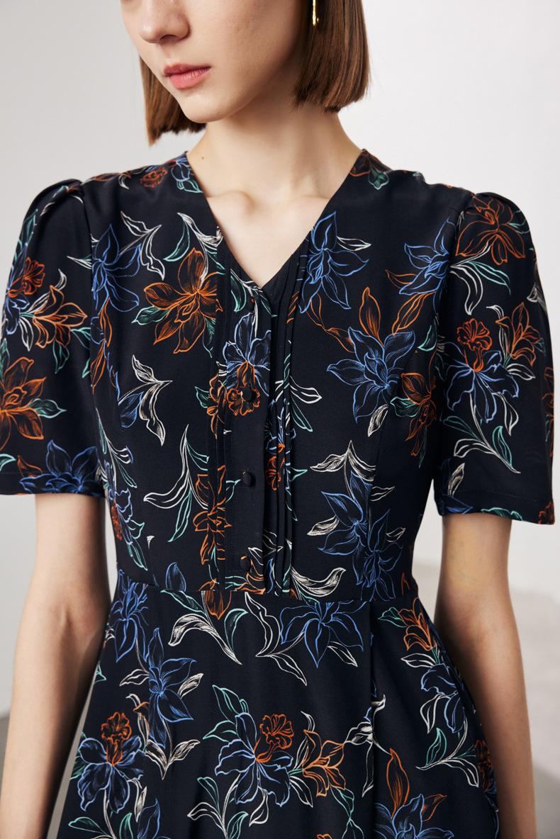 Vestido de Seda de Manga Corta Estampado Primavera y Verano 2025 Nuevo Estilo 100% Seda de Morera Elegante Falda Larga