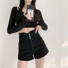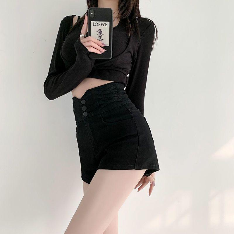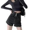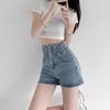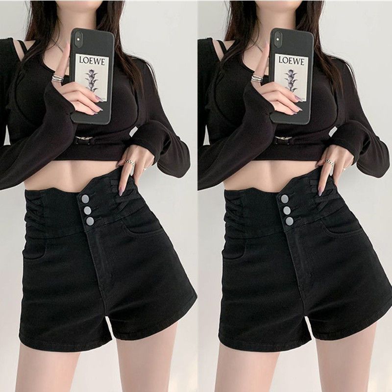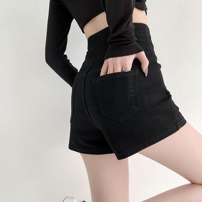 Shorts de mezclilla de cintura súper alta para mujer 2024 Nuevo diseño adelgazante en A de pierna ancha pantalones cortos para chicas sexys adelgazantes