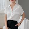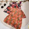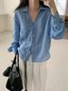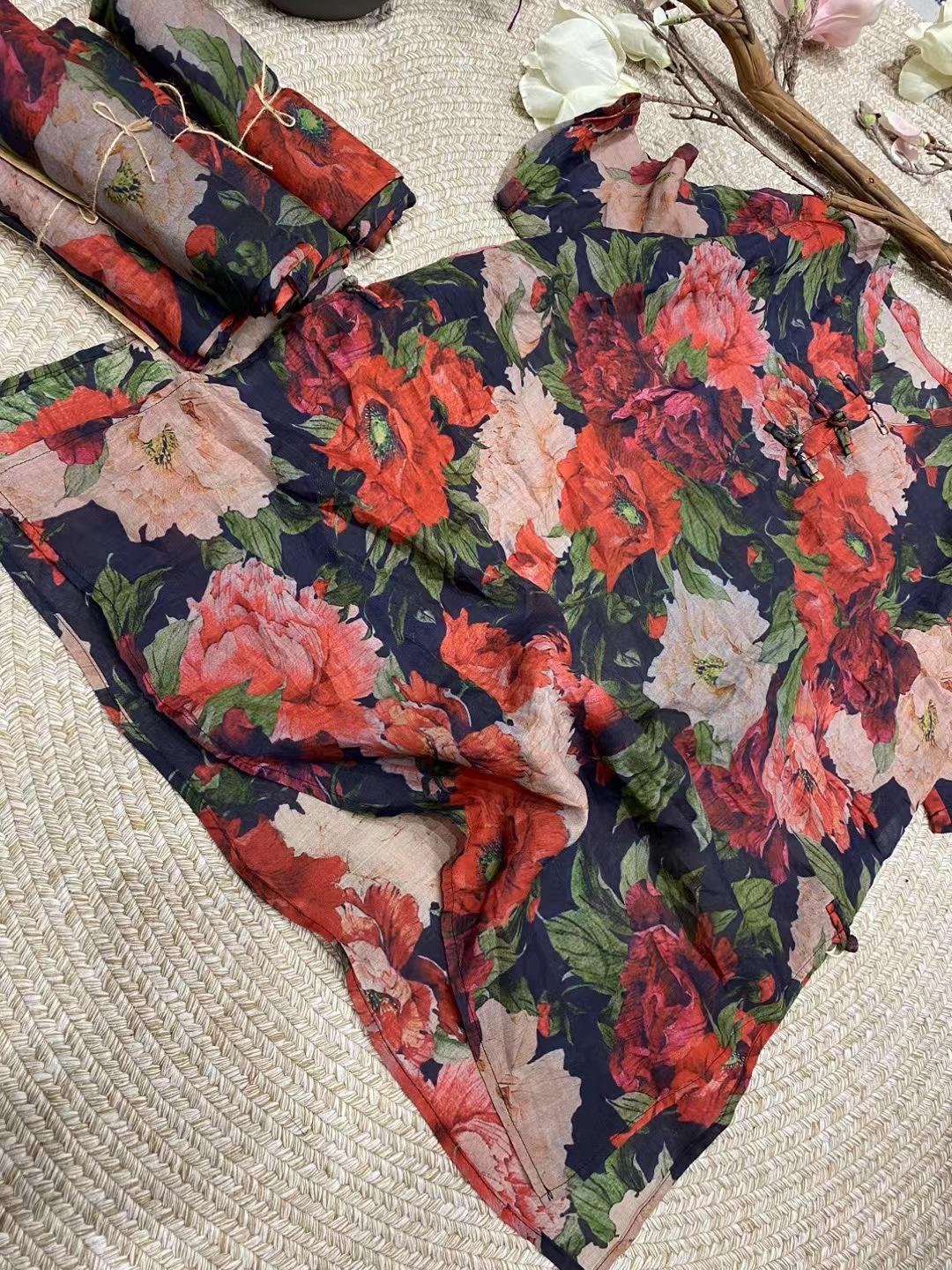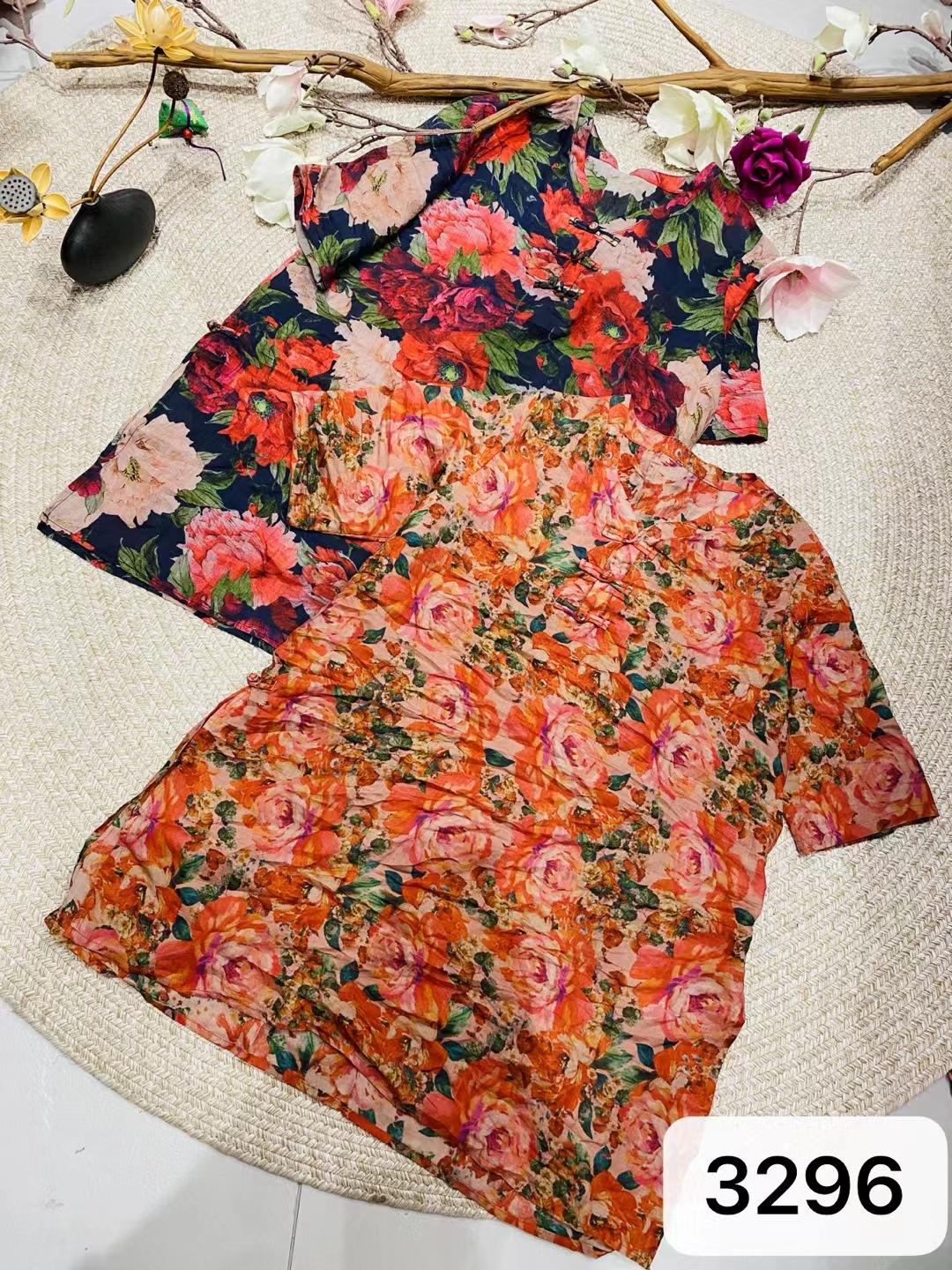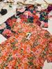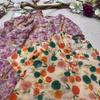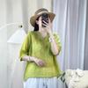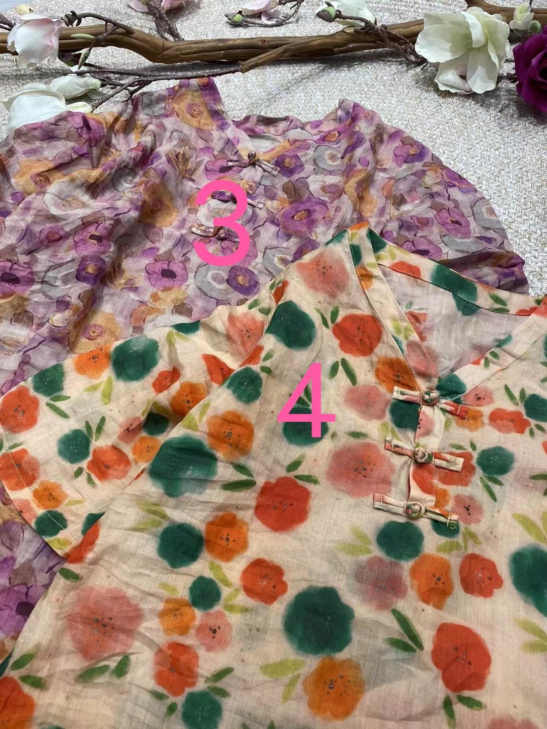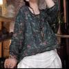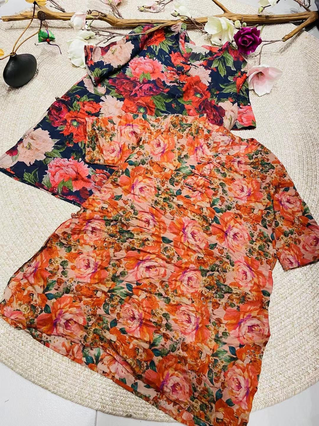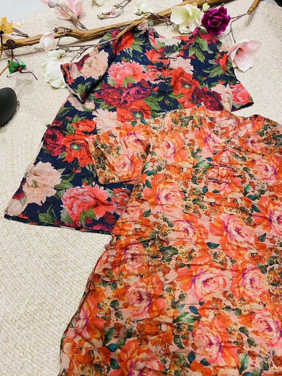 Verano 2024 Nuevo Camisa de Ramio de Diseño Holgado con Estampado y Cuello en V con Hebilla Camisa de Manga Corta de Largo Medio