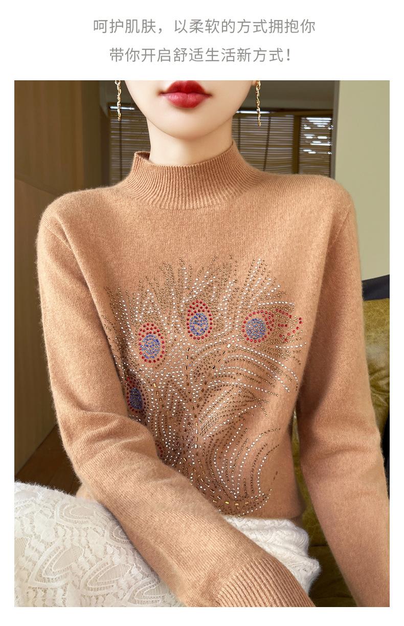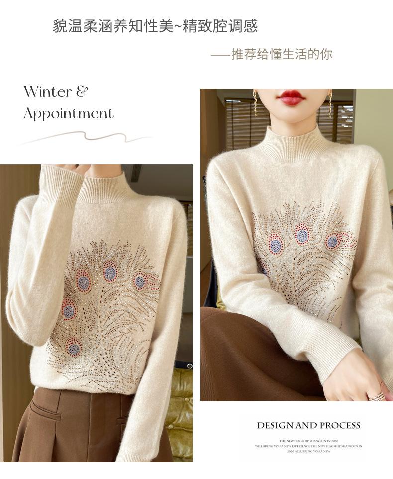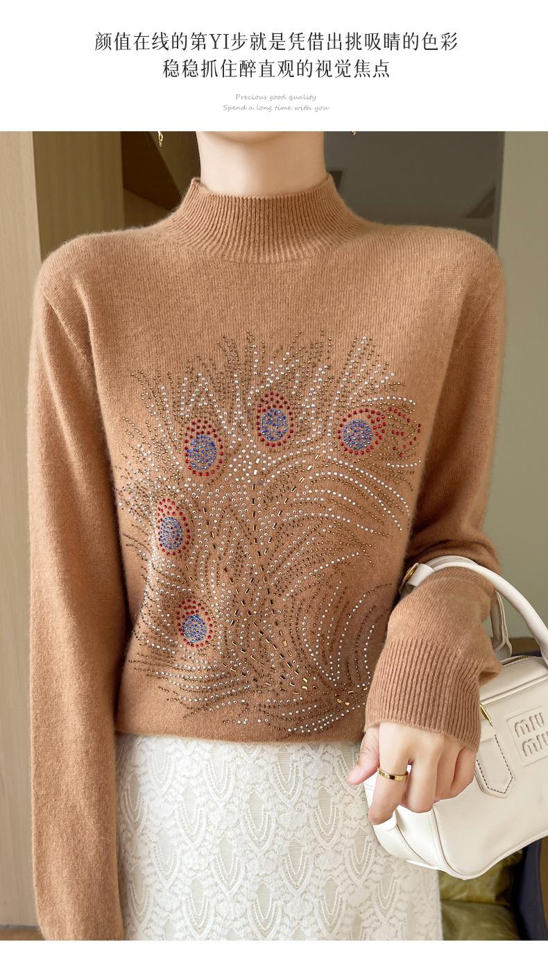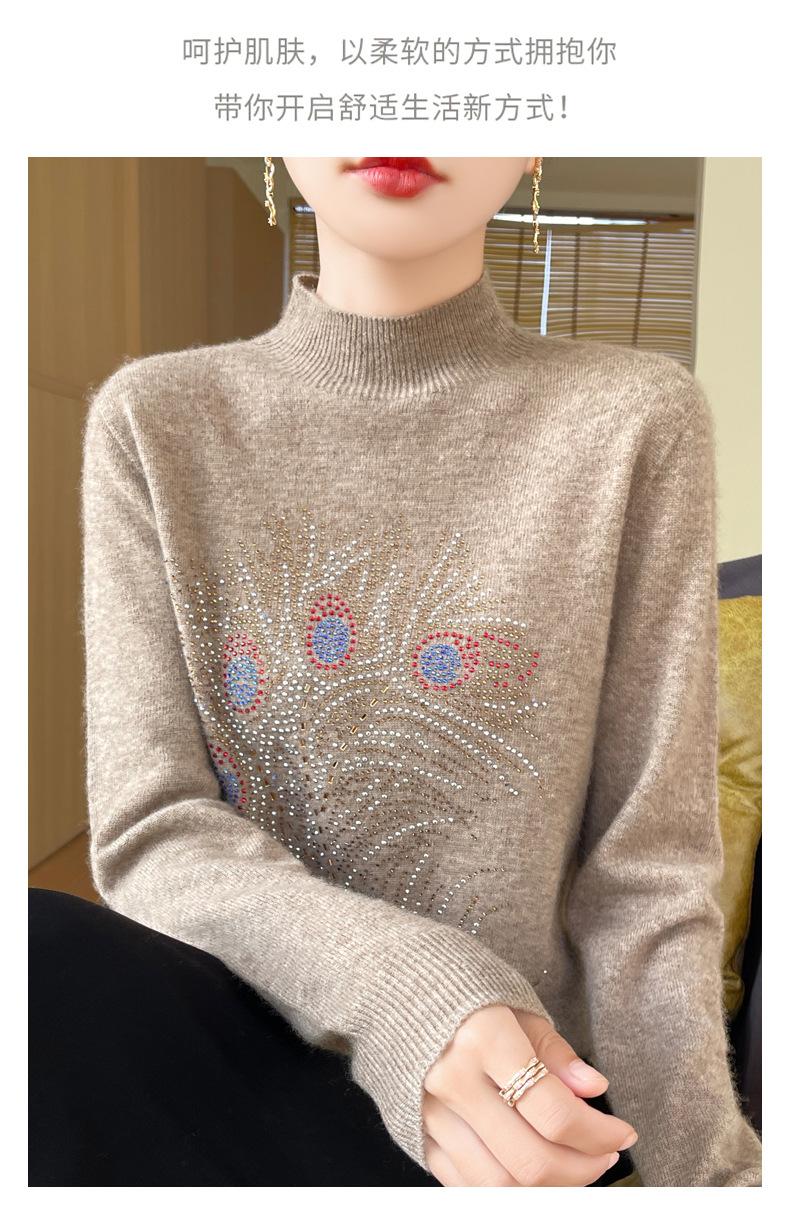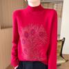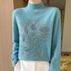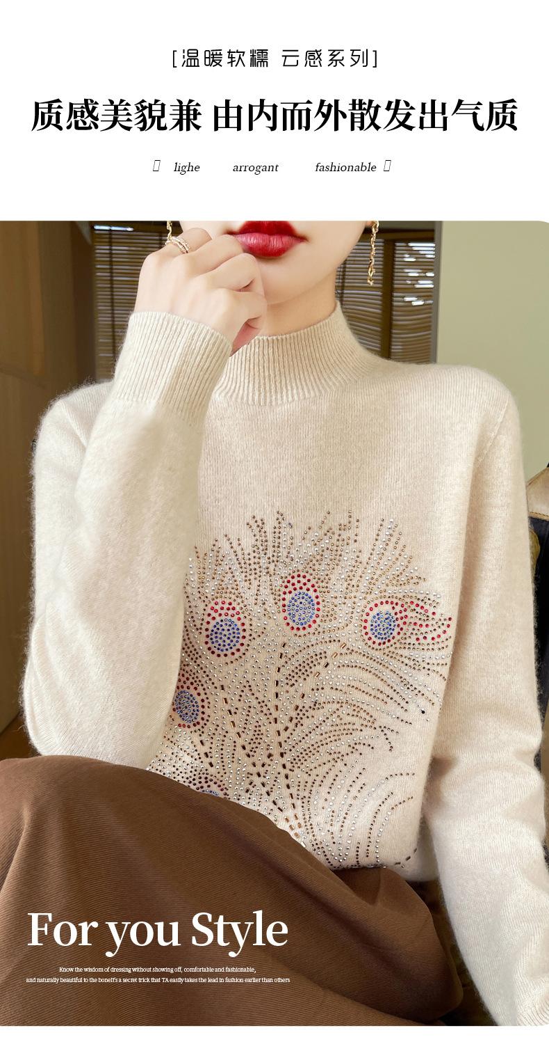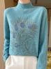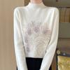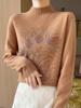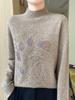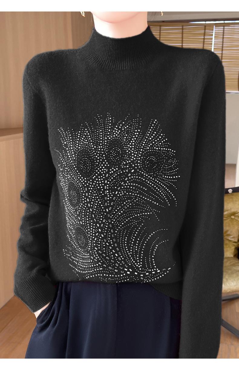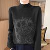 Otoño e Invierno Nuevo Suéter de Punto de Cuello Alto Medio para Mujer con Pedrería Termofijada, Holgado, de Manga Larga, Color Sólido, Casual, Sencillo, Base