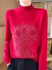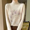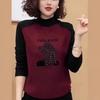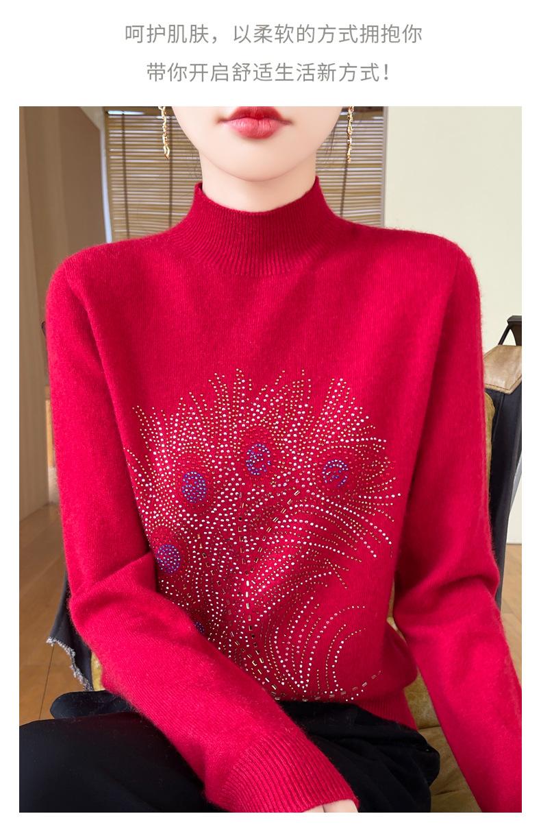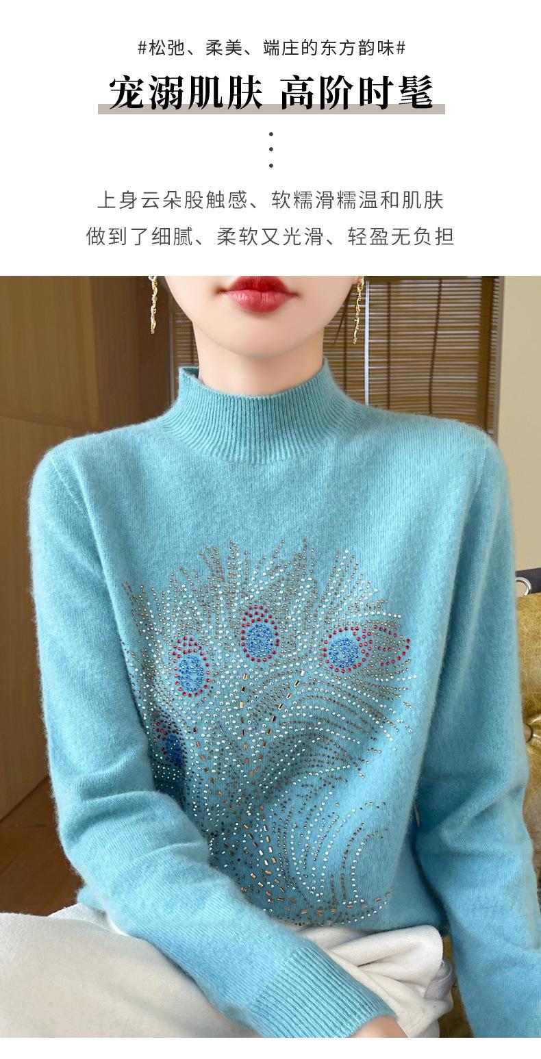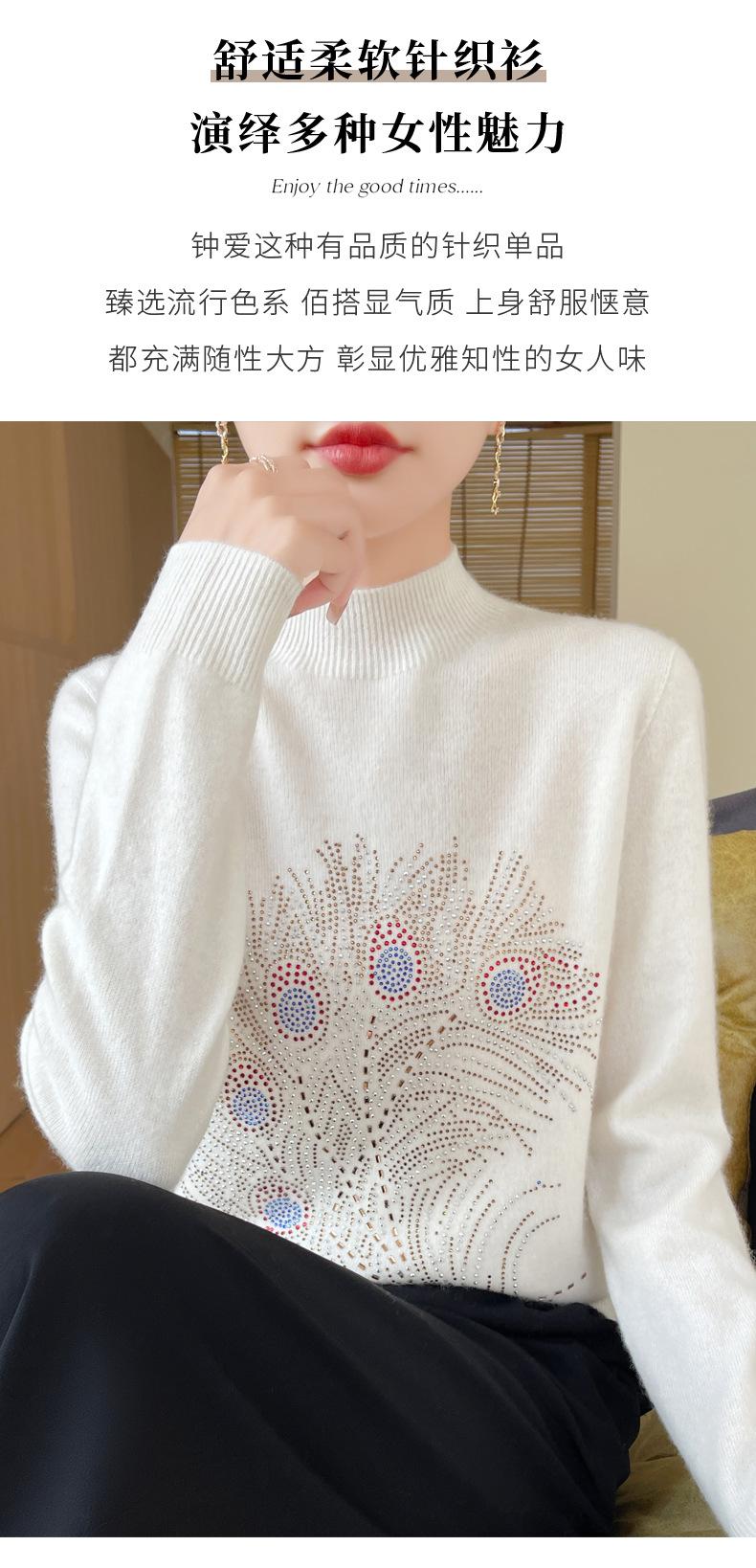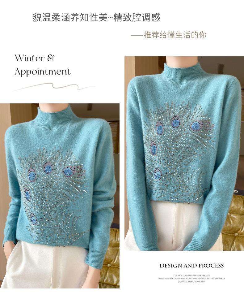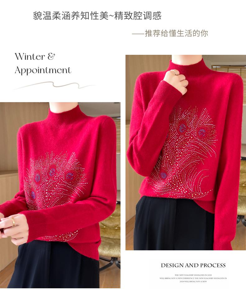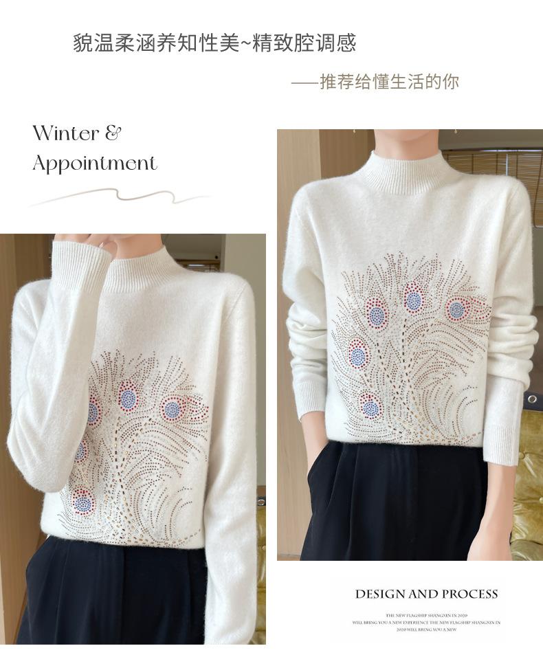 Otoño e Invierno Nuevo Suéter de Punto de Cuello Alto Medio para Mujer con Pedrería Termofijada, Holgado, de Manga Larga, Color Sólido, Casual, Sencillo, Base