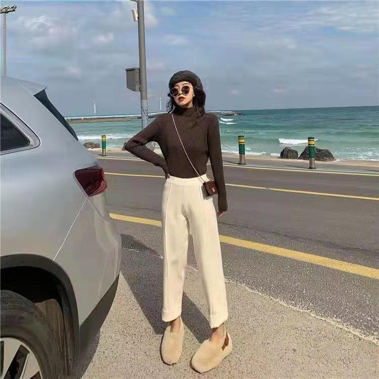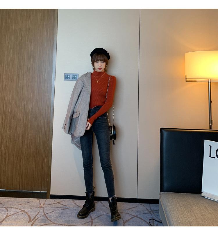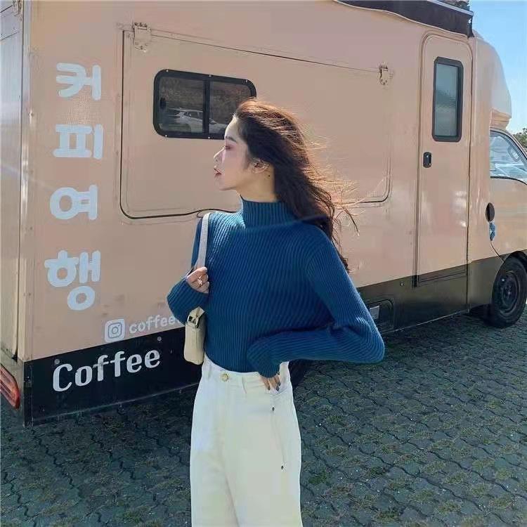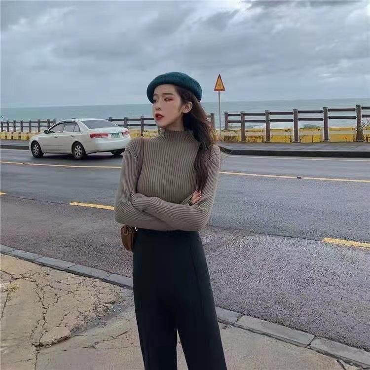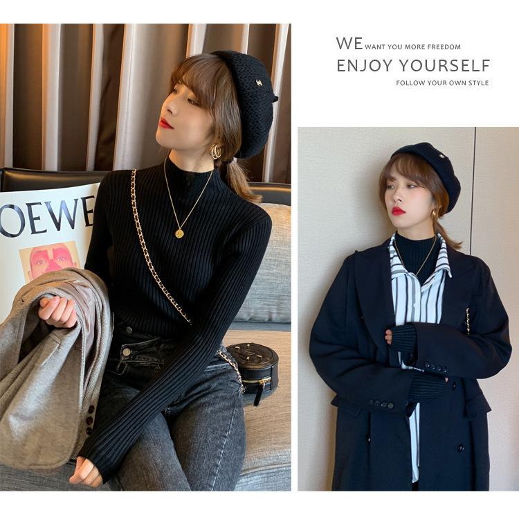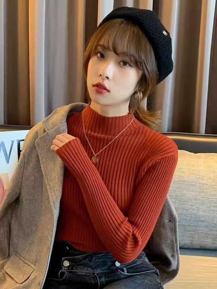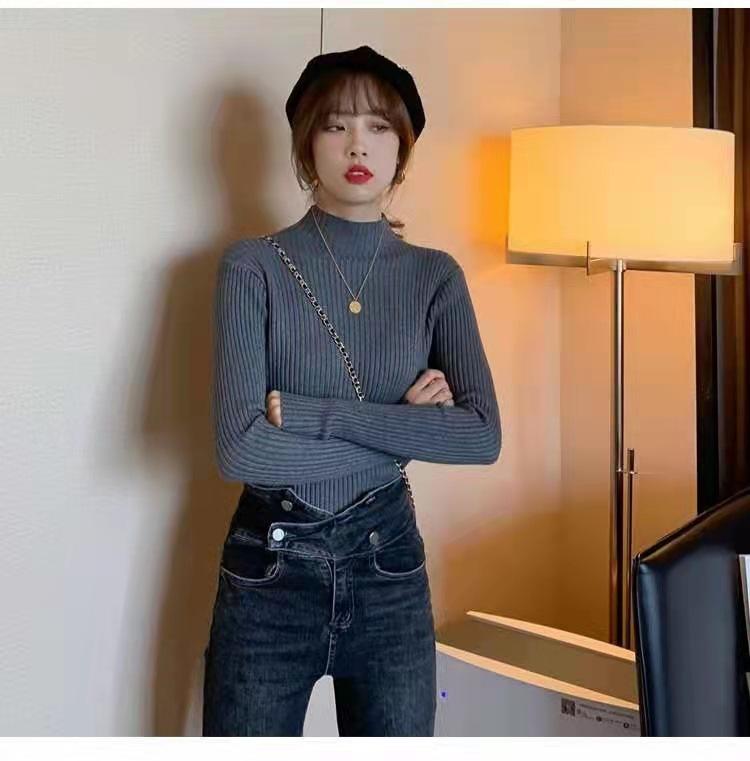 Suéter de cuello alto medio para mujer, corte entallado, nuevo estilo 2022, camisa de punto ajustada, top de manga larga para otoño e invierno.