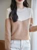 Suéter de Lana Pura a la Moda para Mujer Jersey Combinación de Colores Moda Versátil Manga Corta Cálido Holgado Look Adelgazante Suéter Tejido de Fondo
