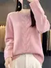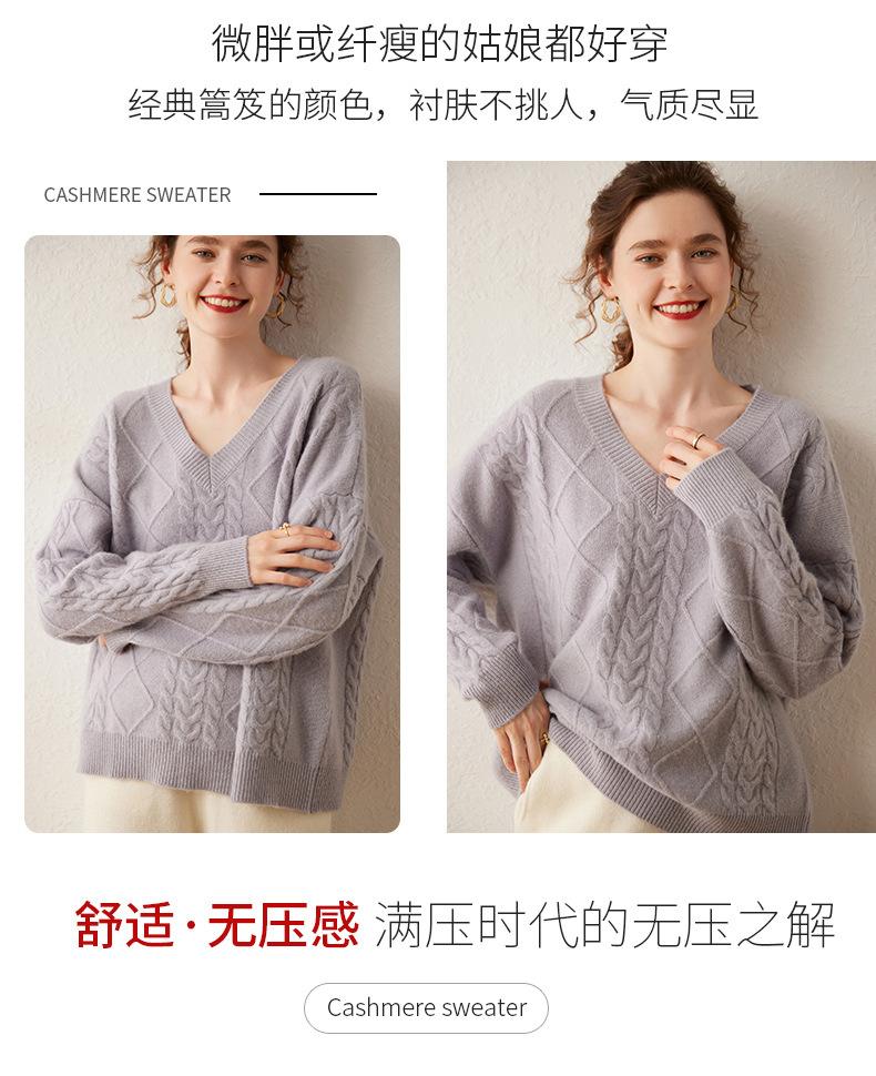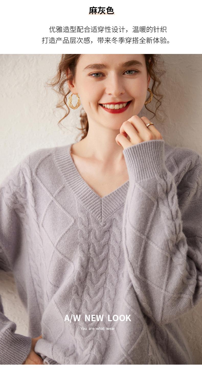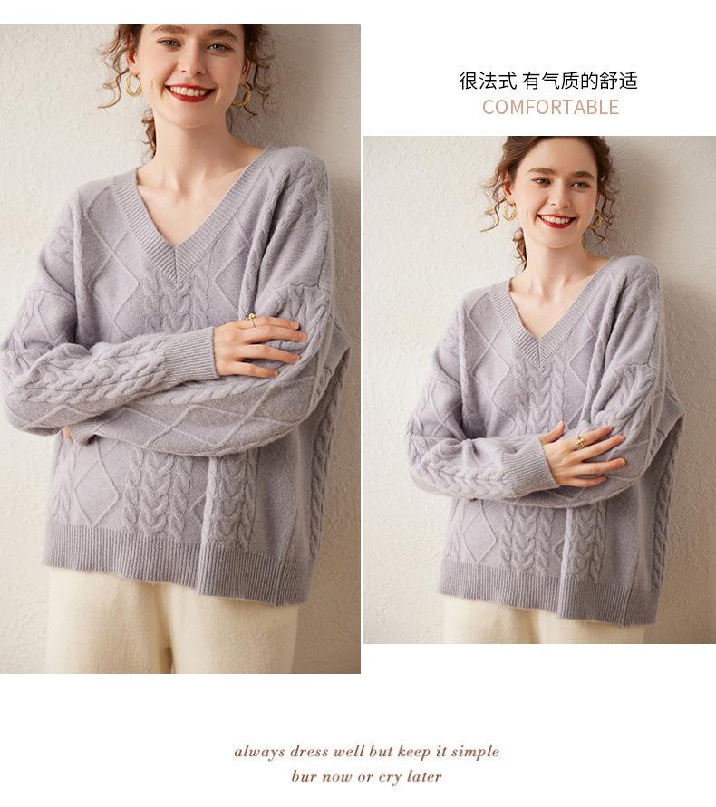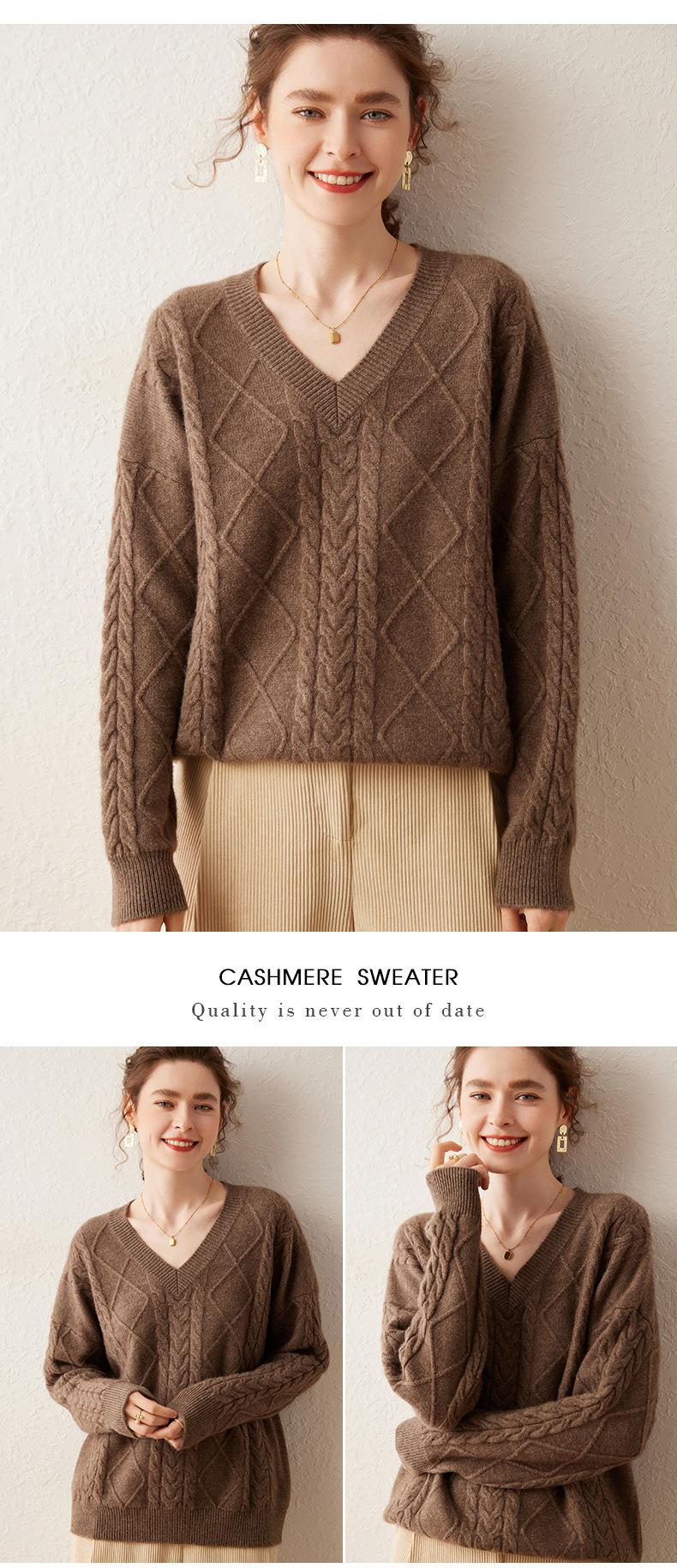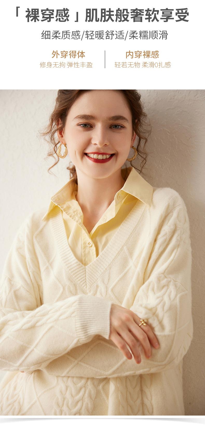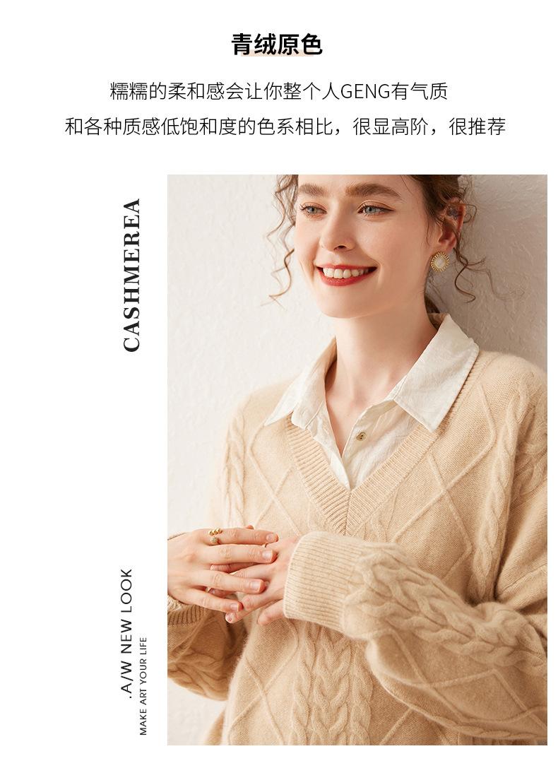 Suéter de cachemira de lana retorcida, suelto, con cuello en V, para mujer, otoño e invierno de 2024, estilo suave, suelto, adelgazante y elegante.