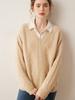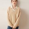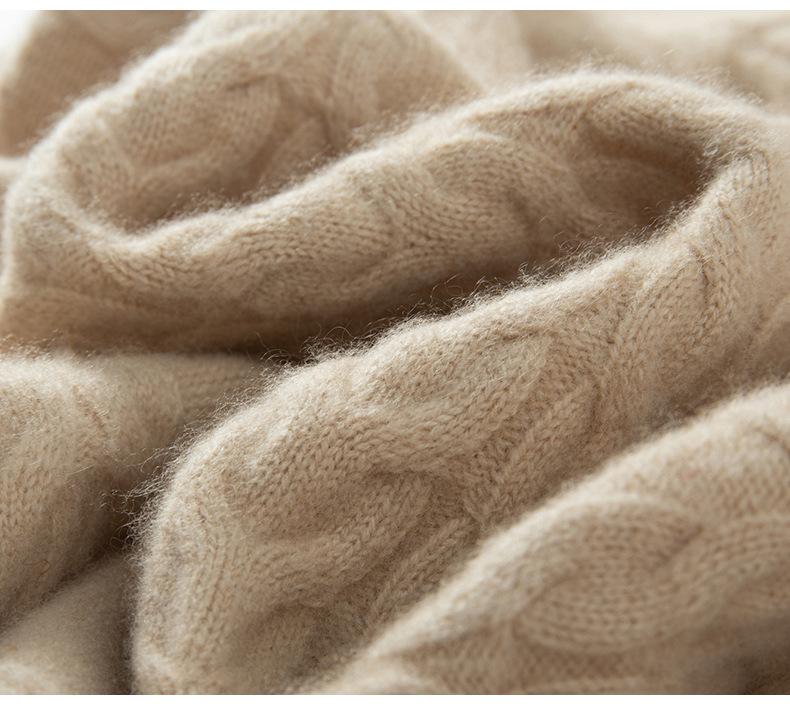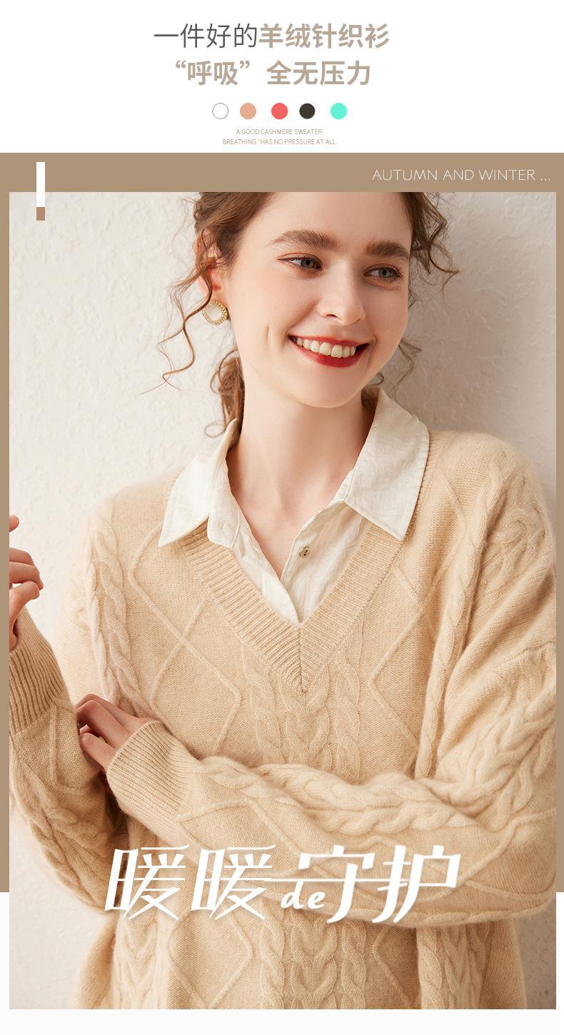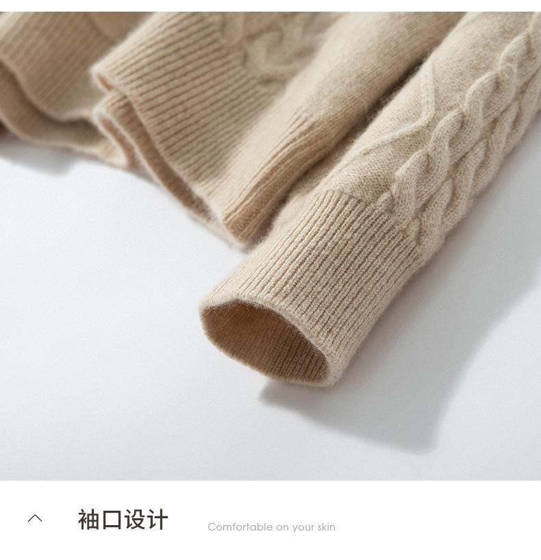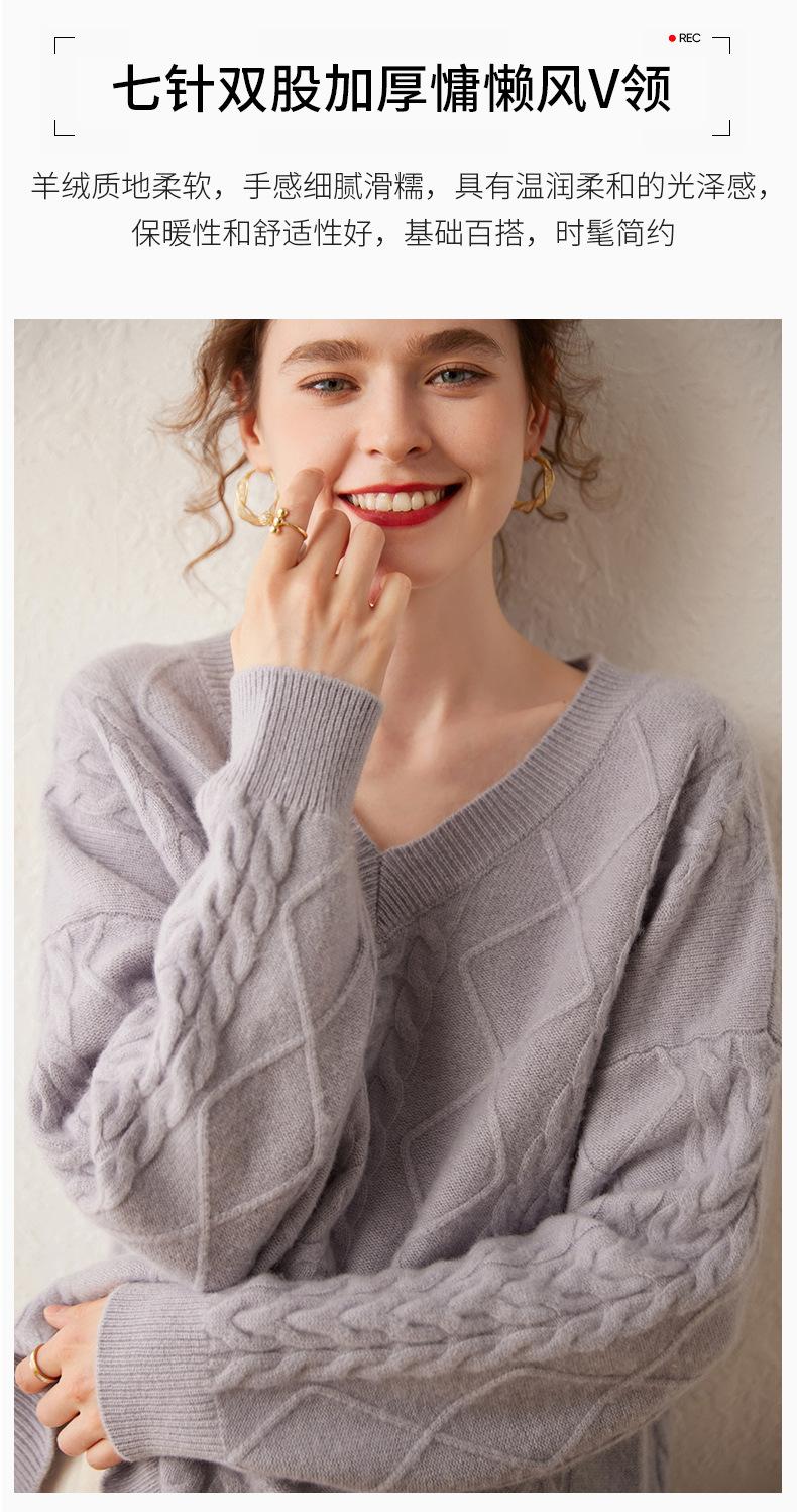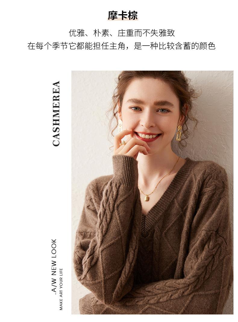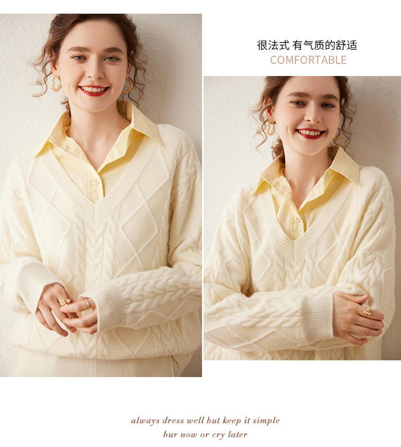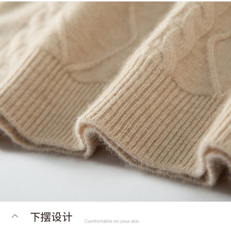 Suéter de cachemira de lana retorcida, suelto, con cuello en V, para mujer, otoño e invierno de 2024, estilo suave, suelto, adelgazante y elegante.