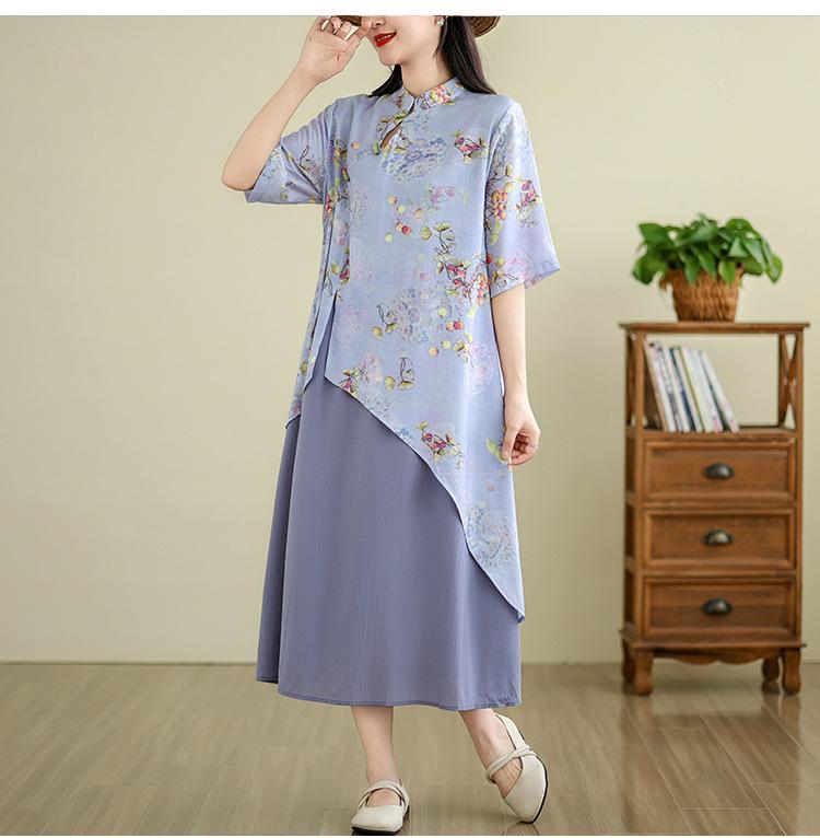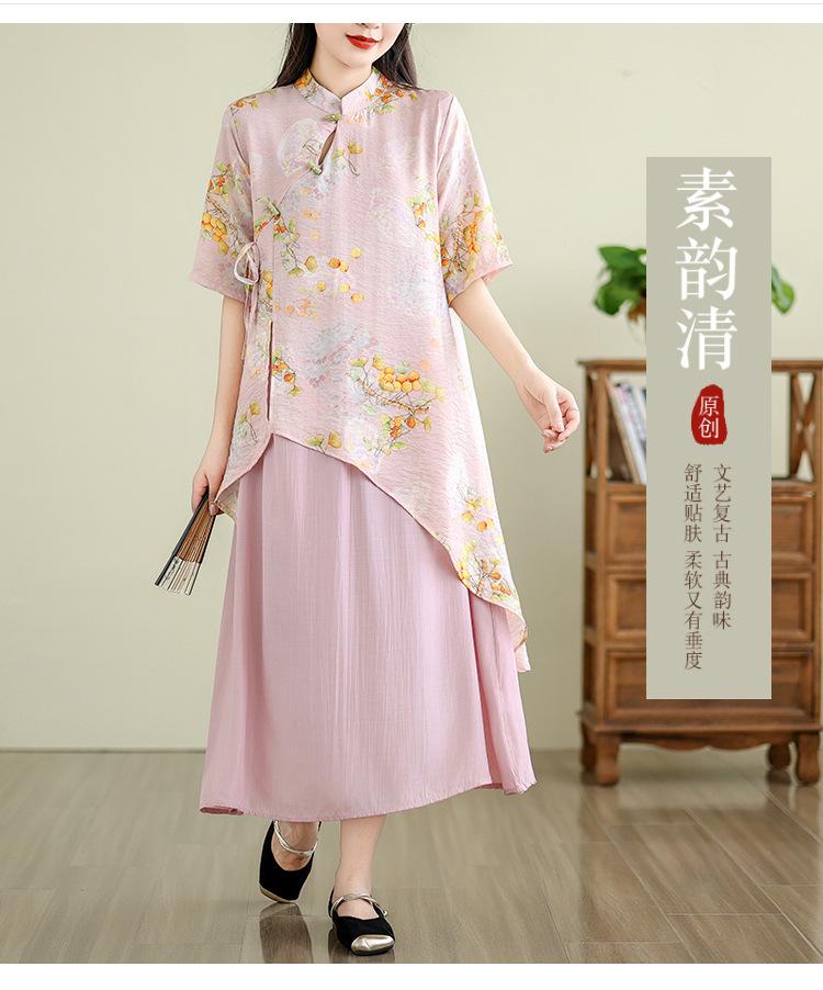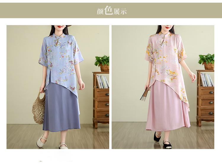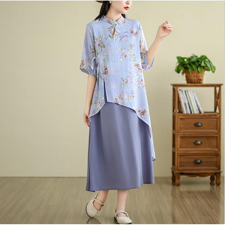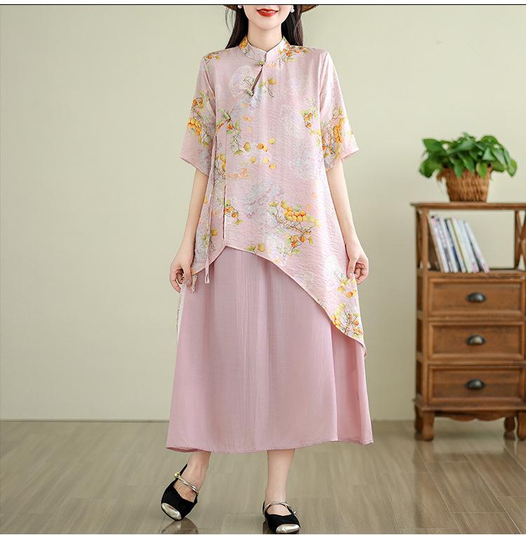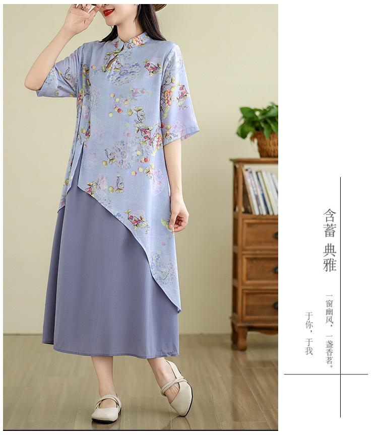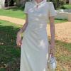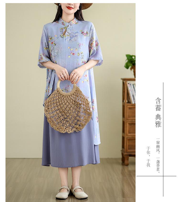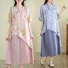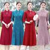 2024 Nueva primavera y verano Nuevo estilo chino mejorado Vestido cheongsam Mujer Madre Elegante Estilo occidental Estilo nacional Falda con hebilla