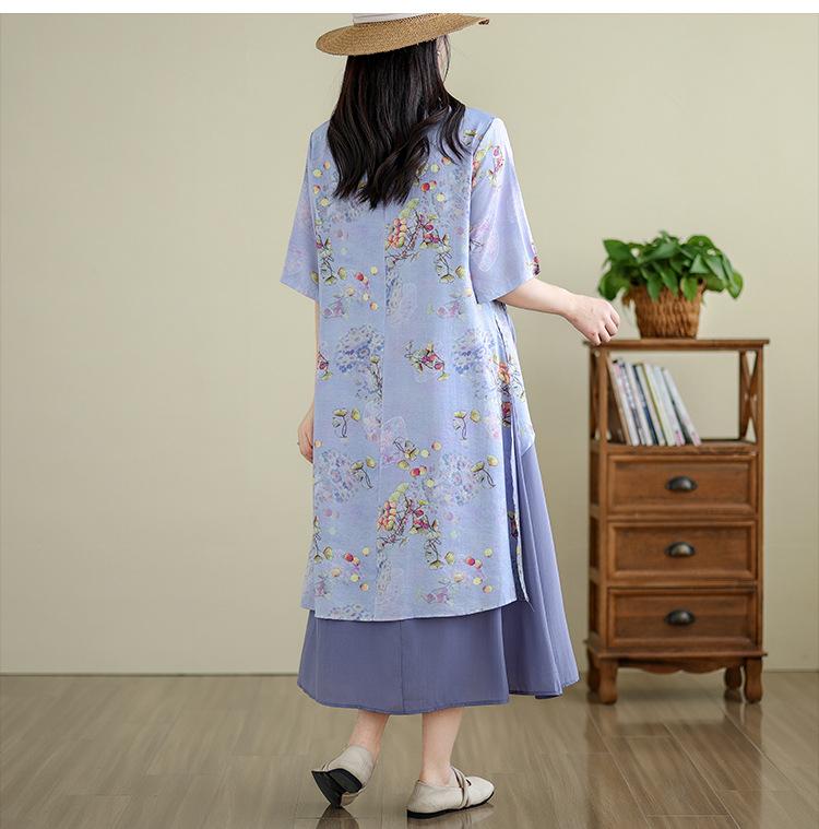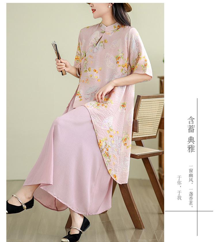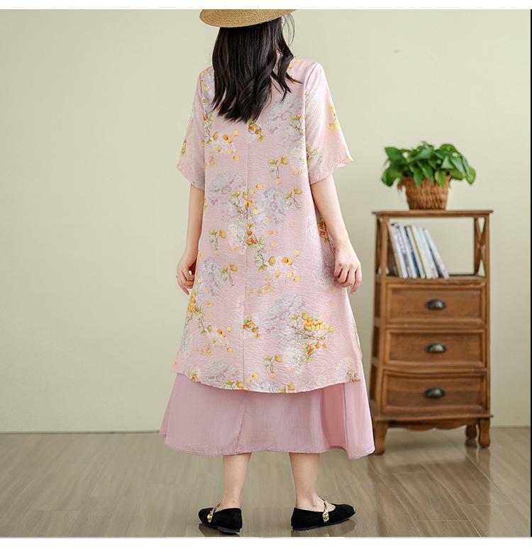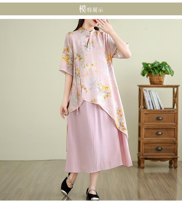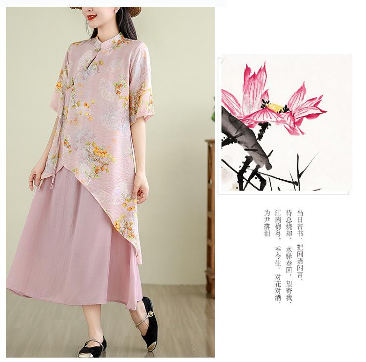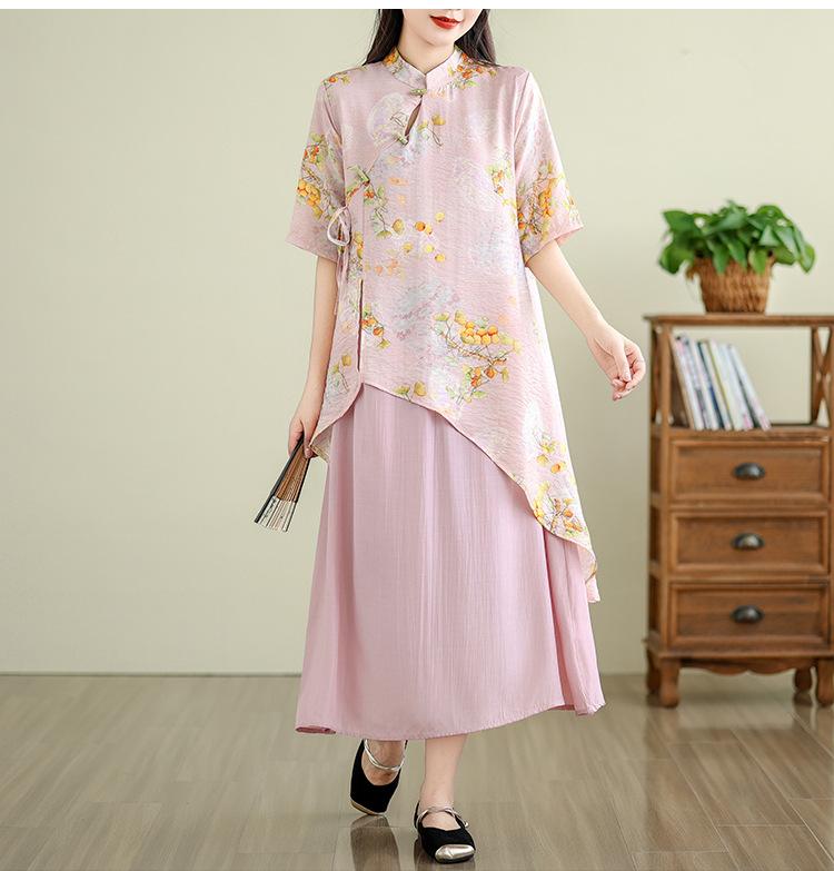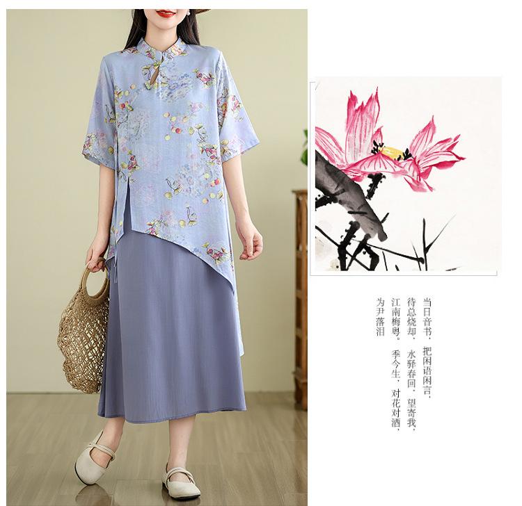 2024 Nueva primavera y verano Nuevo estilo chino mejorado Vestido cheongsam Mujer Madre Elegante Estilo occidental Estilo nacional Falda con hebilla
