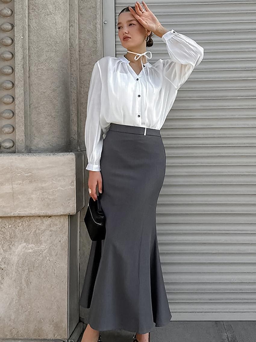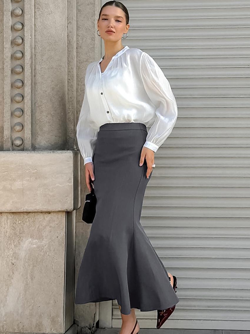 Falda Europea y Americana Elegante Simple Slim Profesional 2024 Otoño e Invierno Nueva Nicho Transfronterizo Versátil Larga de Cola de Pez