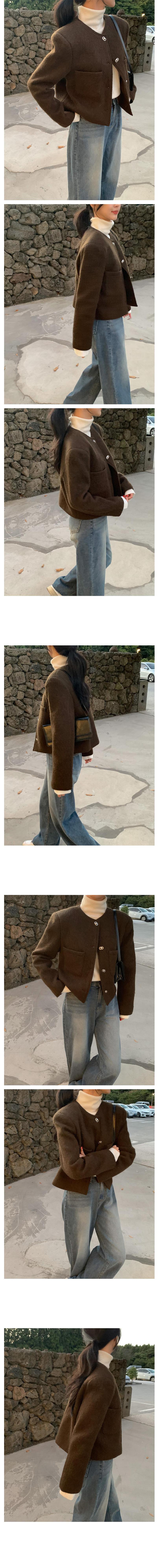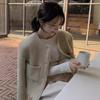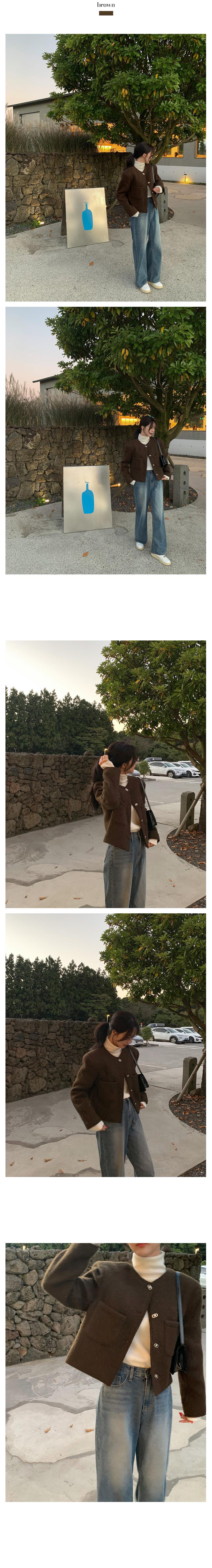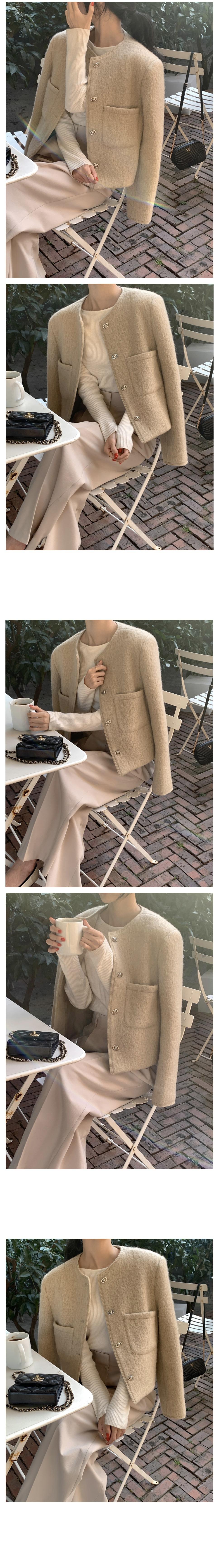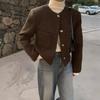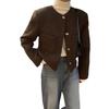 Chic Coreano Otoño Nuevo Estilo Francés Vintage Chaqueta de Tweed Decorativa con Bolsillo Doble y Botón Único