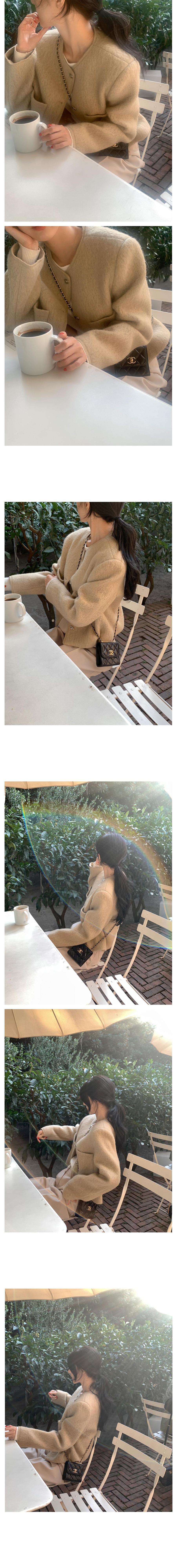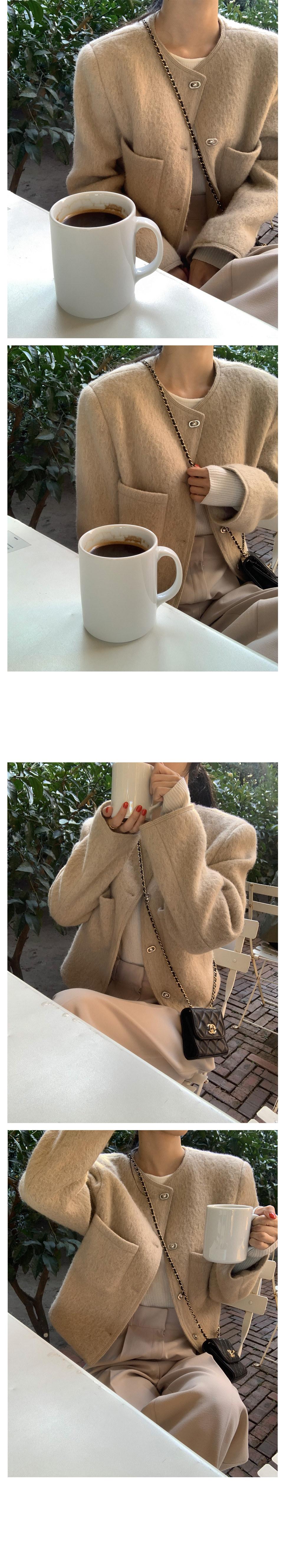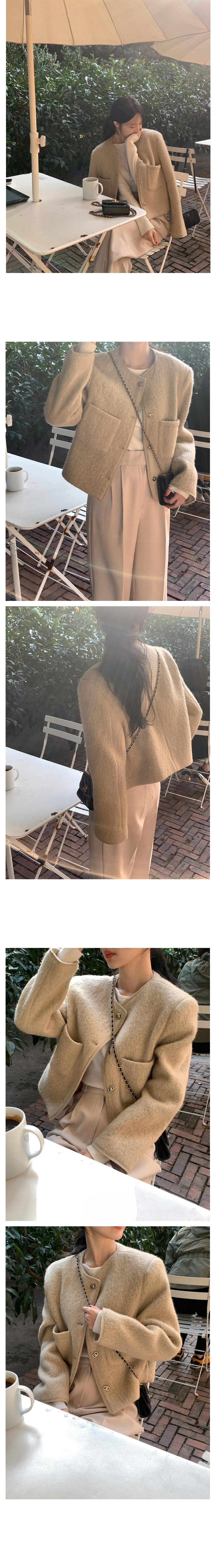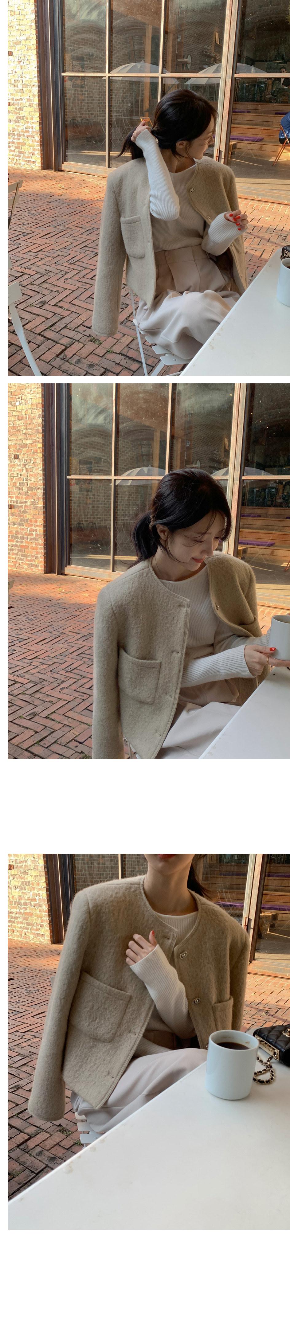 Chic Coreano Otoño Nuevo Estilo Francés Vintage Chaqueta de Tweed Decorativa con Bolsillo Doble y Botón Único