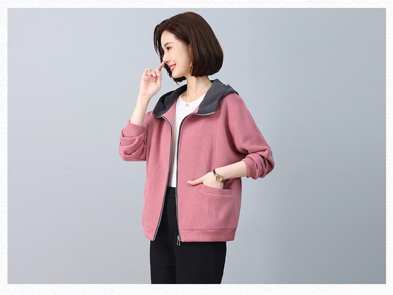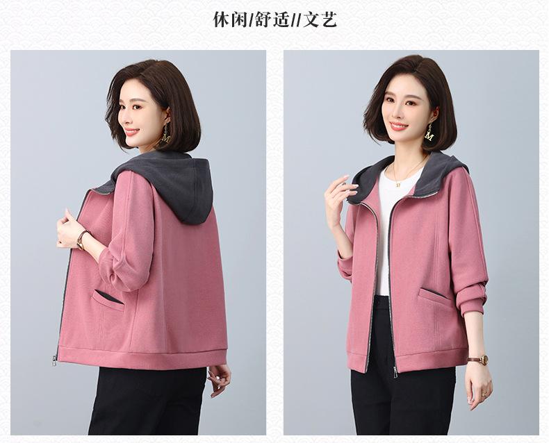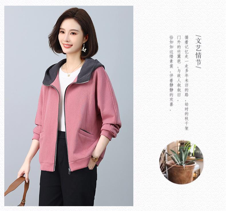 Suéter tipo cárdigan para mujer, abrigo de otoño 2024, nuevo, holgado, con capucha, informal, con bloques de color, ropa de madre para principios de otoño.