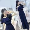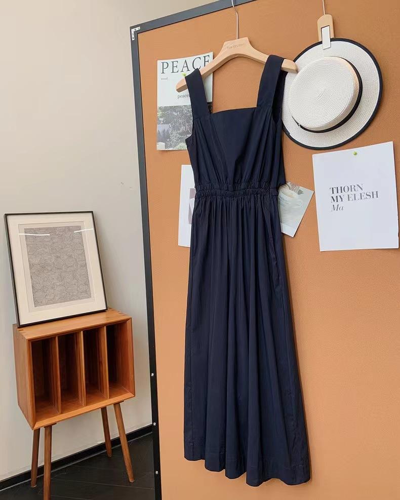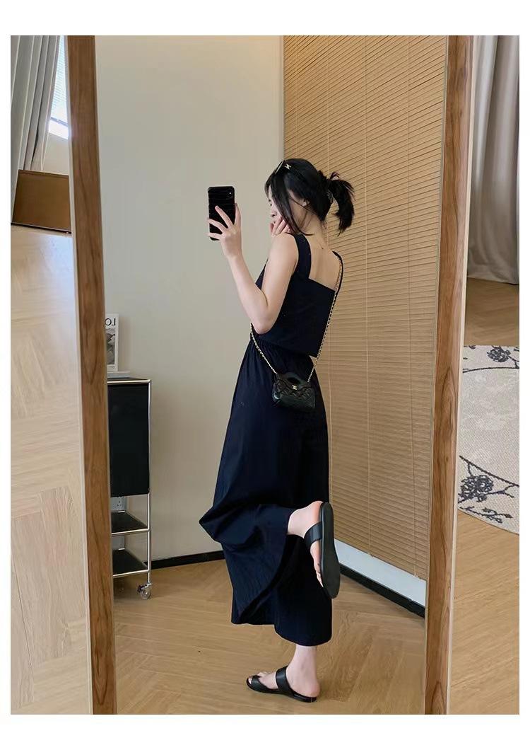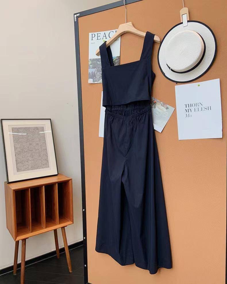 Cuello cuadrado grande, tirantes anchos + diseño hueco con abertura en la espalda.