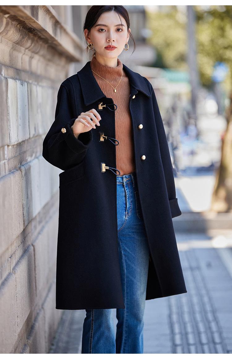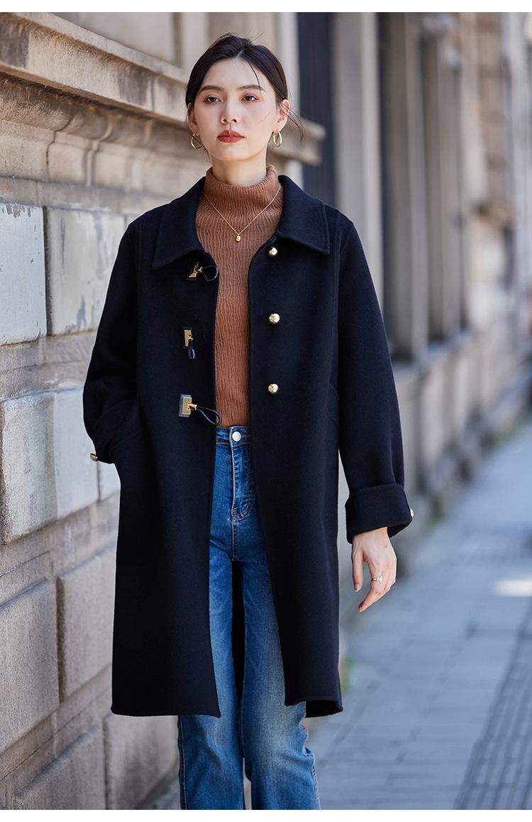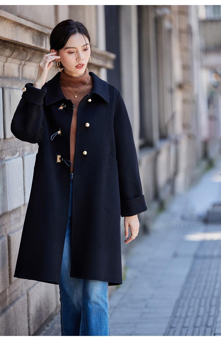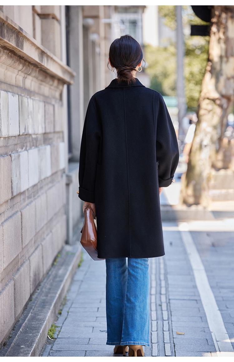 Daifa Abrigo de Cachemira Holgado de Alta Gama Otoño e Invierno Nuevo Abrigo de Lana de Largo Medio de Doble Cara Abrigo para Mujer