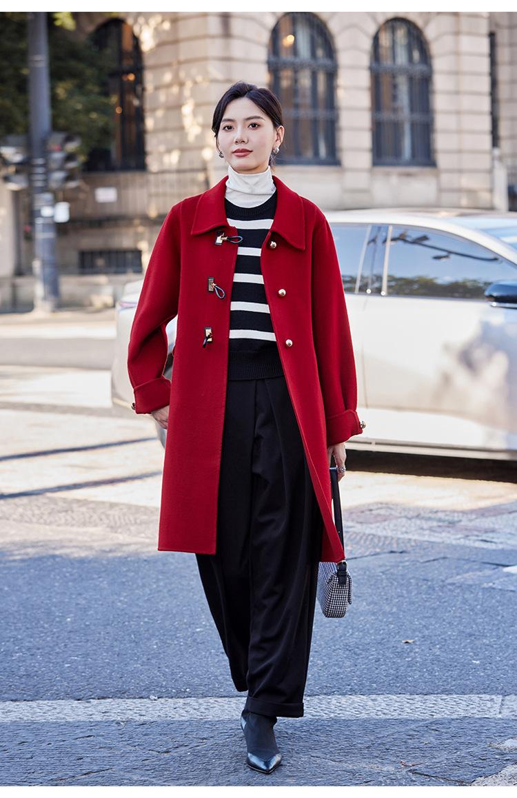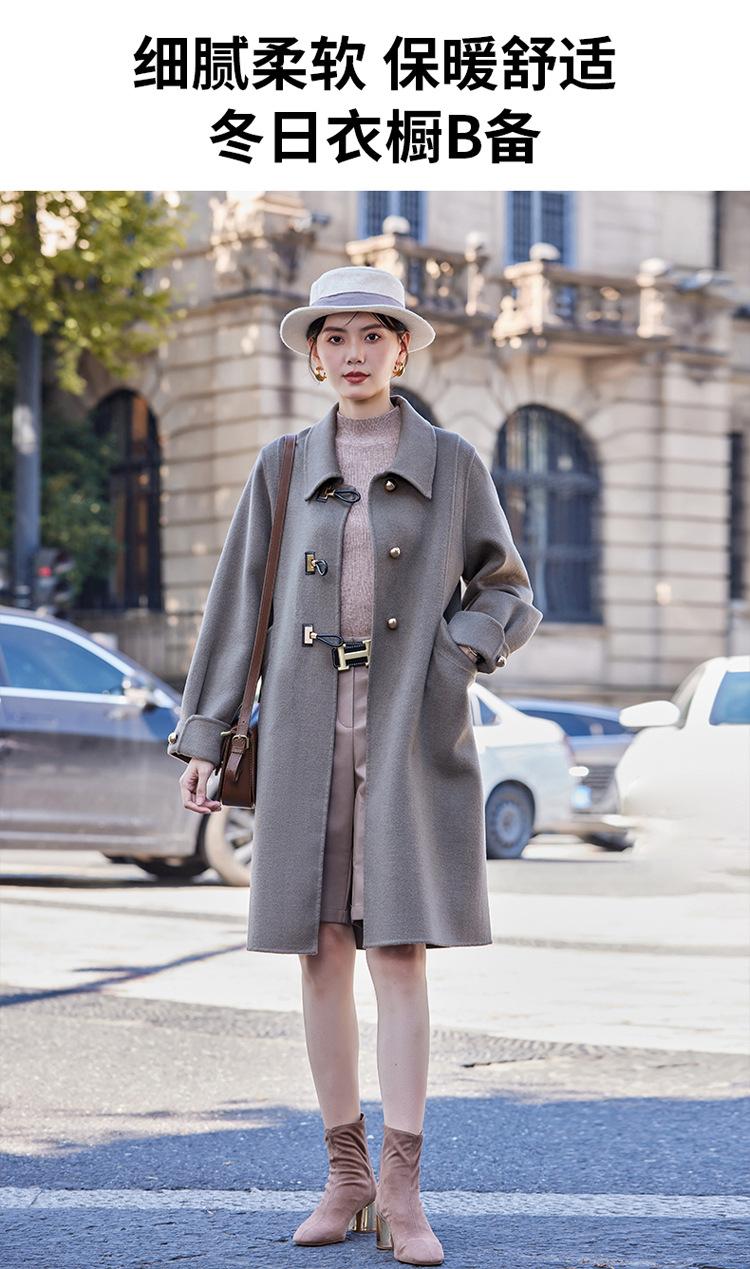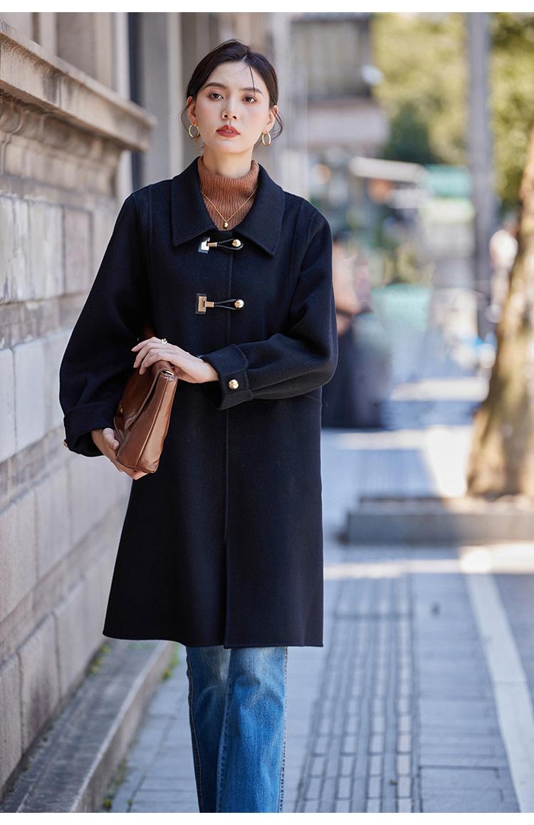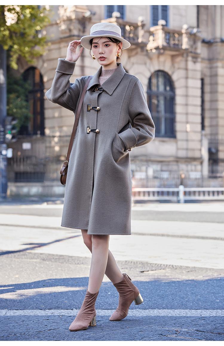 Daifa Abrigo de Cachemira Holgado de Alta Gama Otoño e Invierno Nuevo Abrigo de Lana de Largo Medio de Doble Cara Abrigo para Mujer