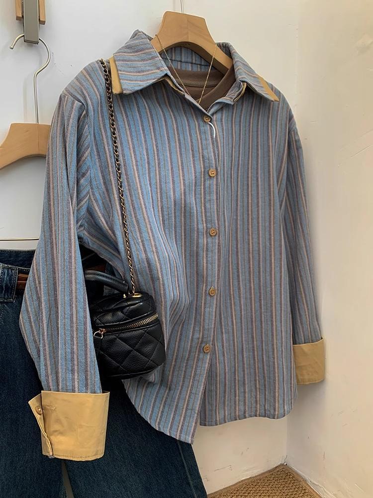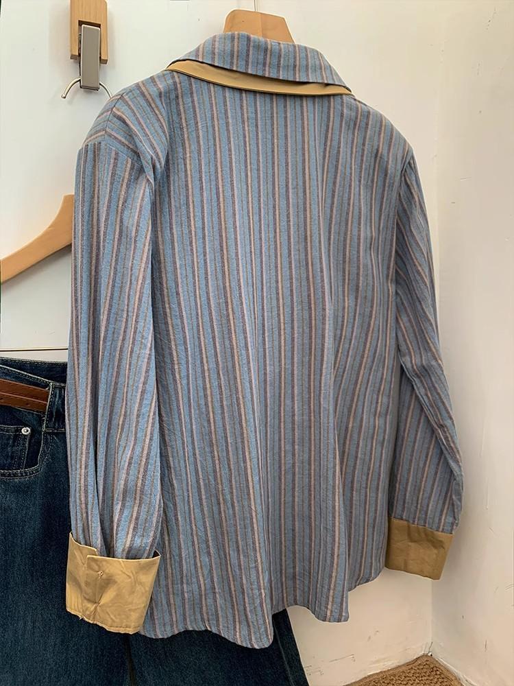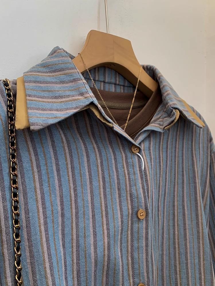 Camisa de manga larga a rayas azules para mujer, diseño de primavera y otoño, estilo nicho, chaqueta francesa de alta gama.