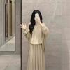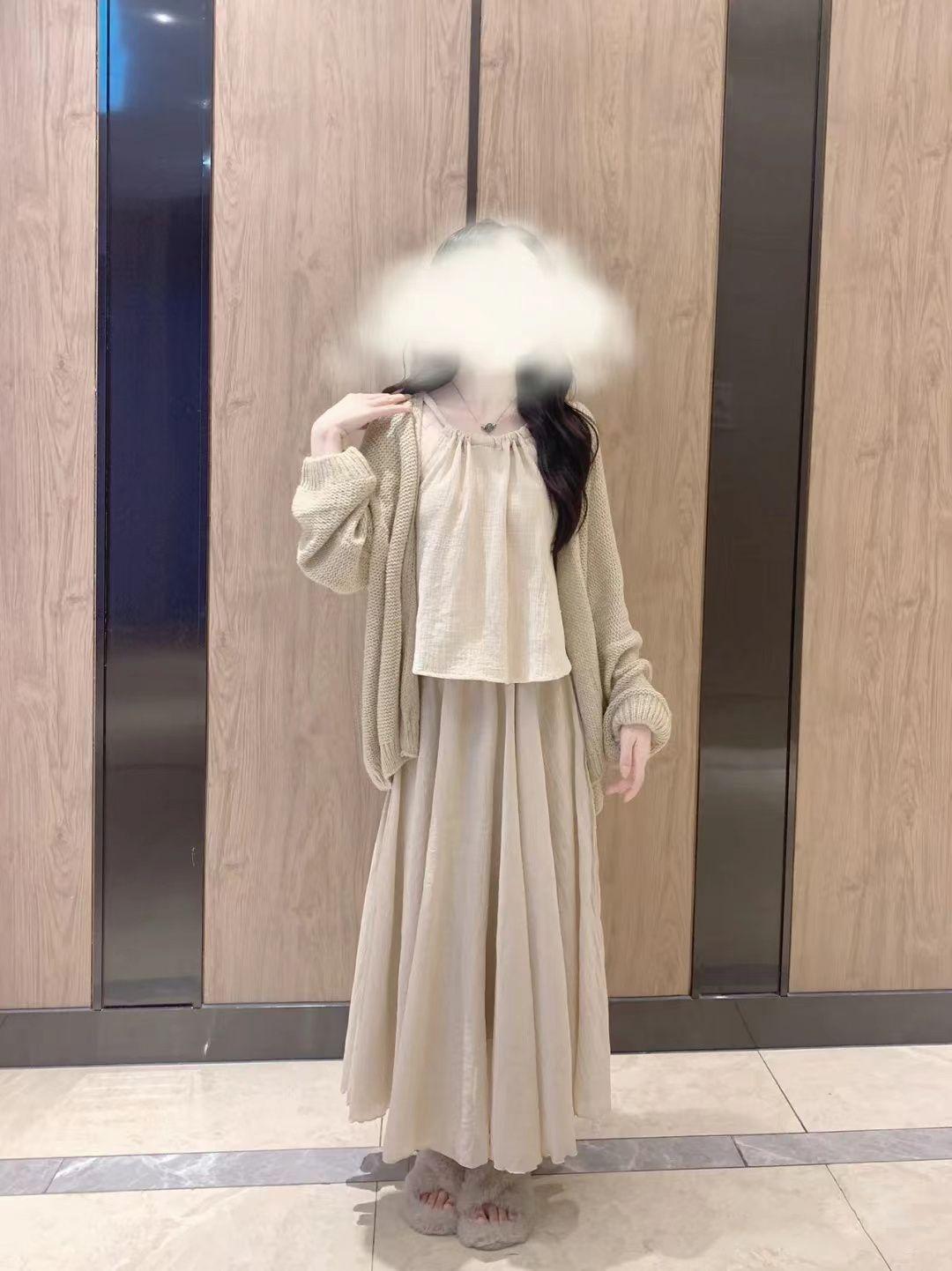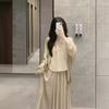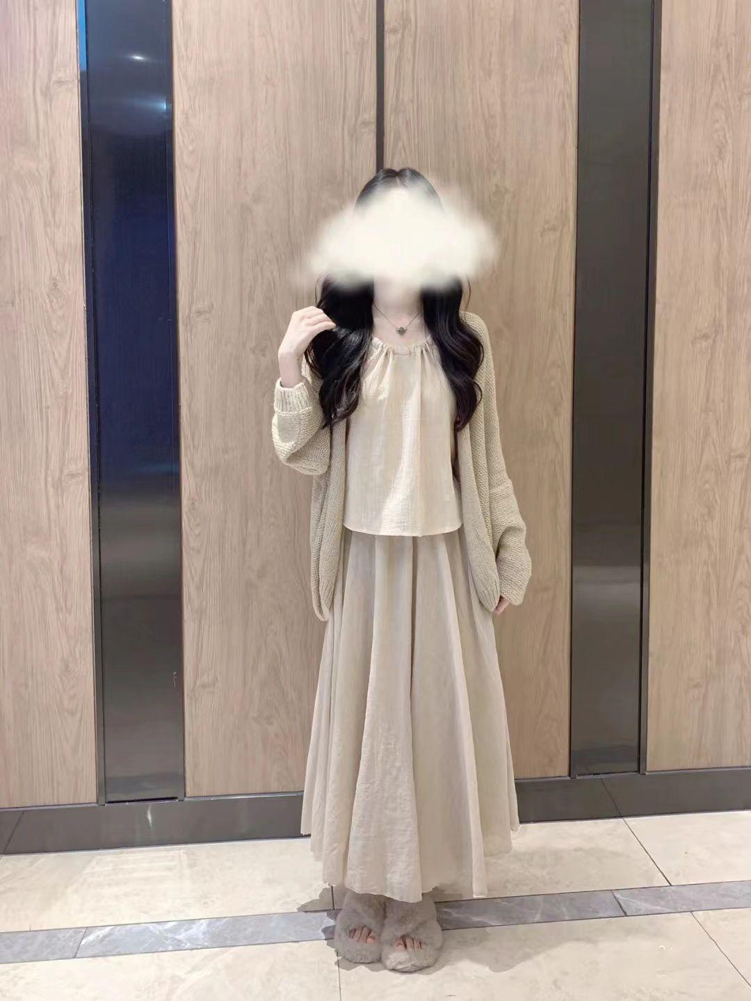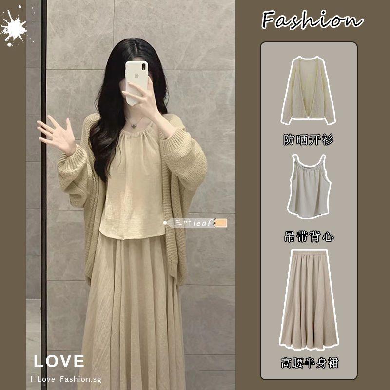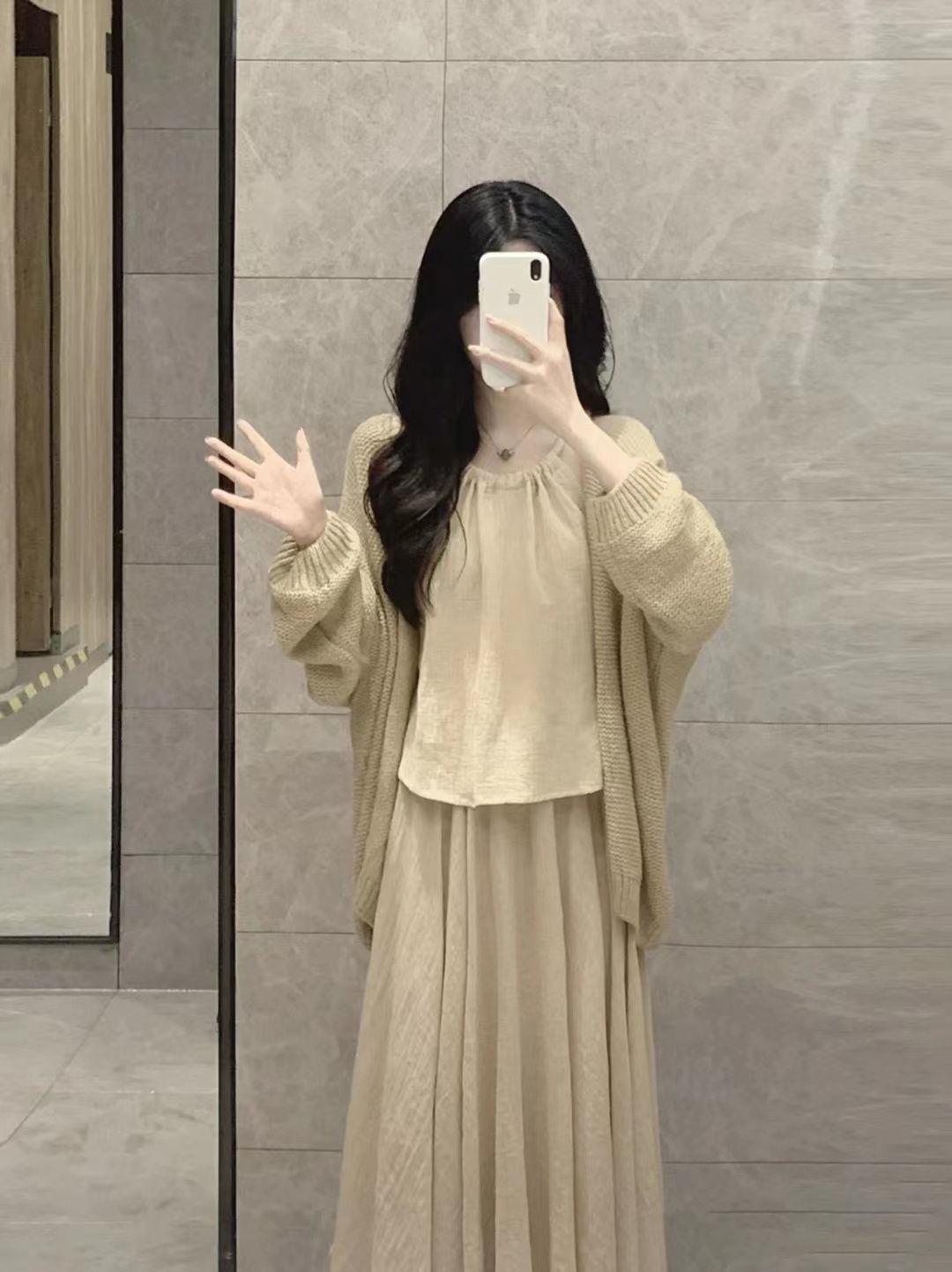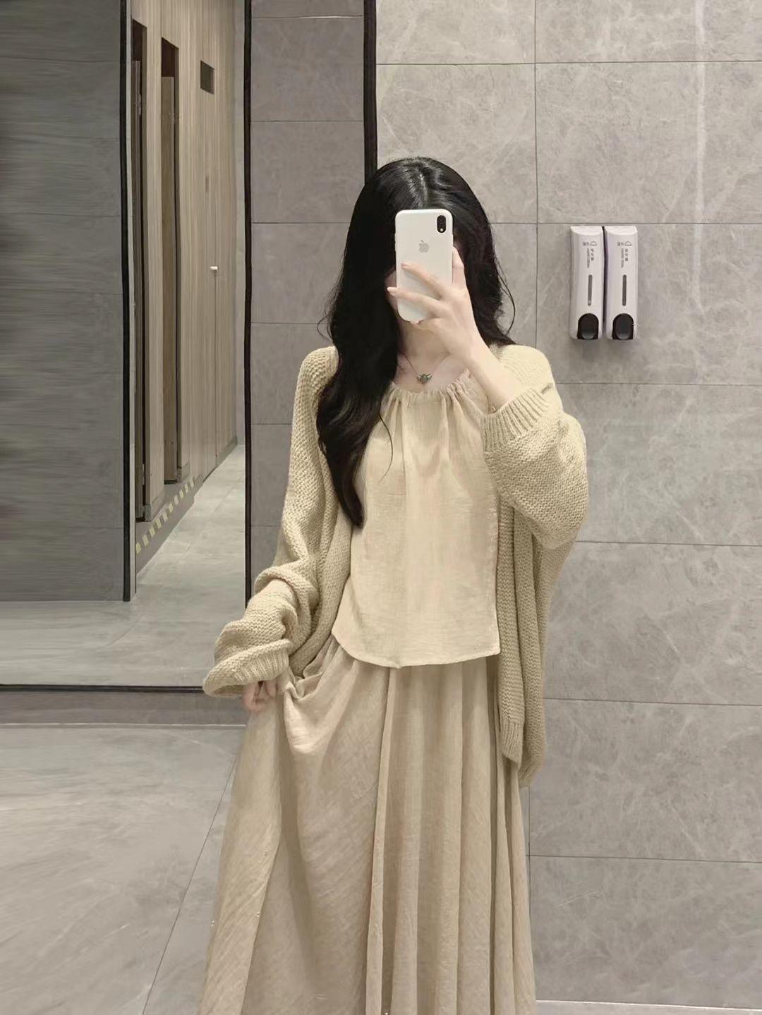 Traje para Mujer Primavera 2025 Nuevo Estilo Estilo Suave Zen Cárdigan Tejido Chaleco Halter Falda Slim de Cintura Alta Moderno
