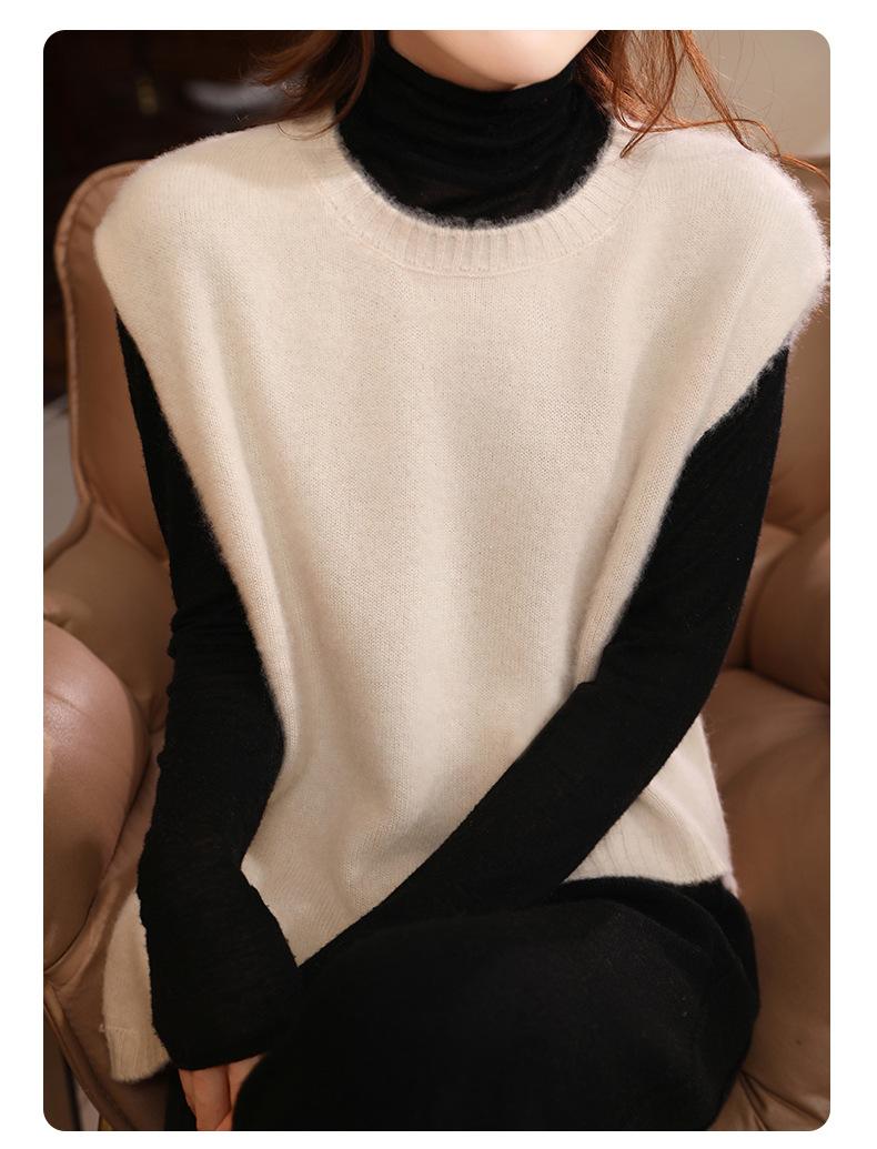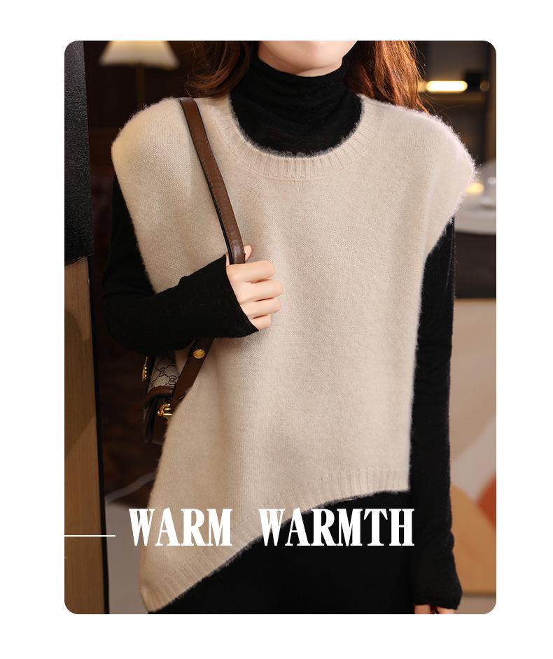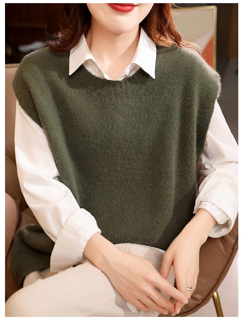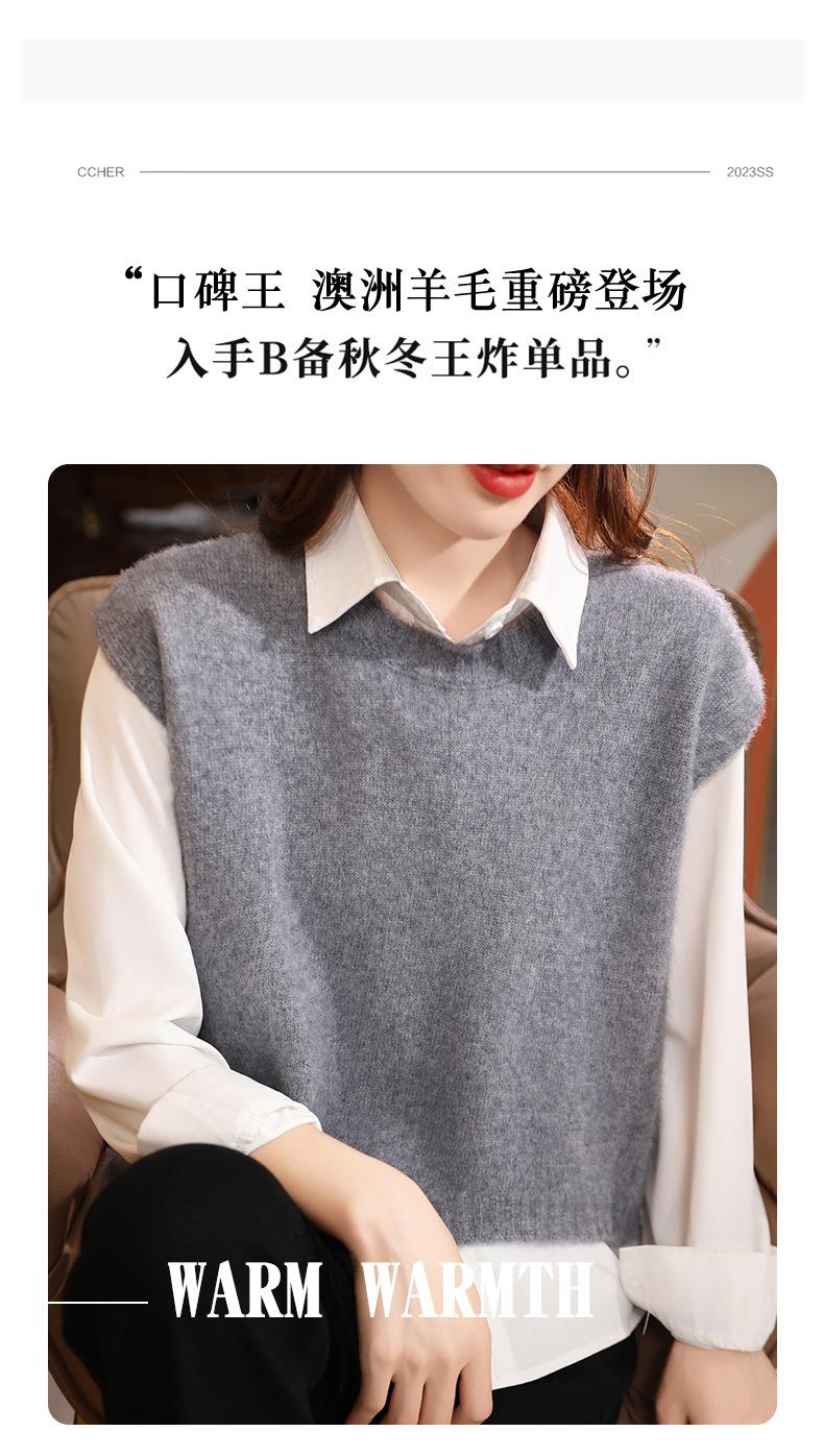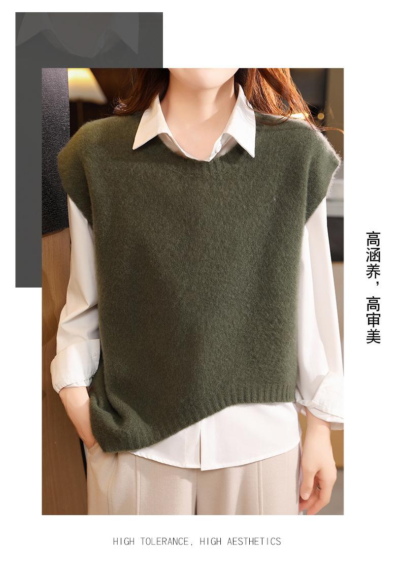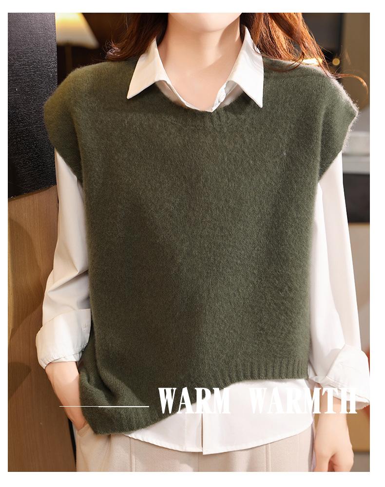 Chaleco de Punto de Lana Pura para Mujer Otoño e Invierno Nuevo Estilo Occidental para Exterior Holgado Adelgazante Vintage Elegante Chaleco Grueso