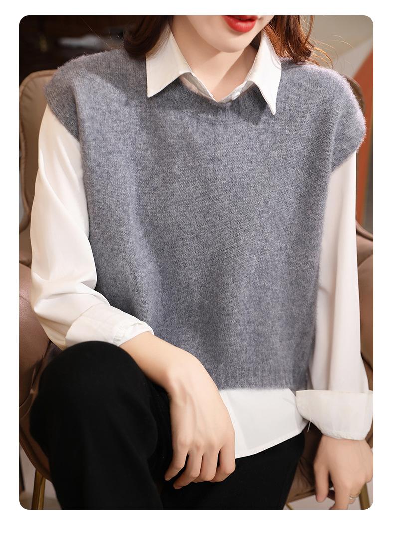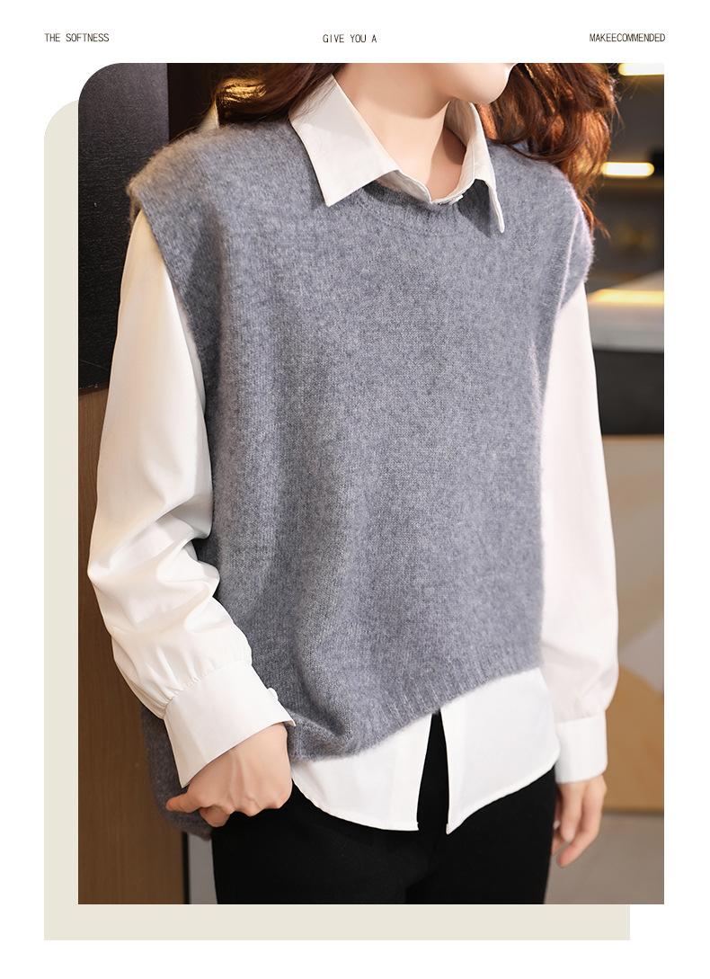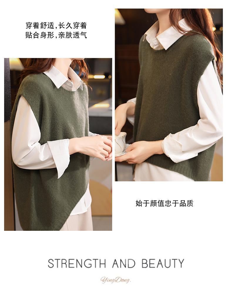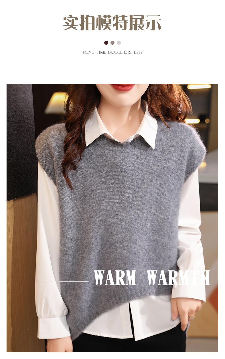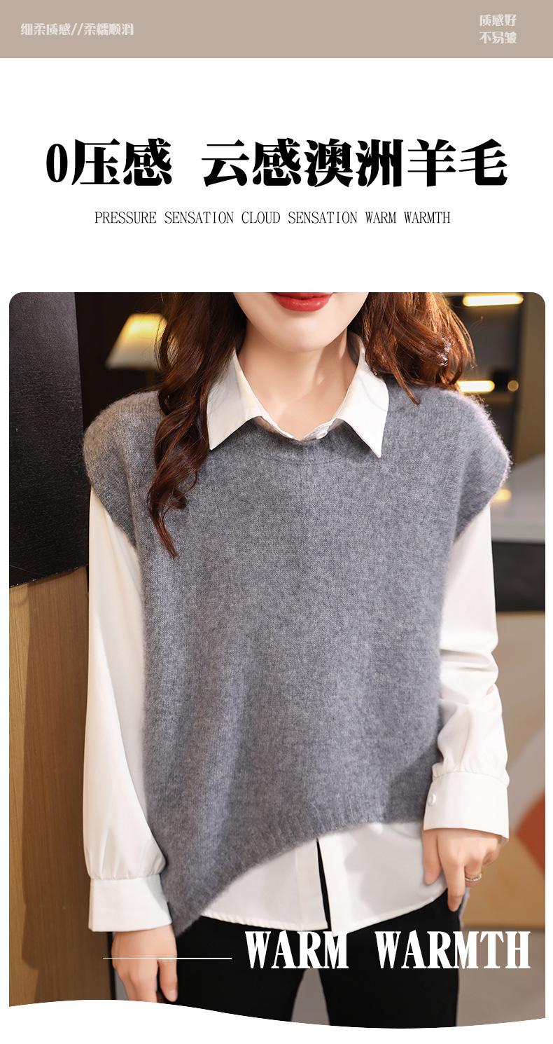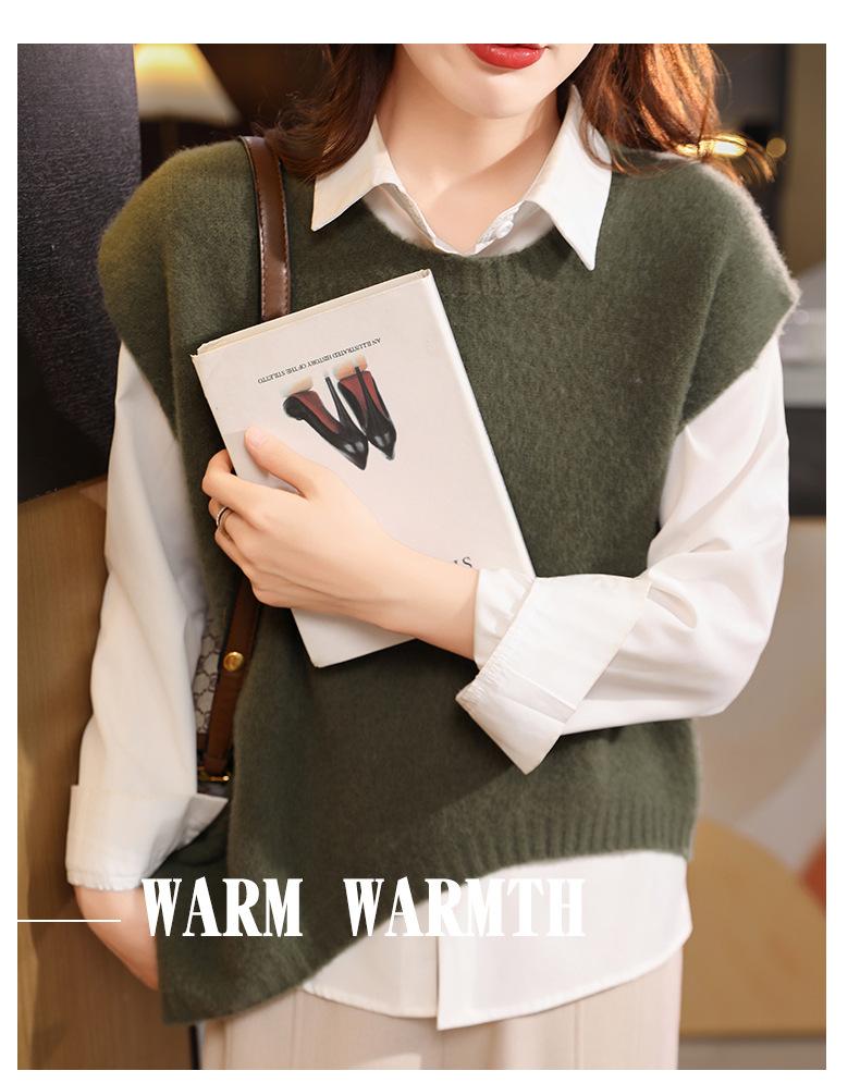 Chaleco de Punto de Lana Pura para Mujer Otoño e Invierno Nuevo Estilo Occidental para Exterior Holgado Adelgazante Vintage Elegante Chaleco Grueso