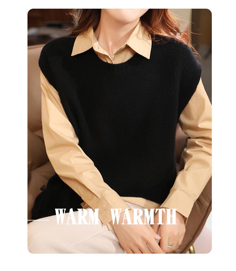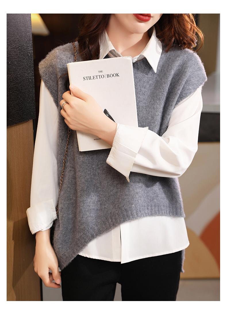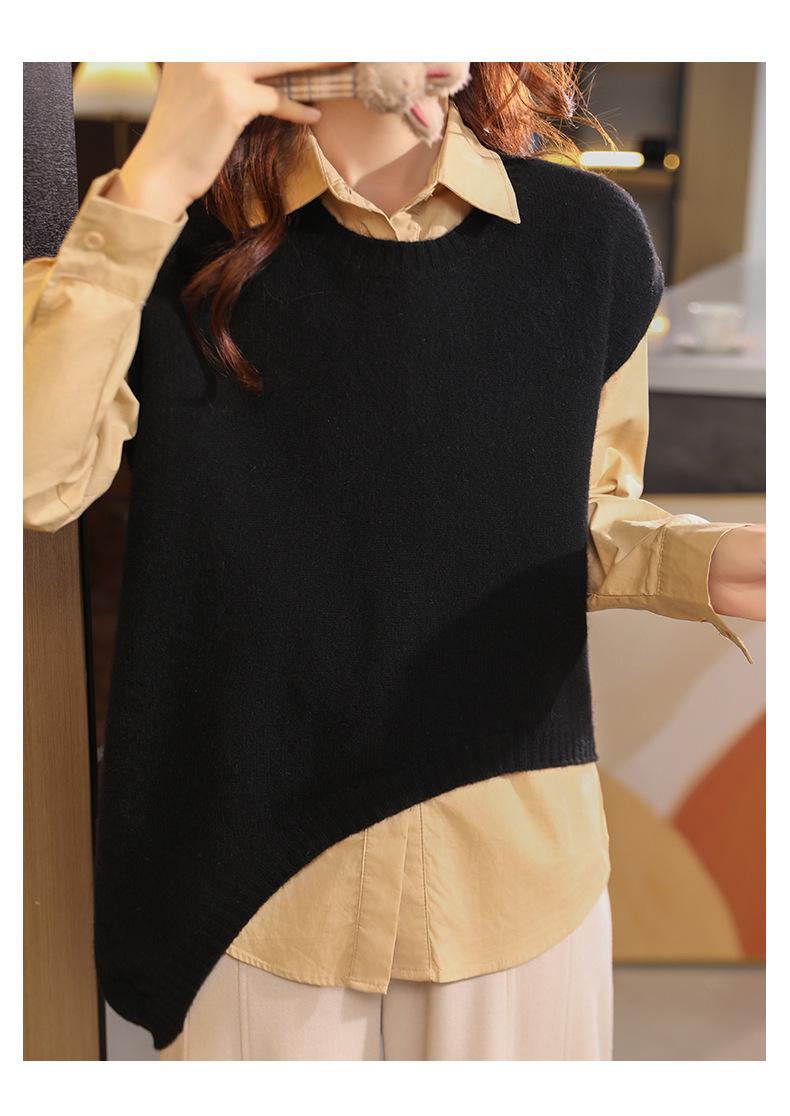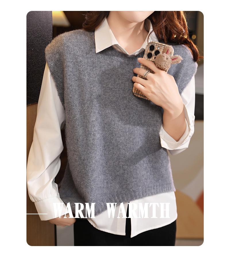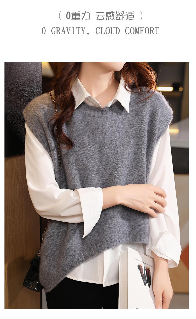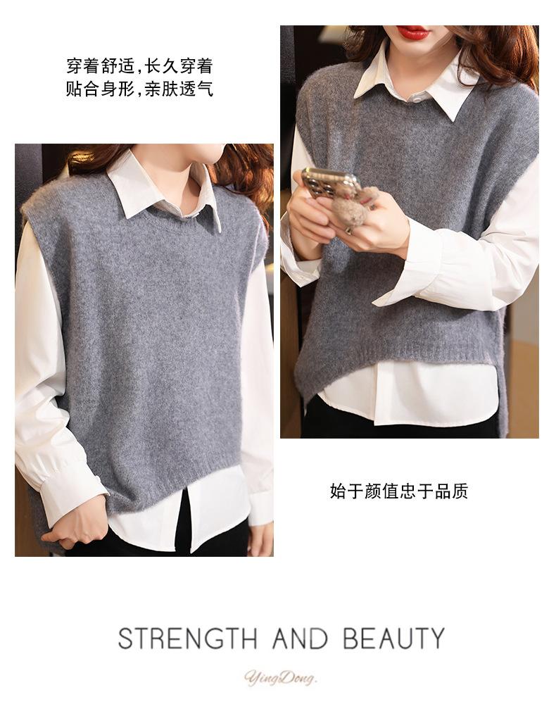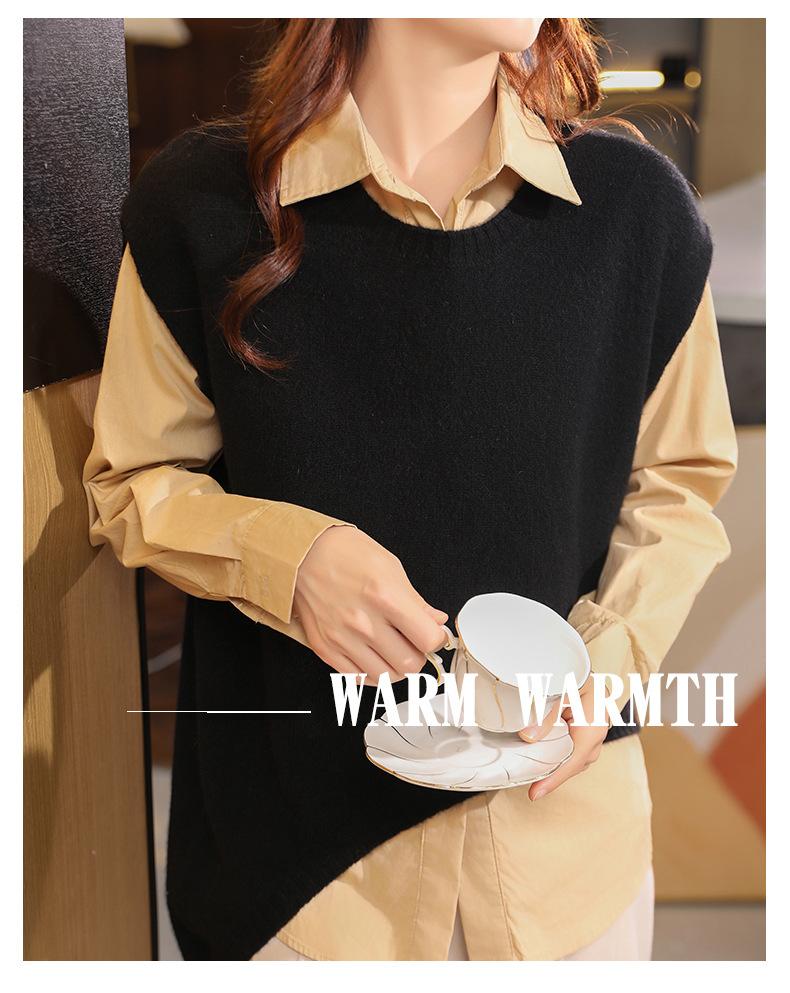 Chaleco de Punto de Lana Pura para Mujer Otoño e Invierno Nuevo Estilo Occidental para Exterior Holgado Adelgazante Vintage Elegante Chaleco Grueso