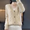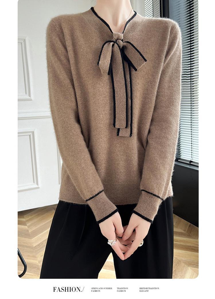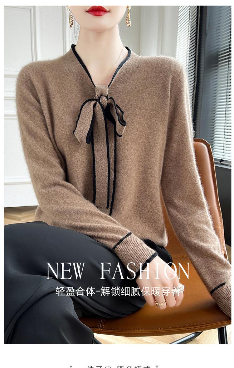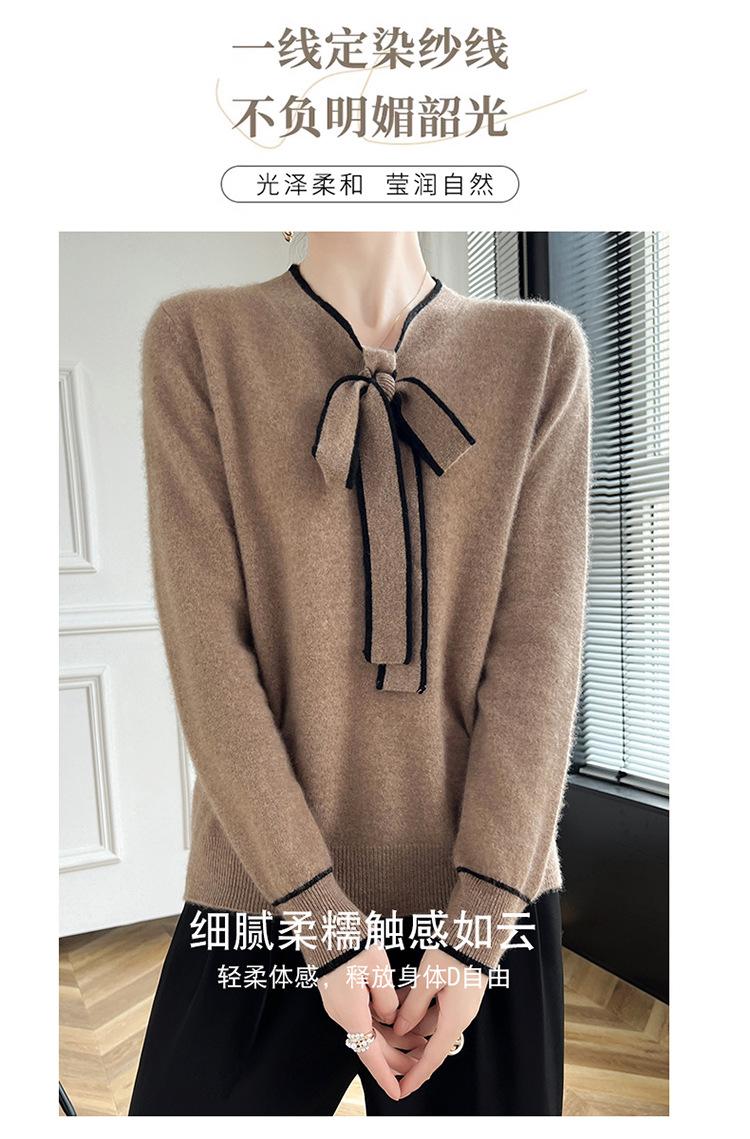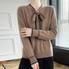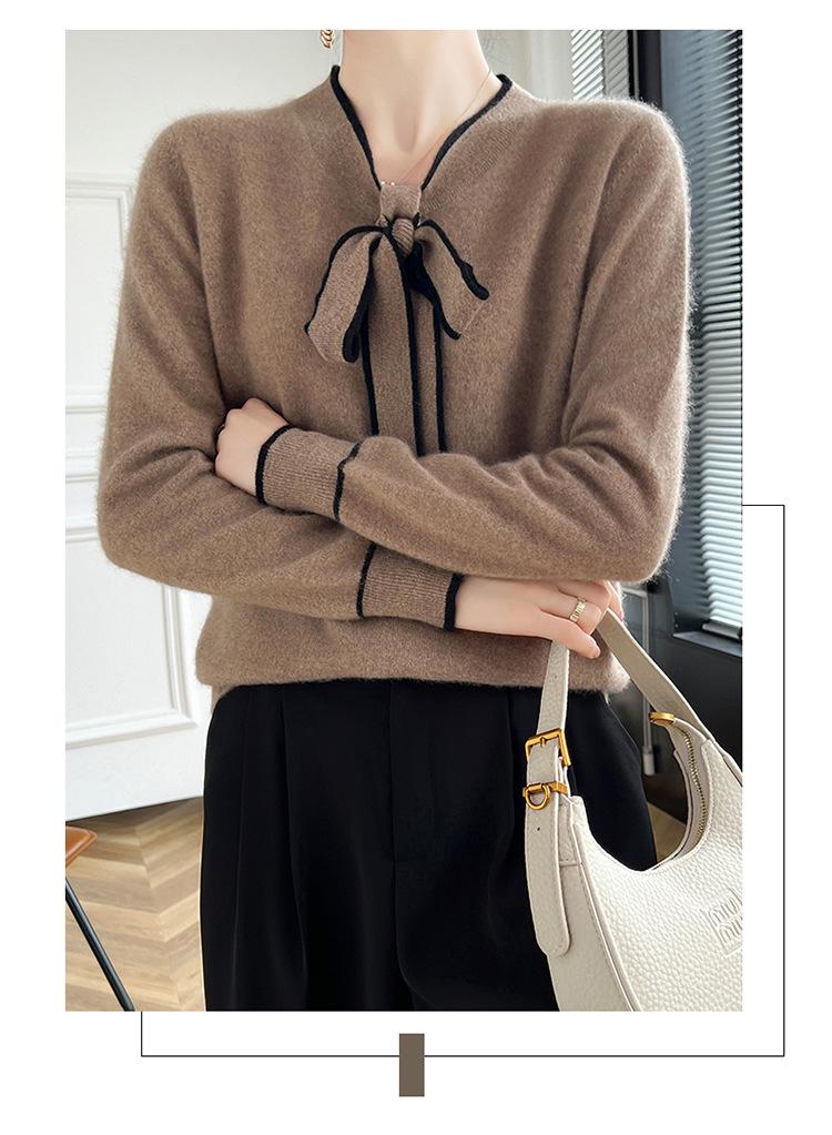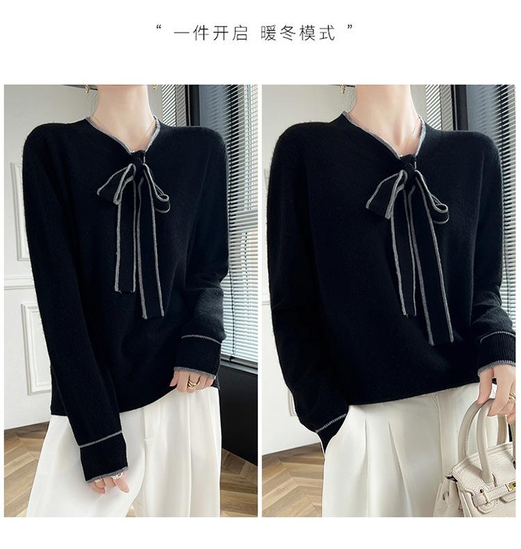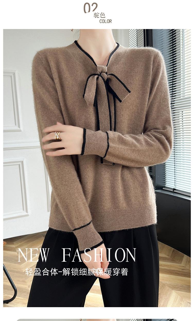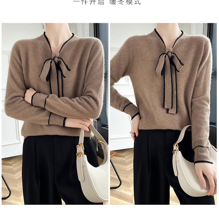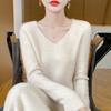 Suéter de Lana Nuevo para Otoño e Invierno 2024 para Mujer Suéter Tejido de Cuello en V de Manga Larga Suéter Holgado Básico Tejido Top