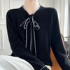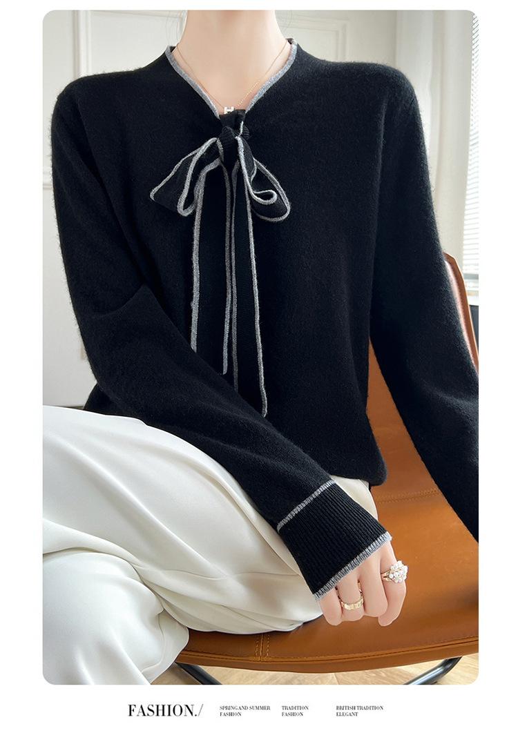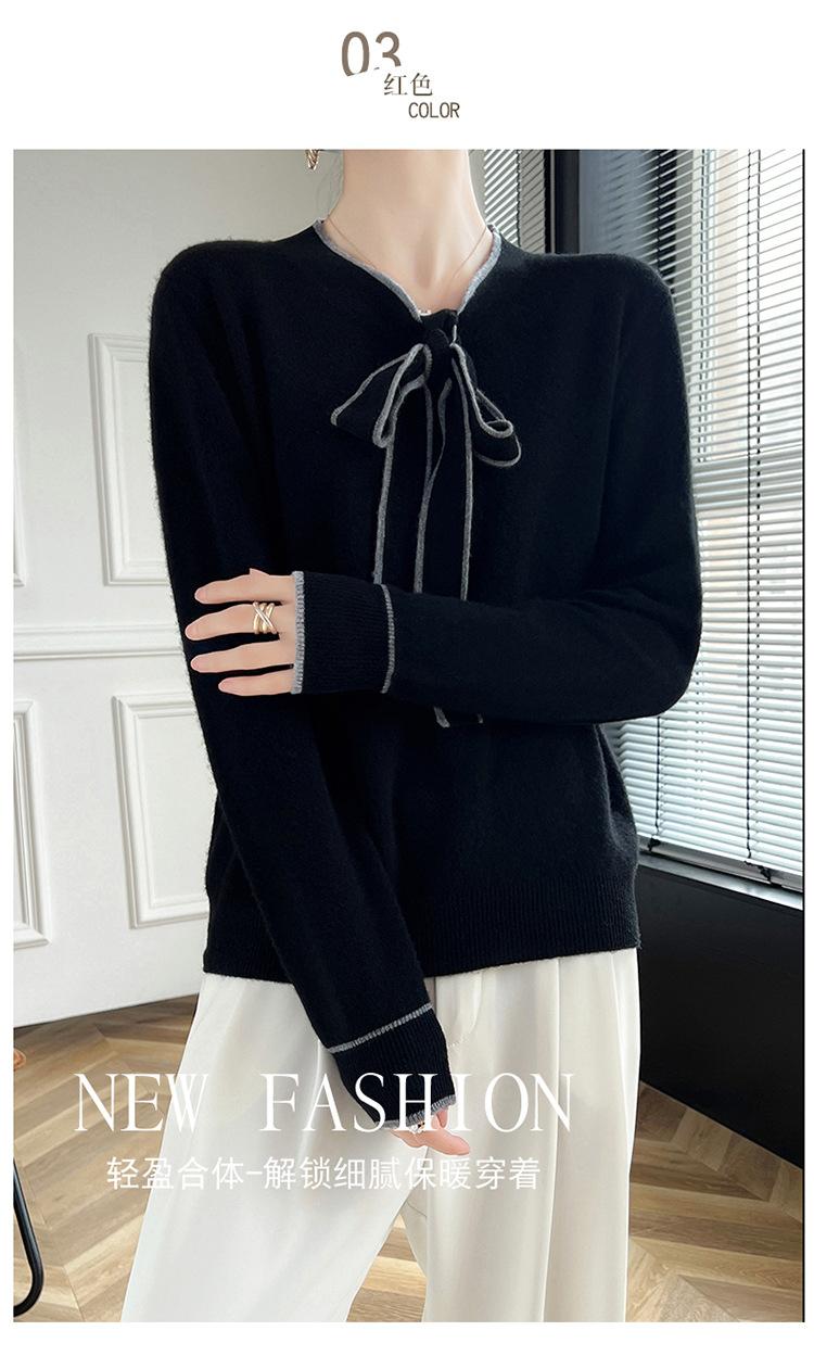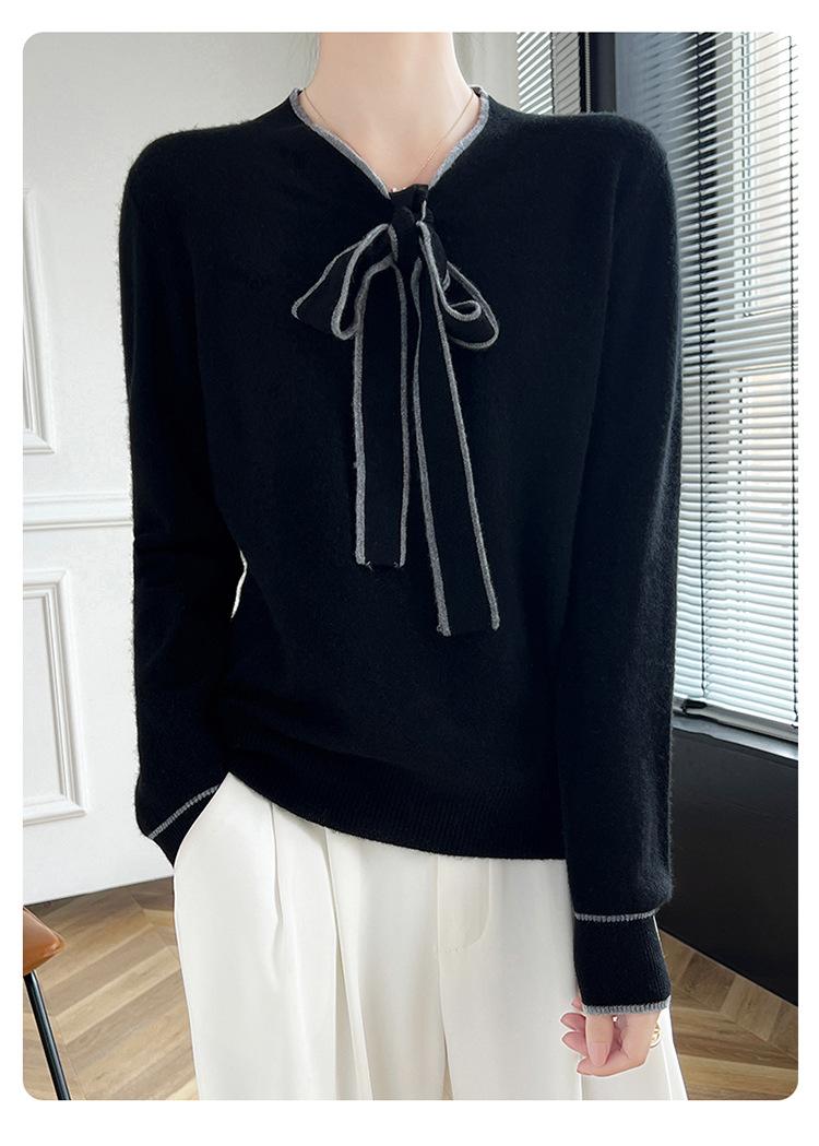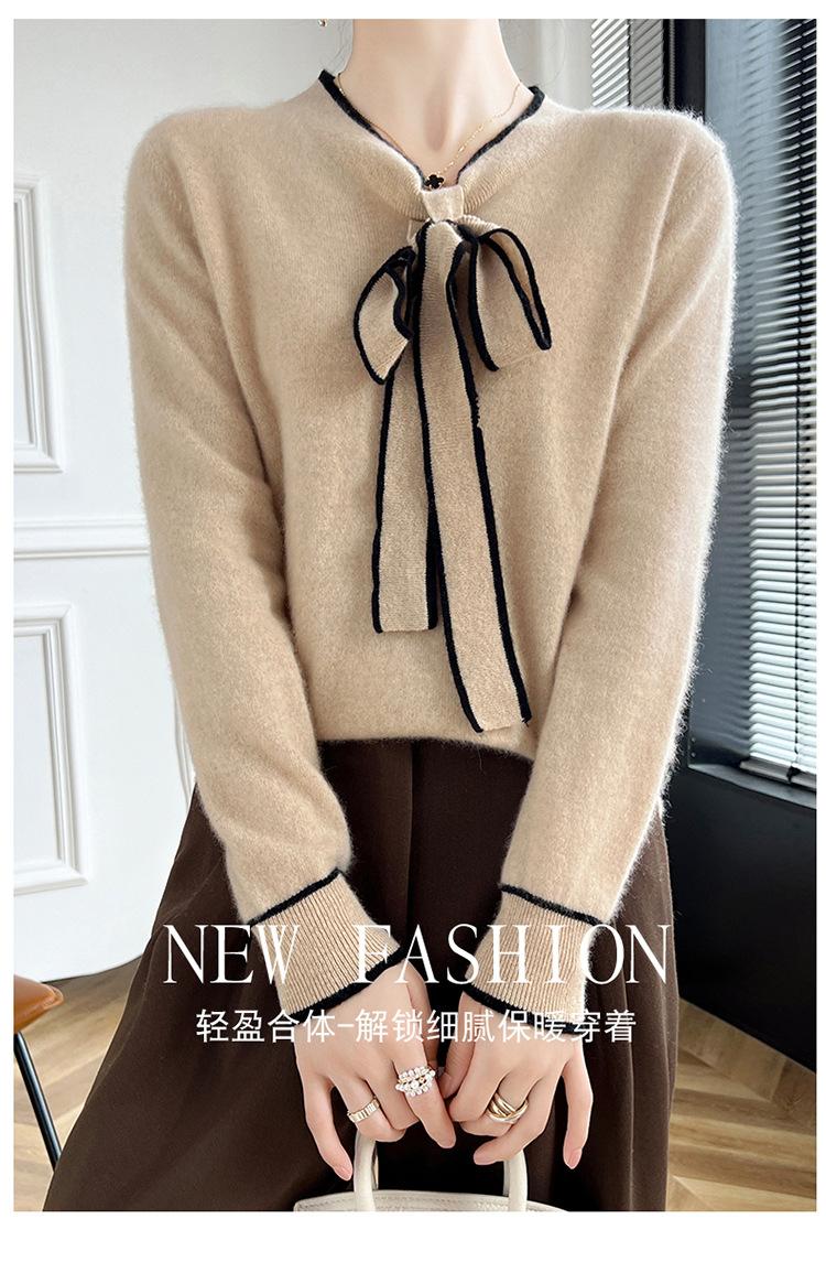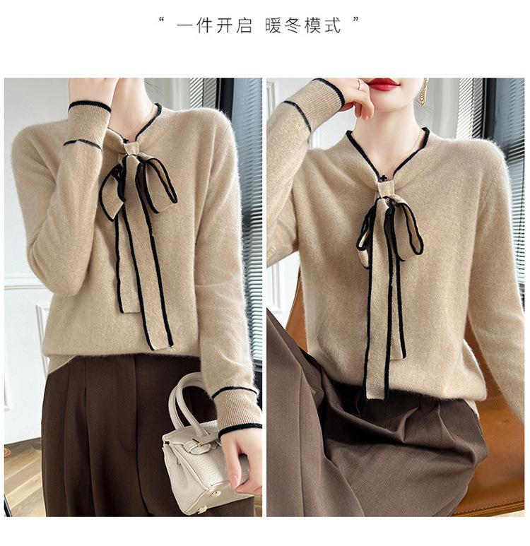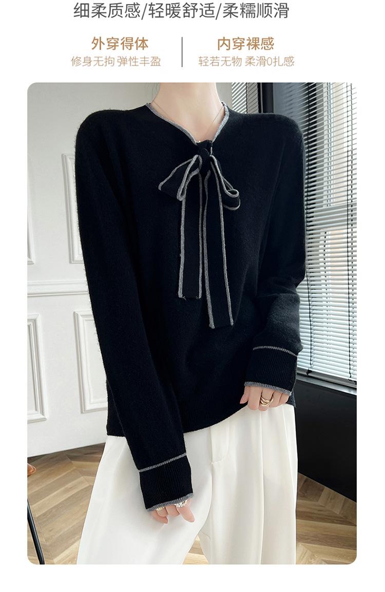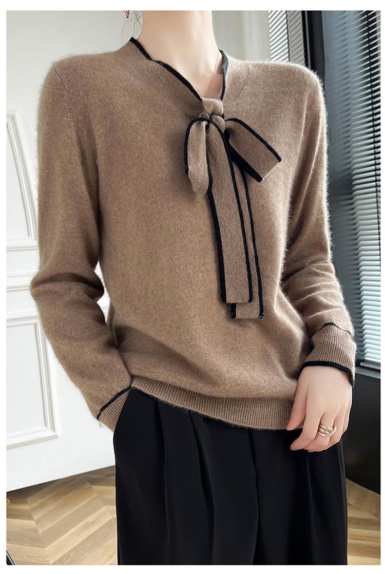 Suéter de Lana Nuevo para Otoño e Invierno 2024 para Mujer Suéter Tejido de Cuello en V de Manga Larga Suéter Holgado Básico Tejido Top