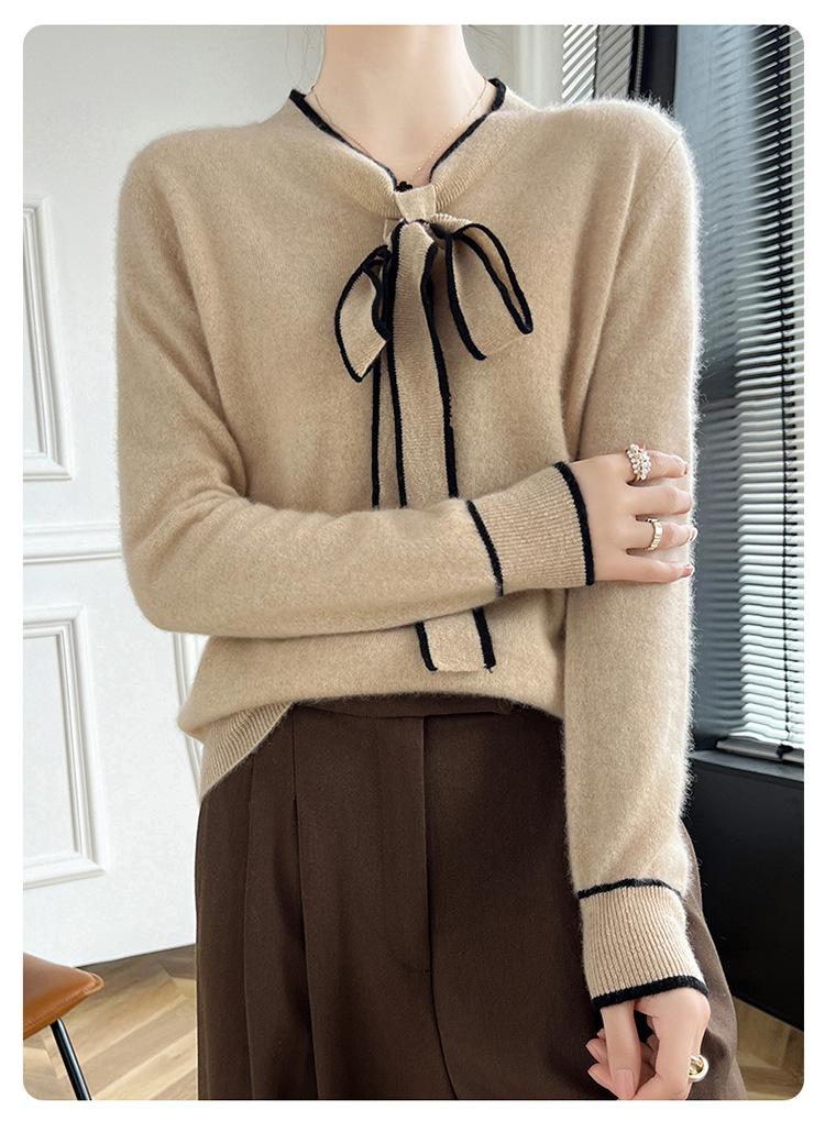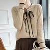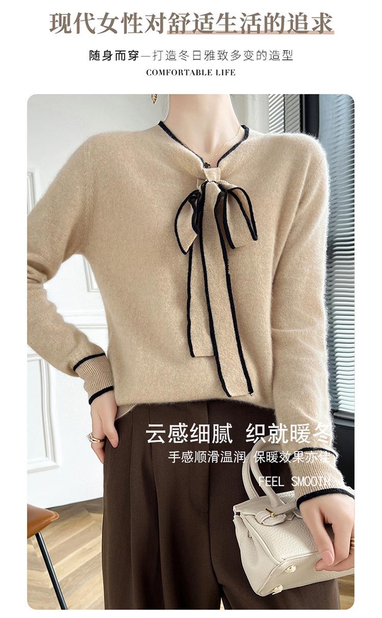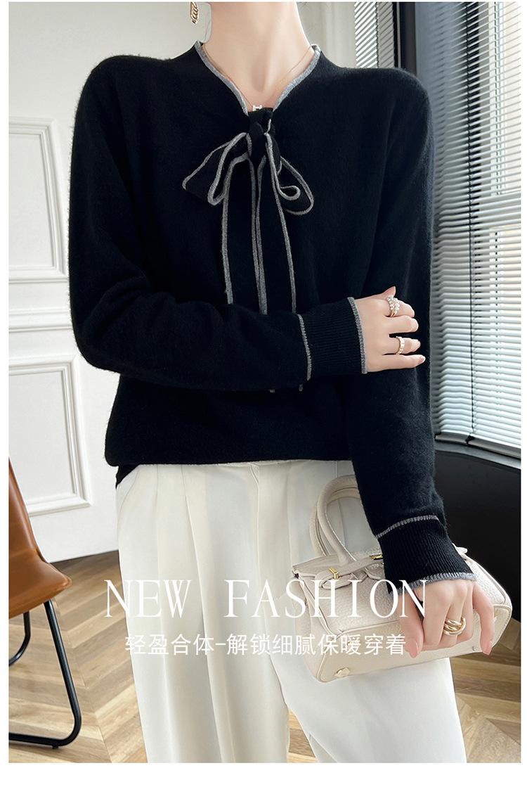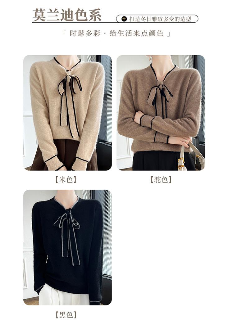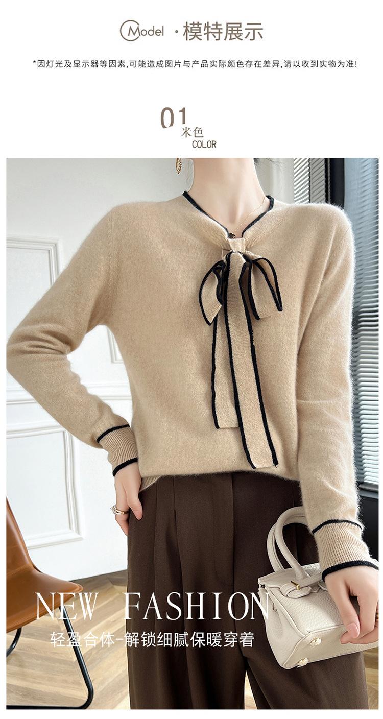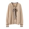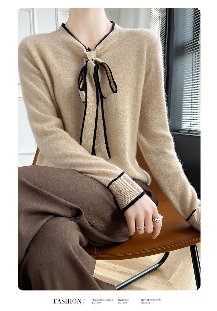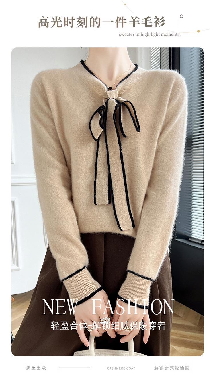 Suéter de Lana Nuevo para Otoño e Invierno 2024 para Mujer Suéter Tejido de Cuello en V de Manga Larga Suéter Holgado Básico Tejido Top