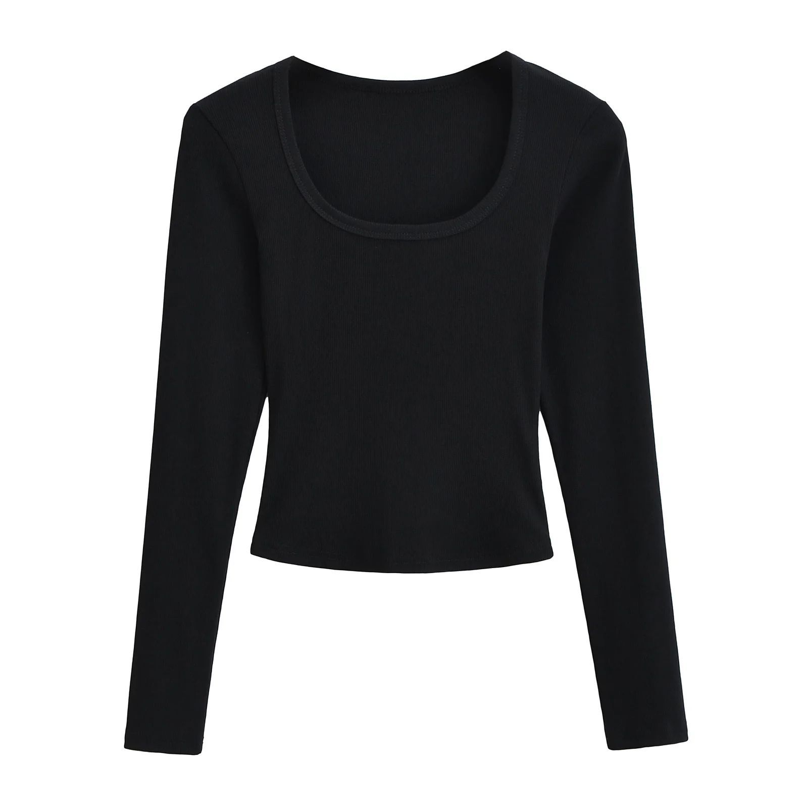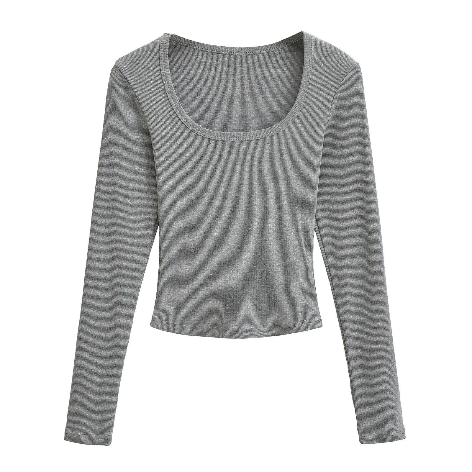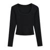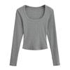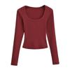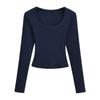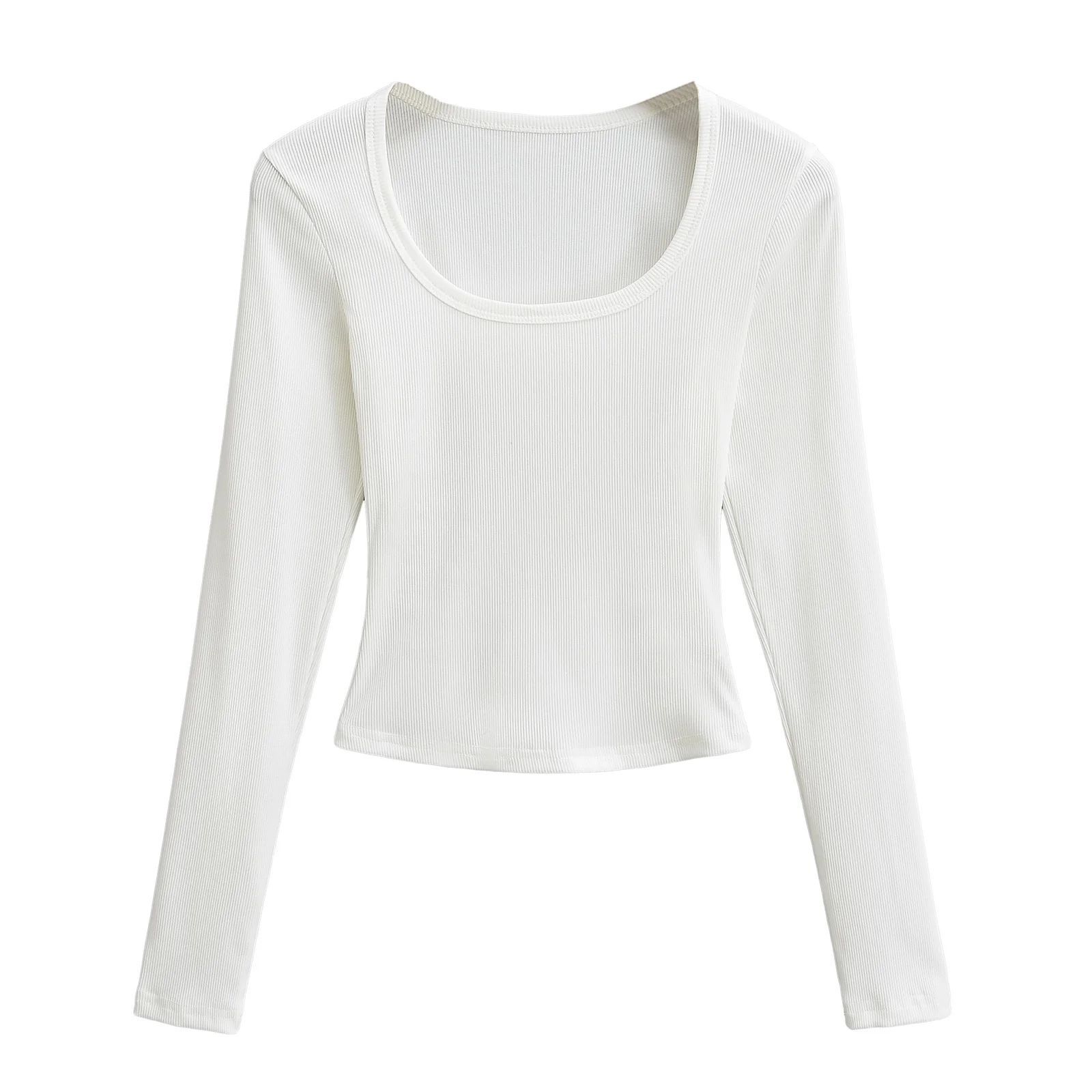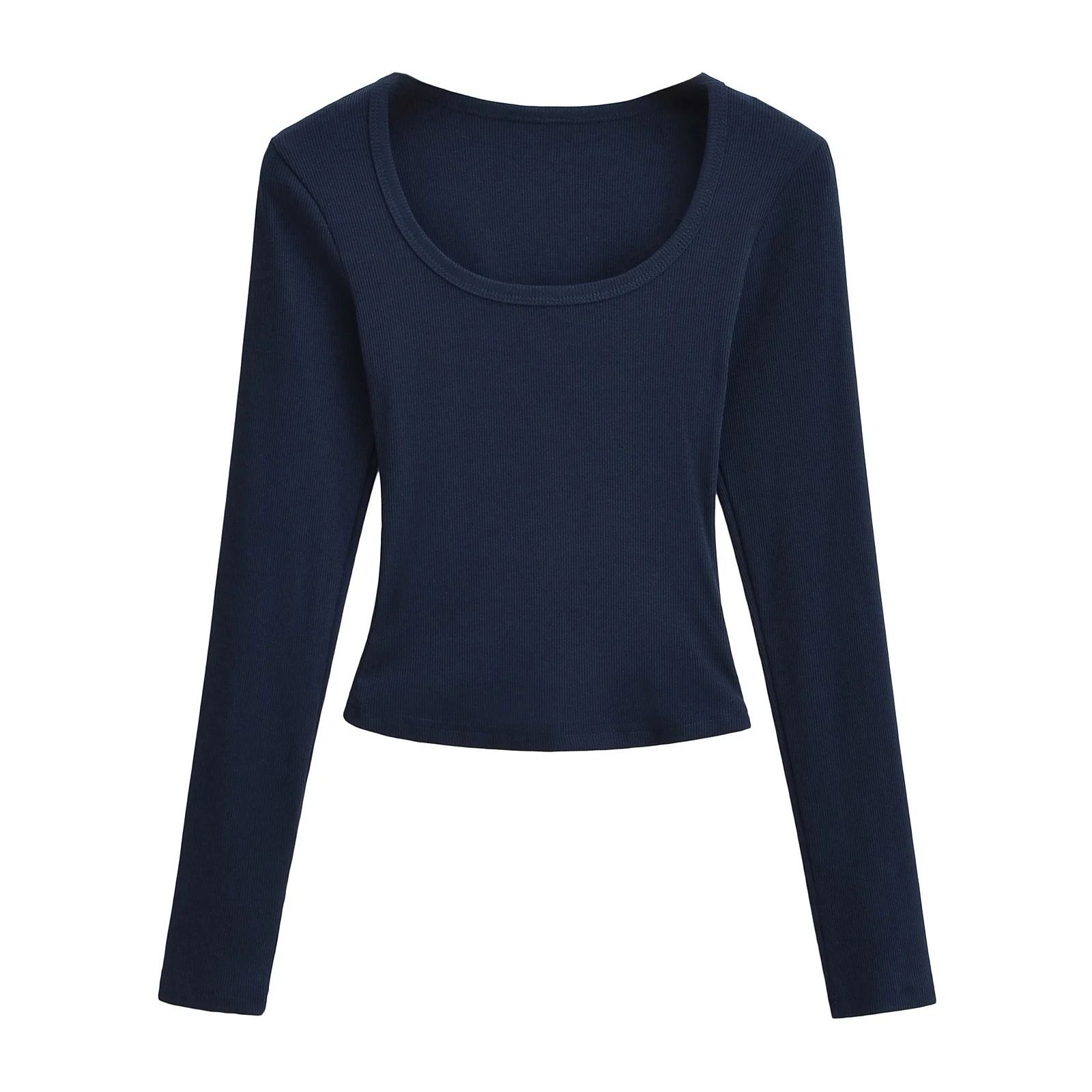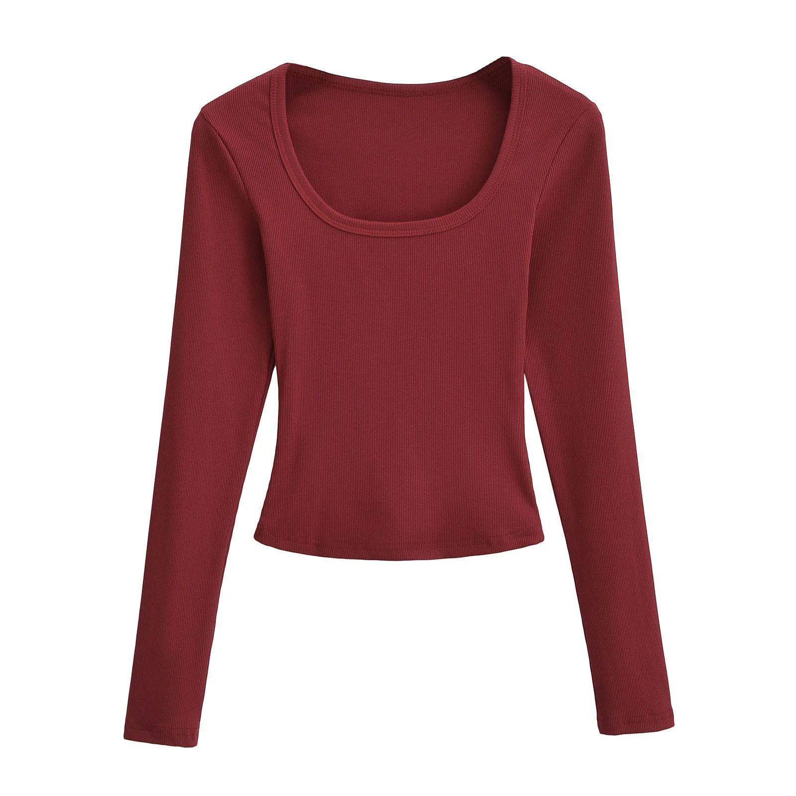 Camiseta de manga larga con cuello redondo grande y sexy de las Spice Girls europeas y americanas, otoño e invierno 2024, camiseta de base corta ajustada y elástica alta