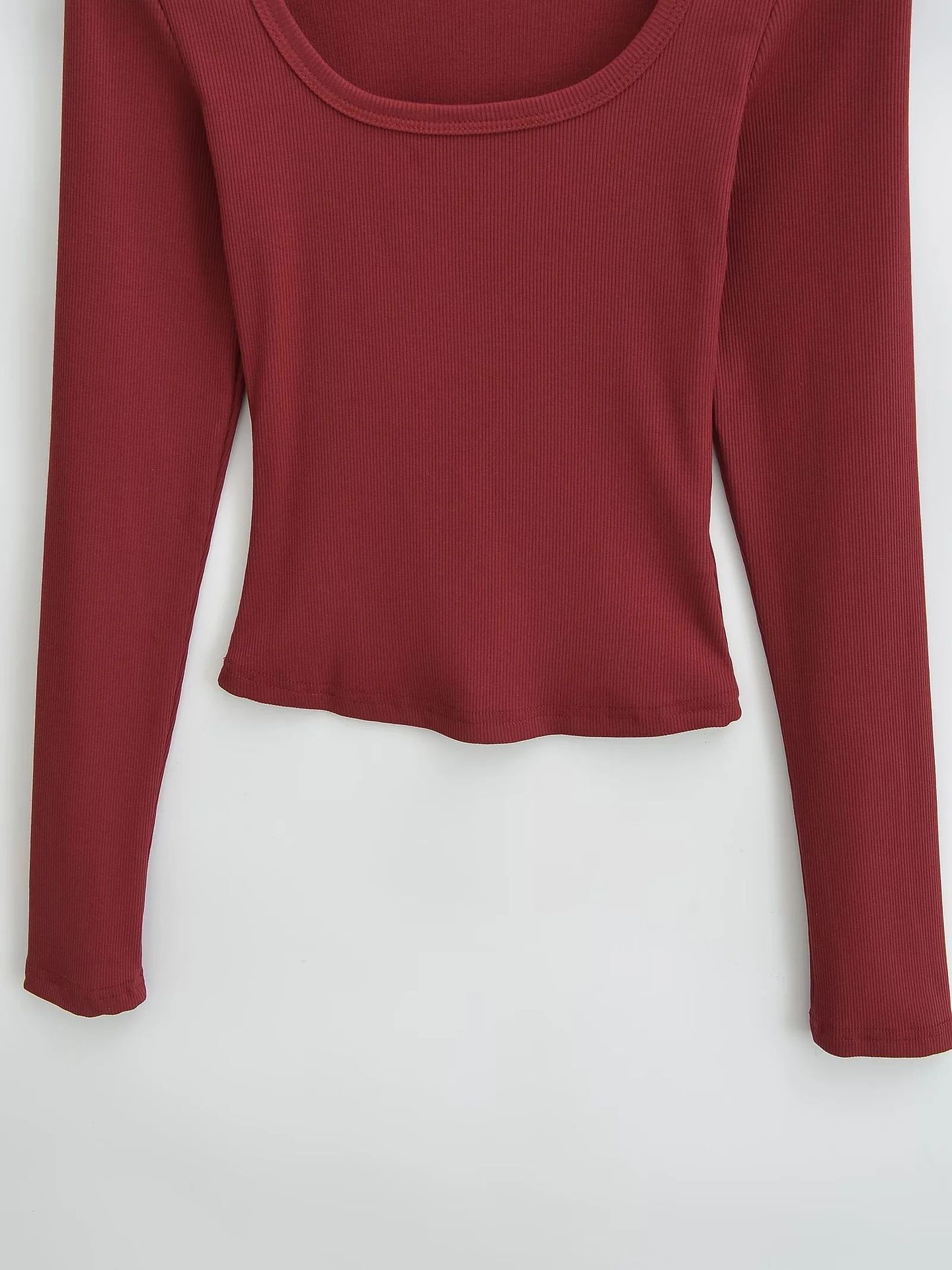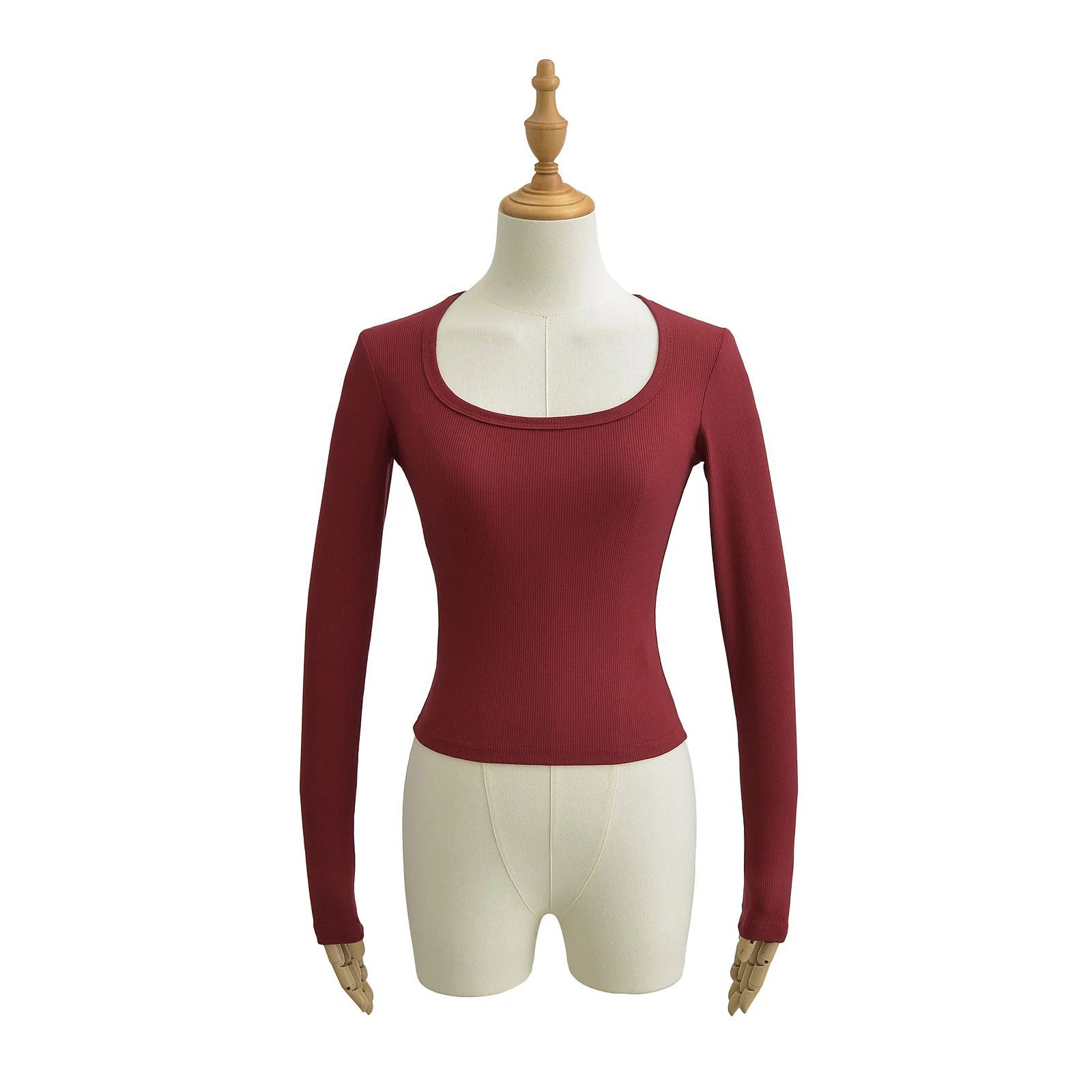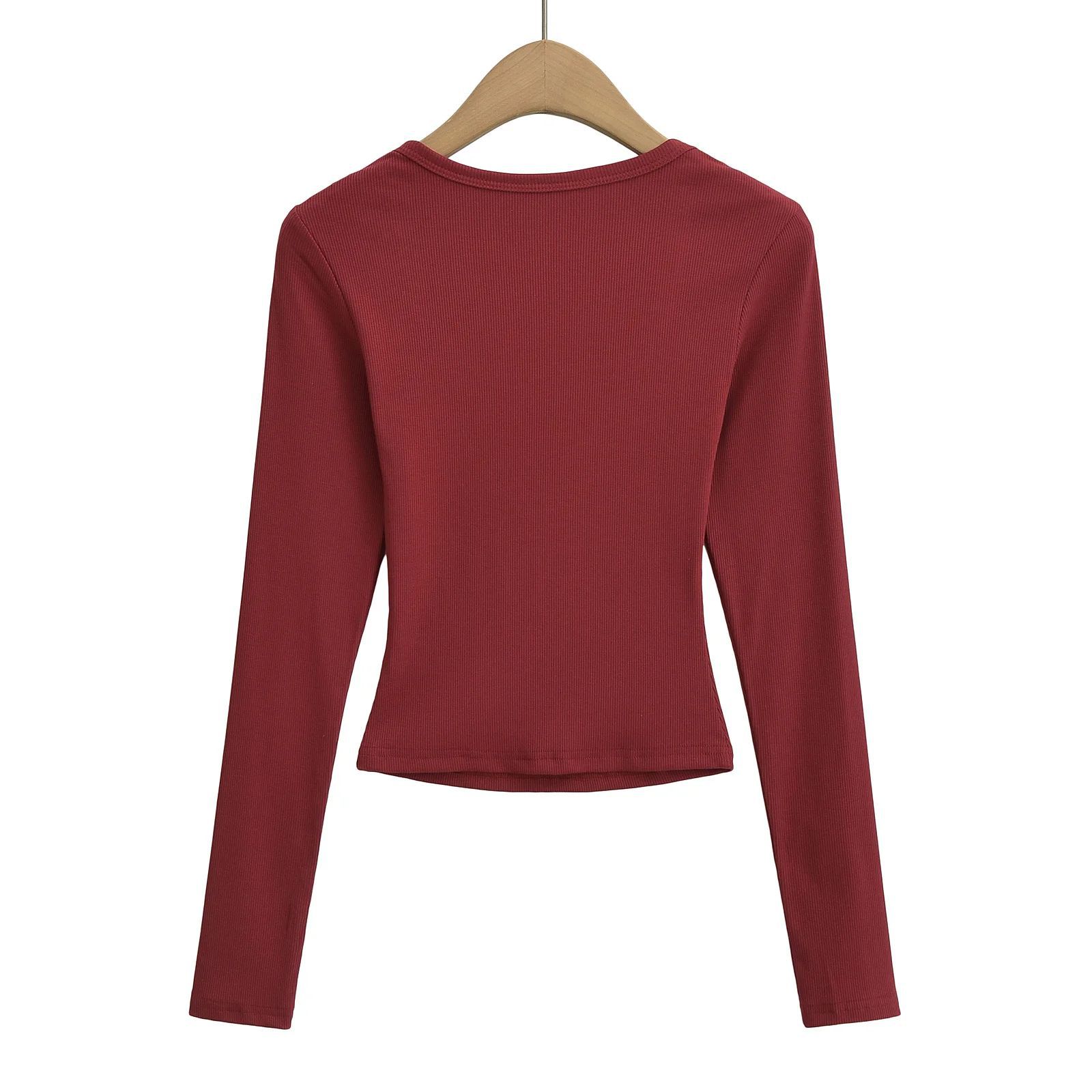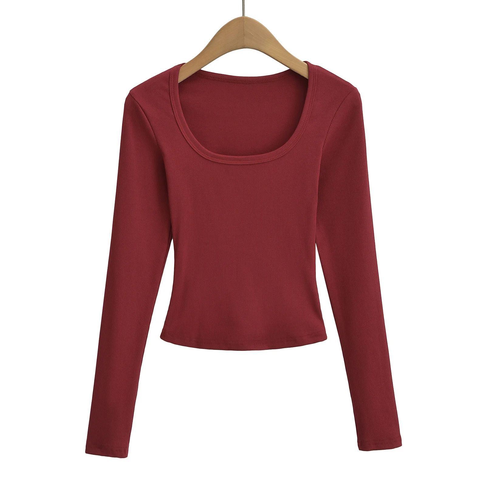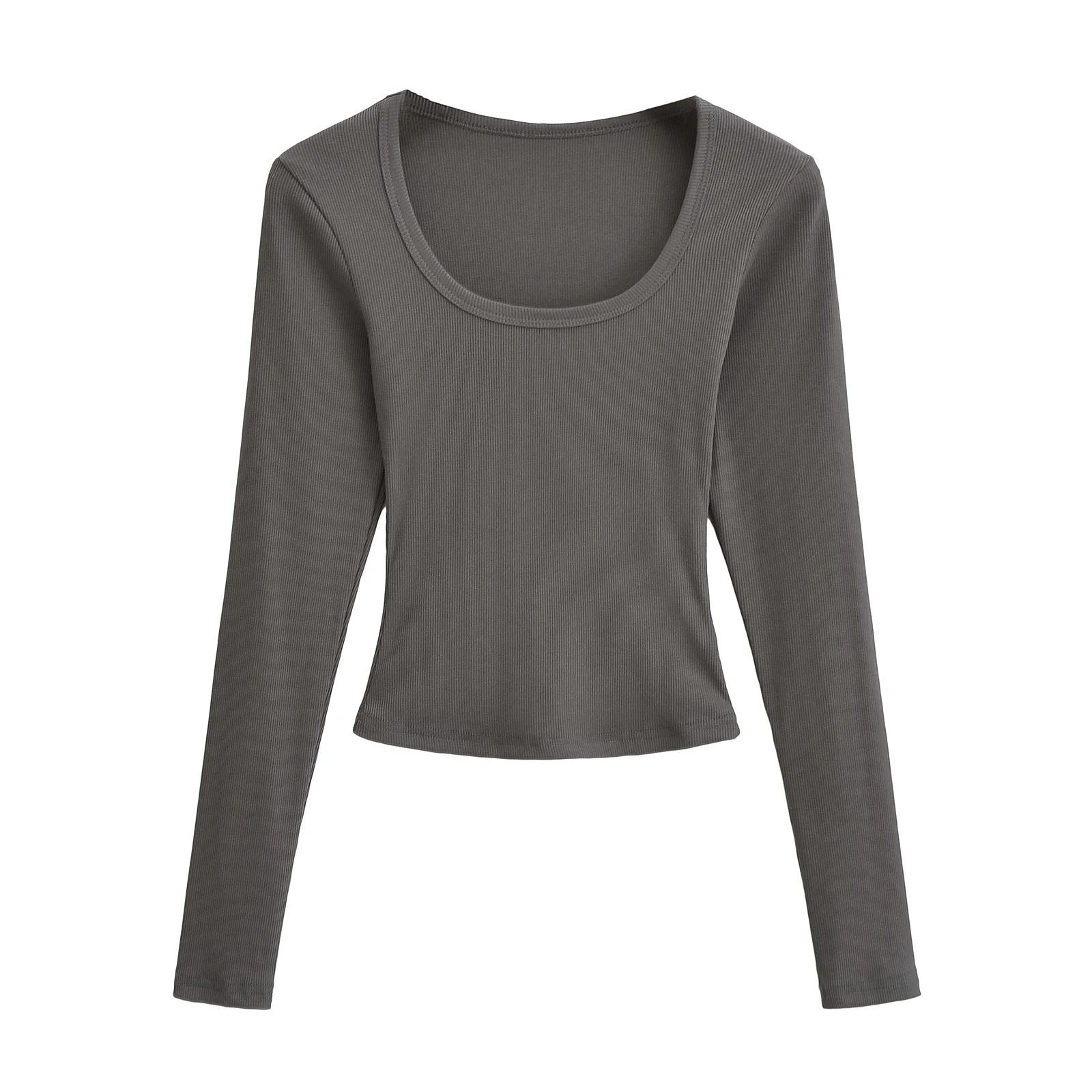 Camiseta de manga larga con cuello redondo grande y sexy de las Spice Girls europeas y americanas, otoño e invierno 2024, camiseta de base corta ajustada y elástica alta