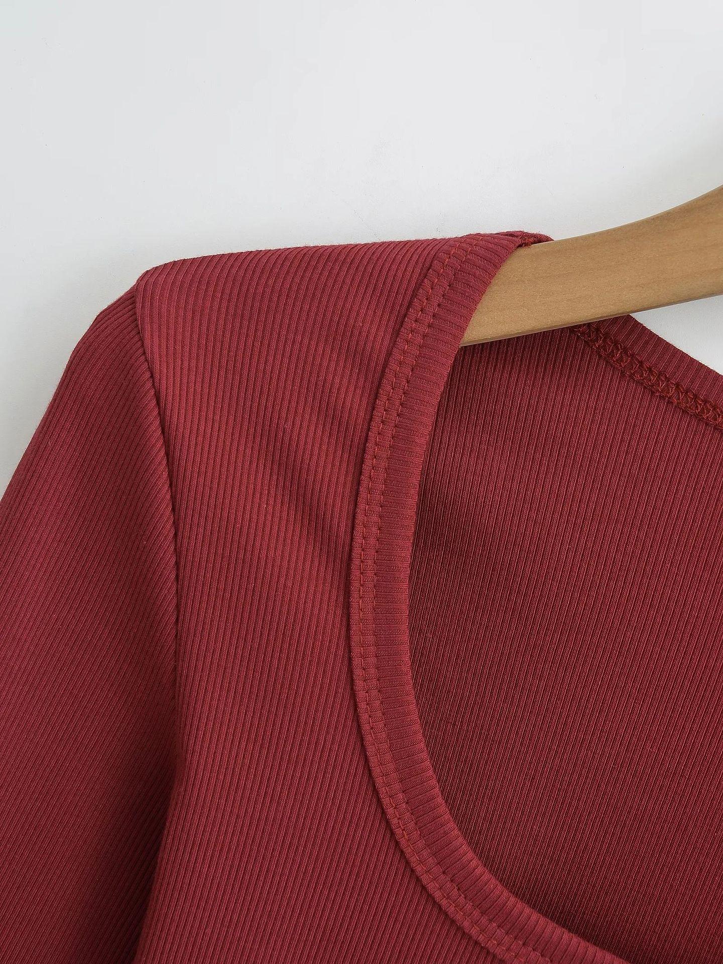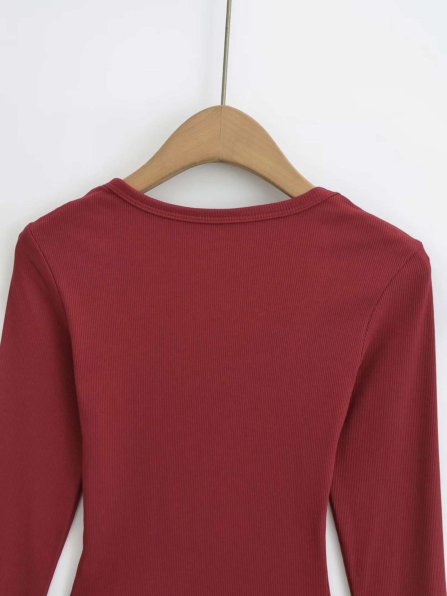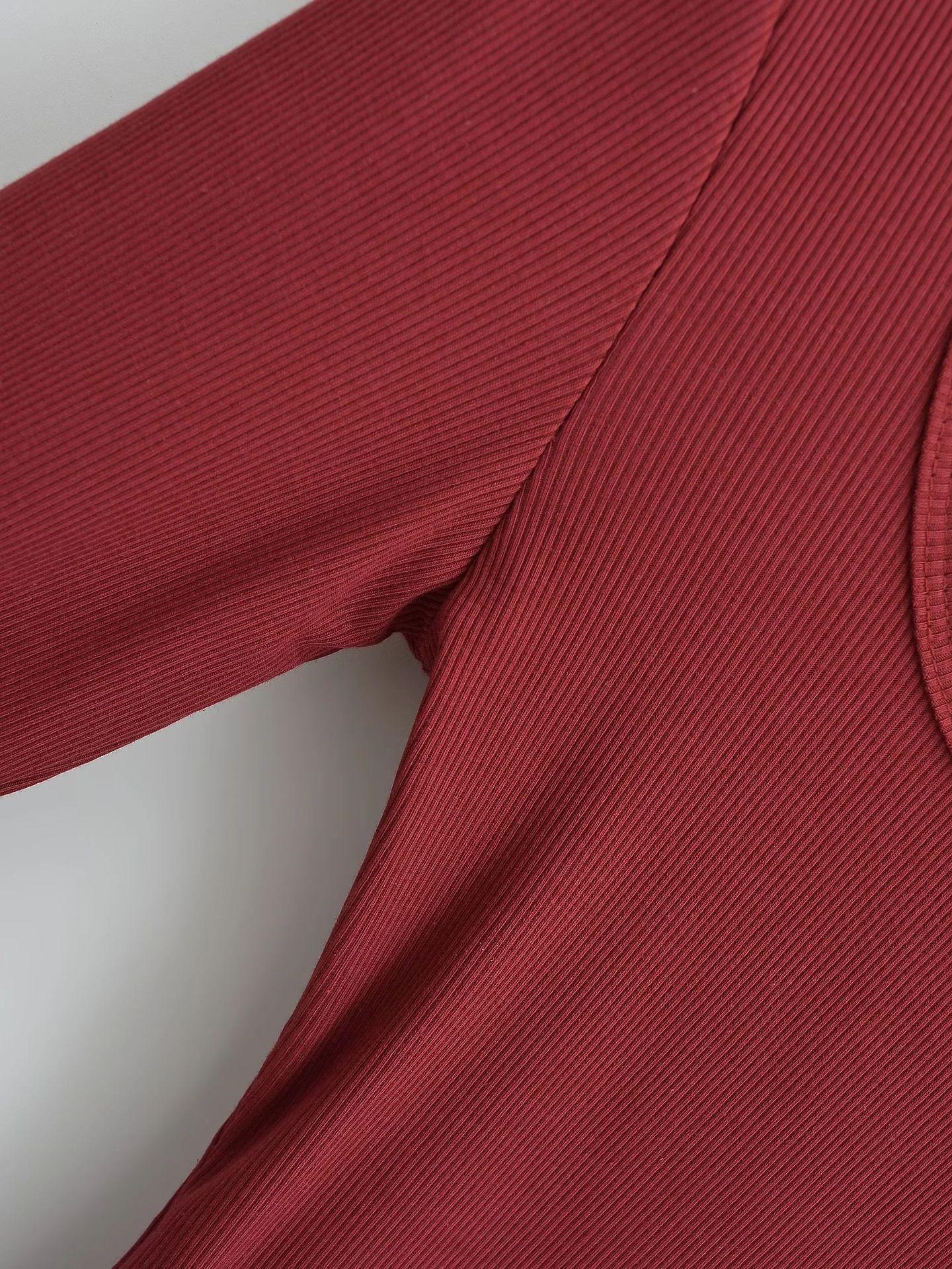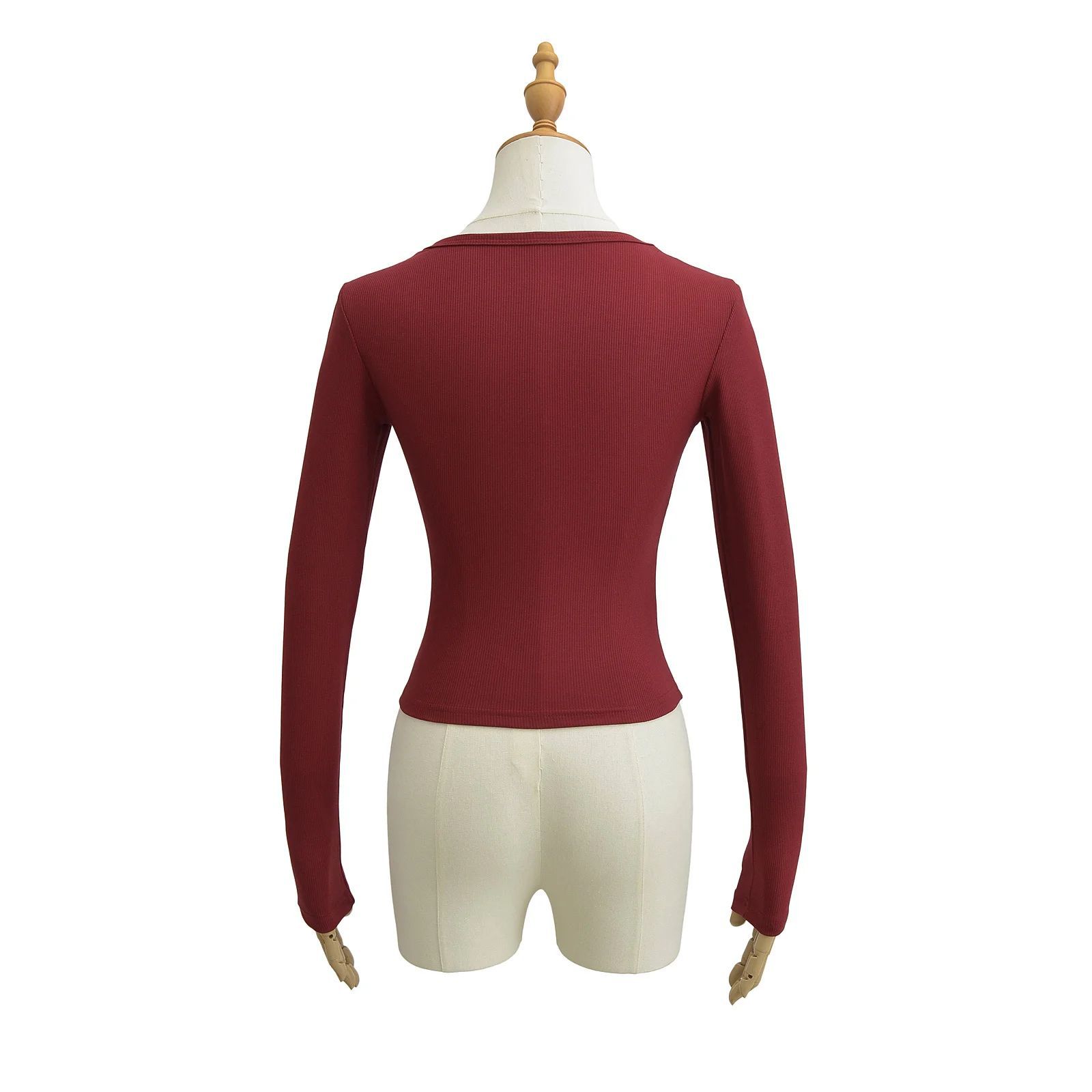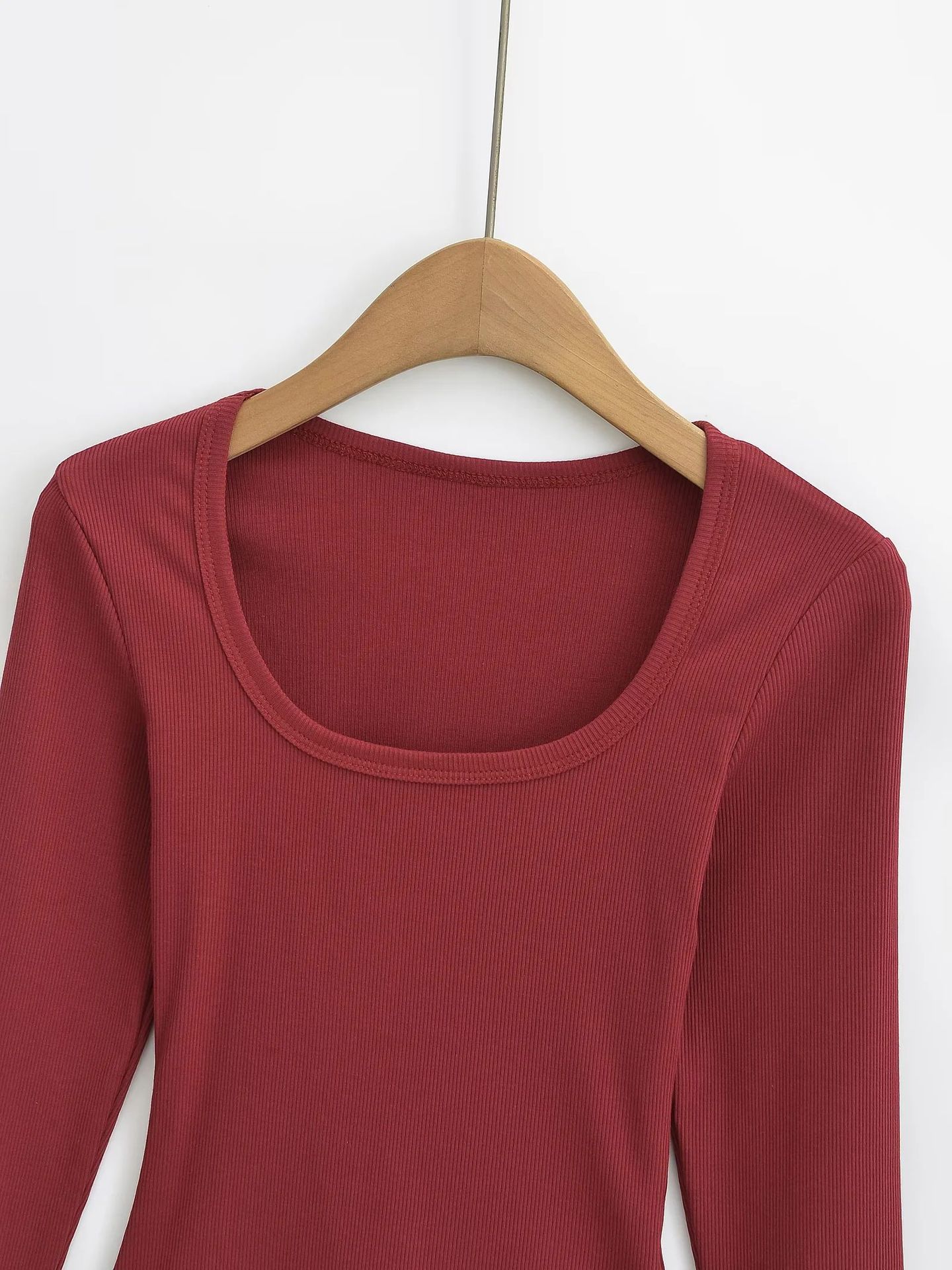Camiseta de manga larga con cuello redondo grande y sexy de las Spice Girls europeas y americanas, otoño e invierno 2024, camiseta de base corta ajustada y elástica alta