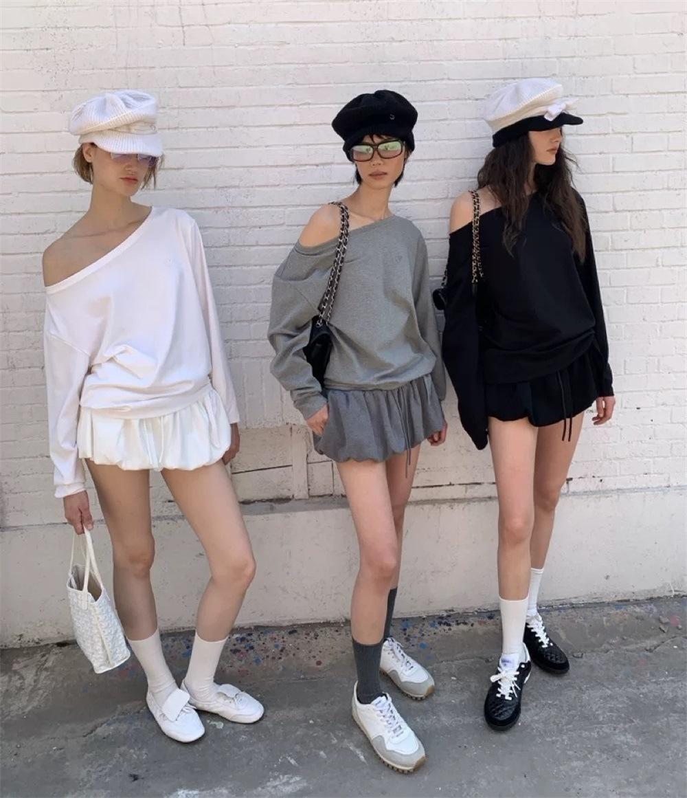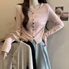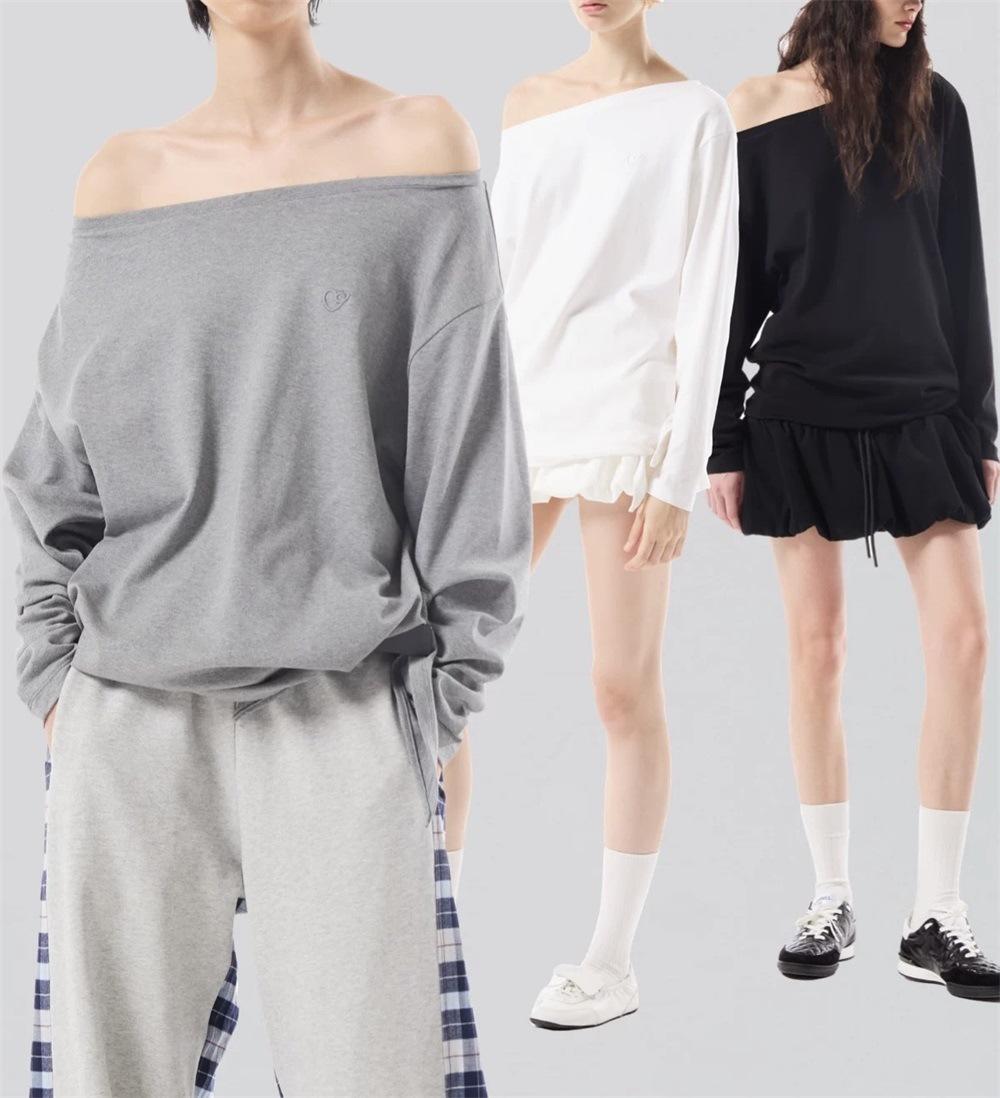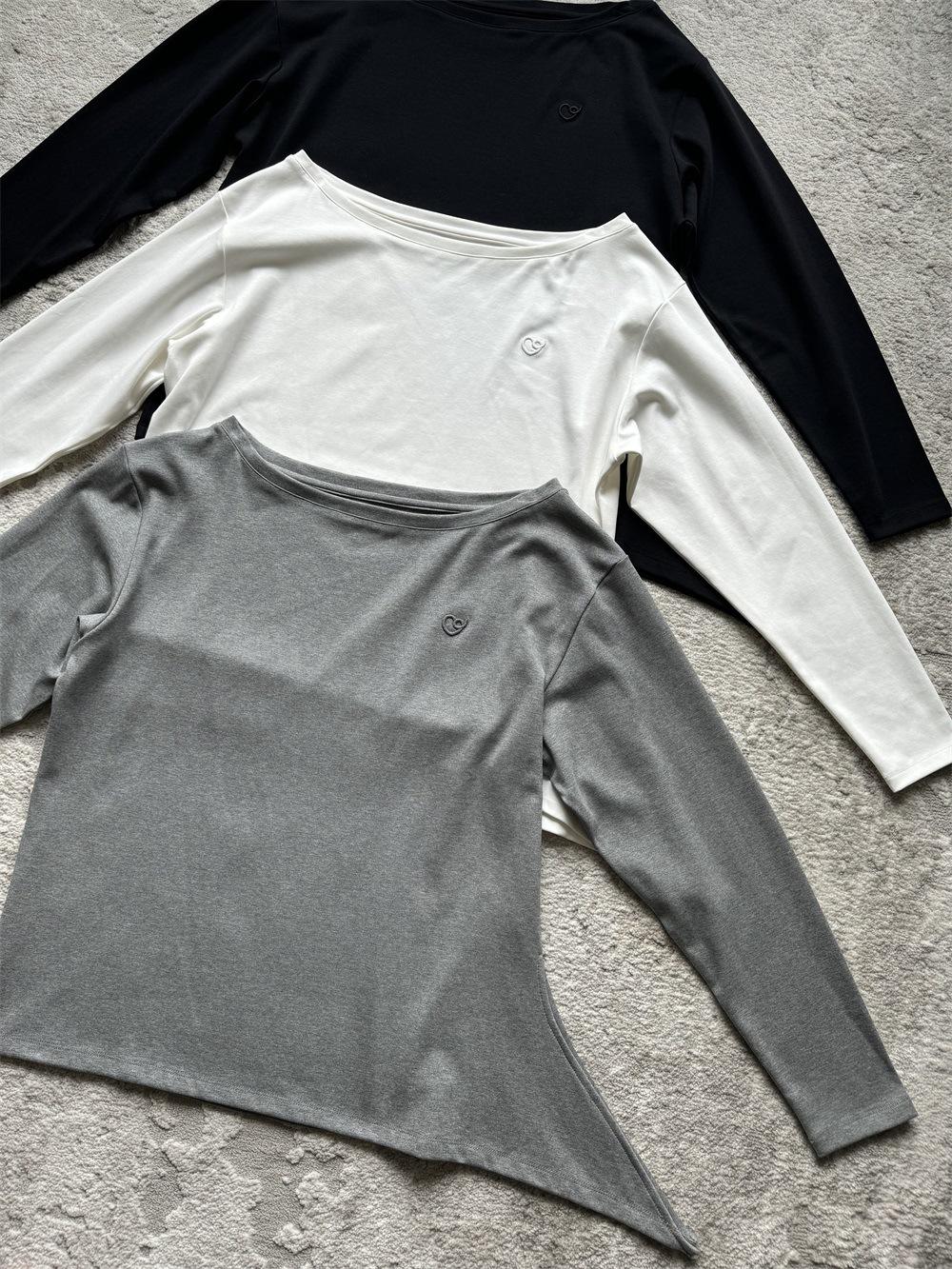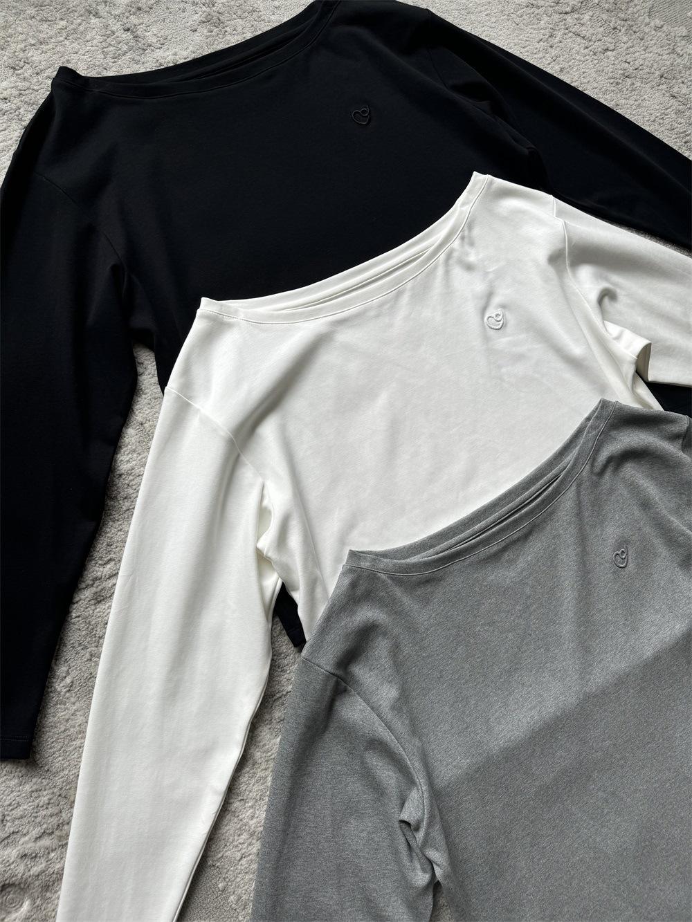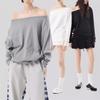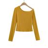 Camiseta holgada de manga larga con cuello de un solo carácter y estilo nudo, top informal con hombros descubiertos para mujer, otoño 2024