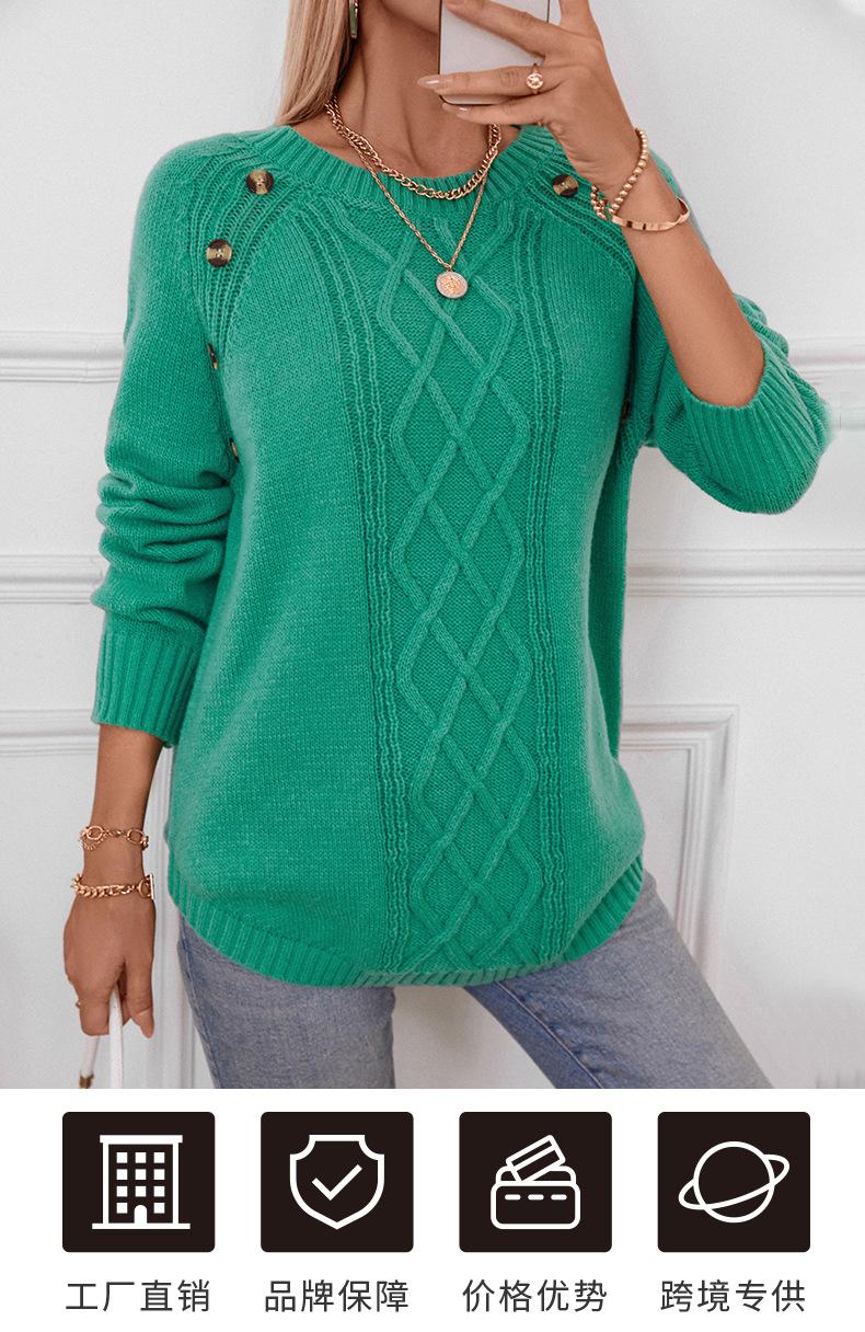Suéter Pulóver para Mujer de Color Sólido con Botones Transfronterizo Europeo y Americano para Otoño e Invierno Retro Holgado Comercio Exterior Suéter Top para Mujer