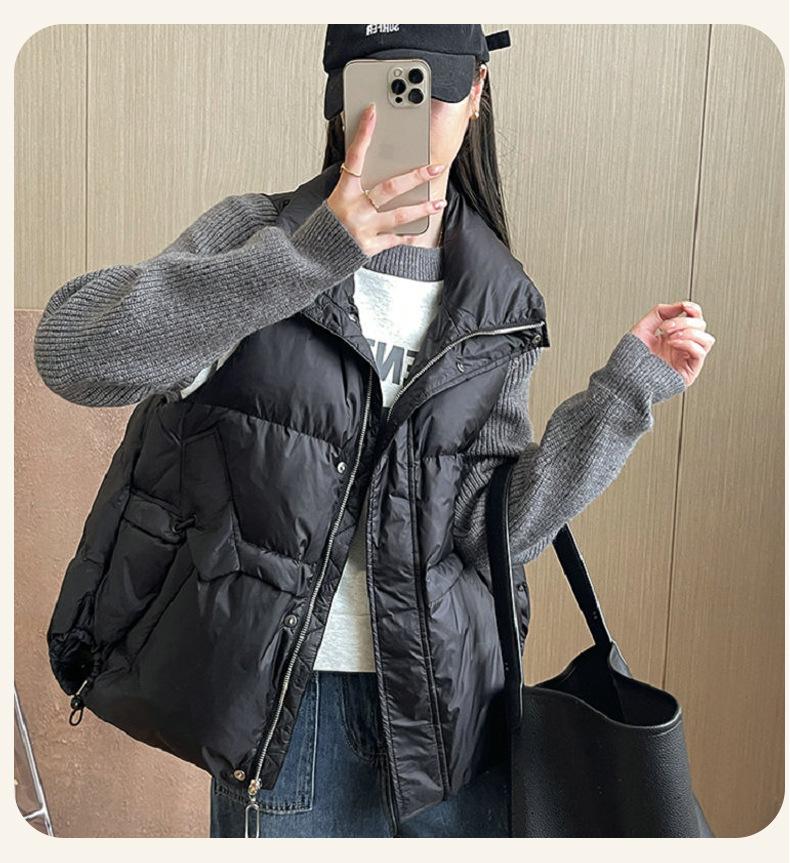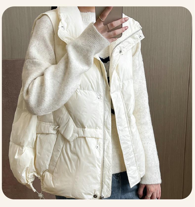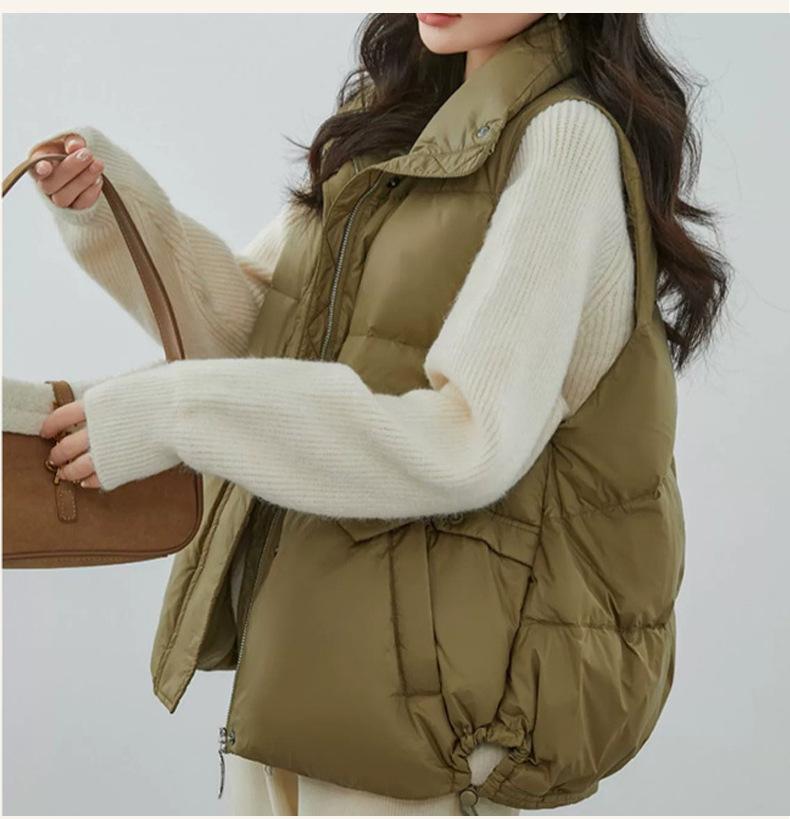 Chaleco de plumón blanco para mujer, chaqueta de plumón corta sin mangas de alta gama para mujer, chaleco, chaqueta, ropa de mujer finayenes55