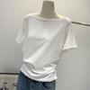 Camiseta de manga corta ajustada, dulce y sexy, para mujer, diseño de verano, cuello cuadrado, cordón ajustable en los hombros, parte superior de base corta