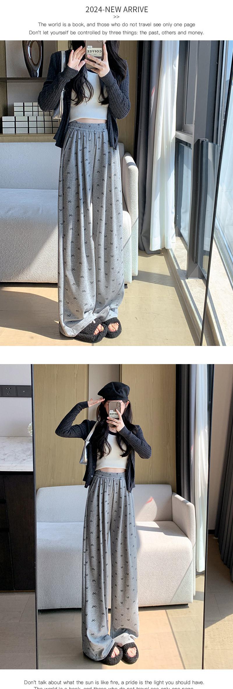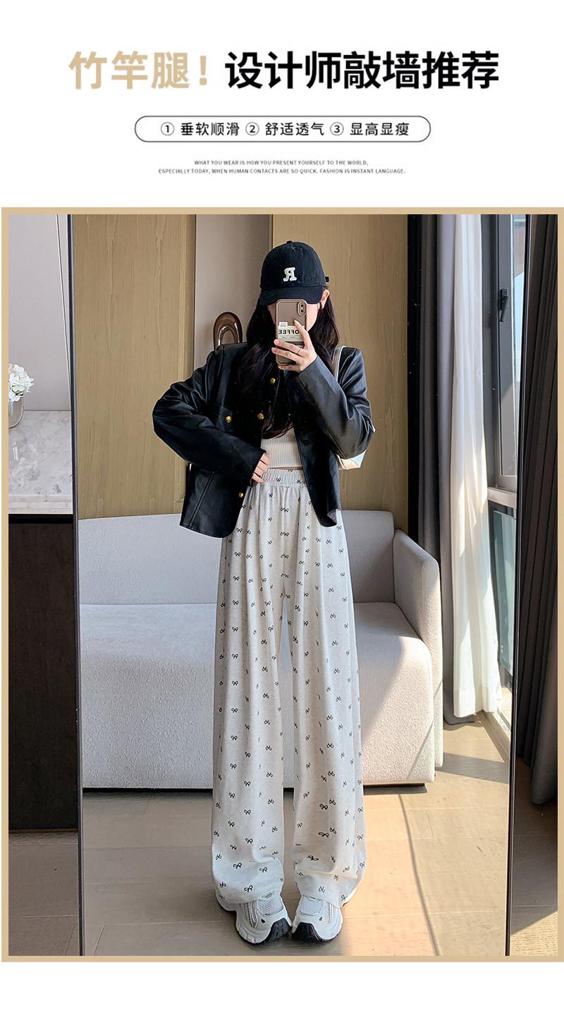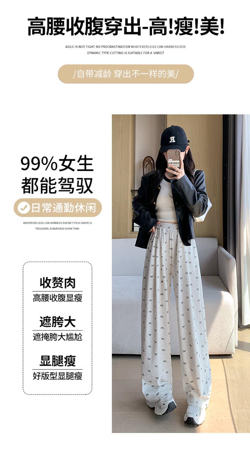Pantalones grises de pierna ancha con lazo para mujer Primavera y Otoño 2025 Nuevo Pantalones deportivos casuales sueltos con caída de cintura alta Pantalones deportivos de pierna recta