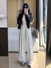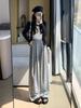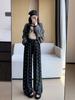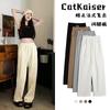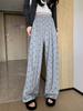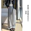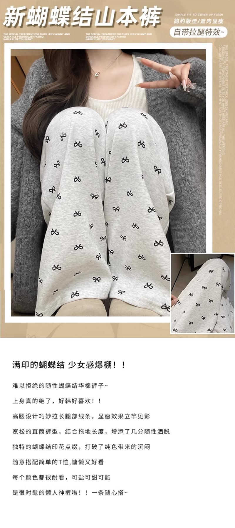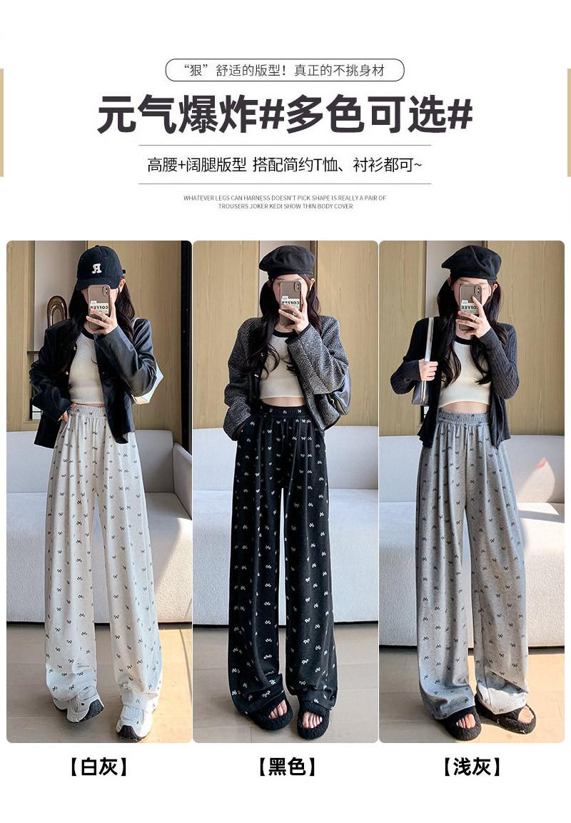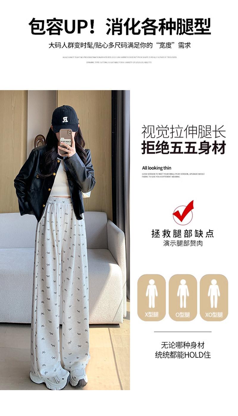 Pantalones grises de pierna ancha con lazo para mujer Primavera y Otoño 2025 Nuevo Pantalones deportivos casuales sueltos con caída de cintura alta Pantalones deportivos de pierna recta