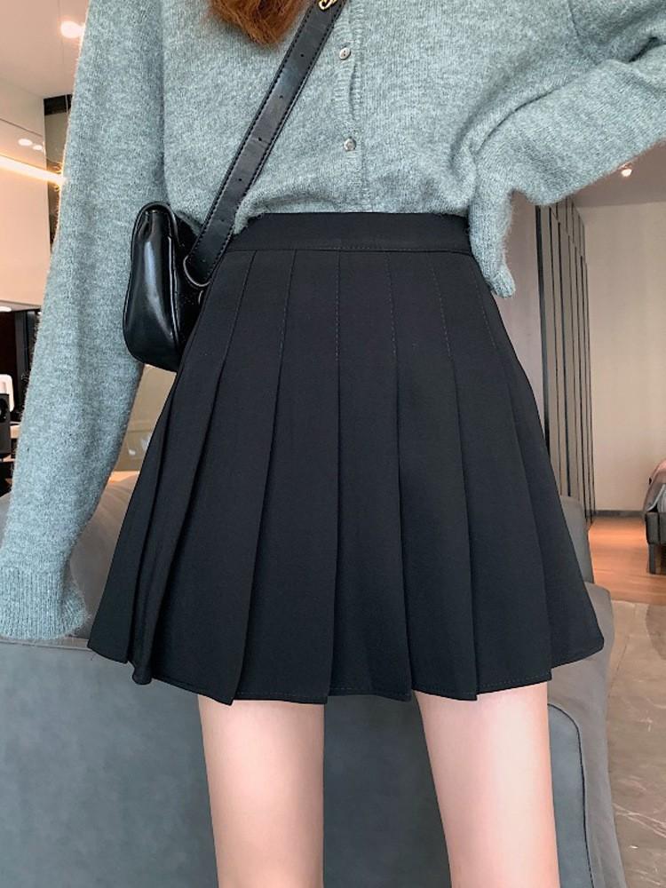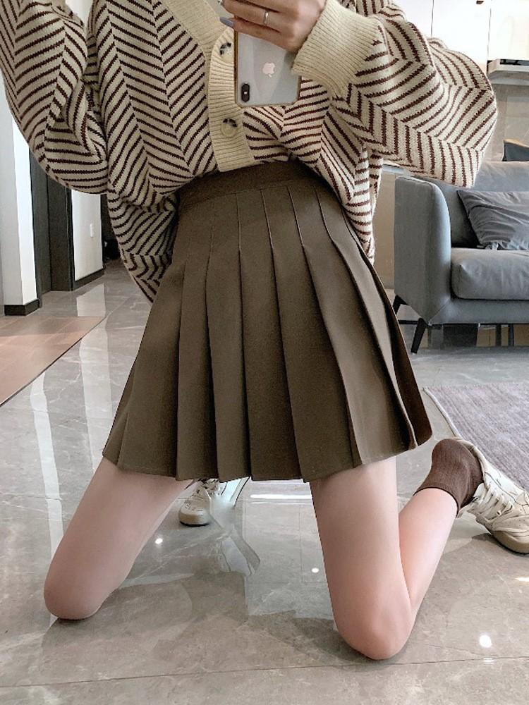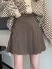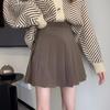Otoño e Invierno 202 Falda Corta Marrón Versátil Línea A para Mujer, Falda de Cintura Alta que Cubre las Caderas, Falda Plisada Slim para Personas Pequeñas