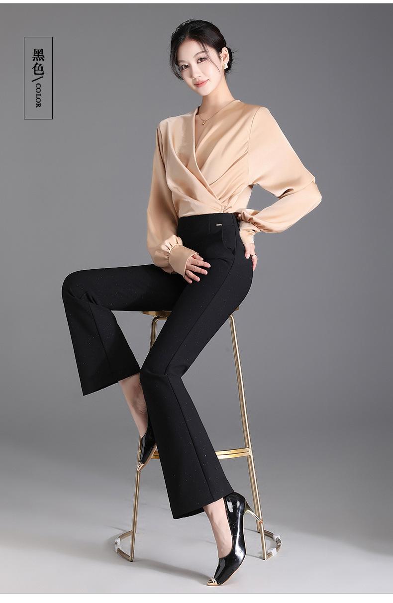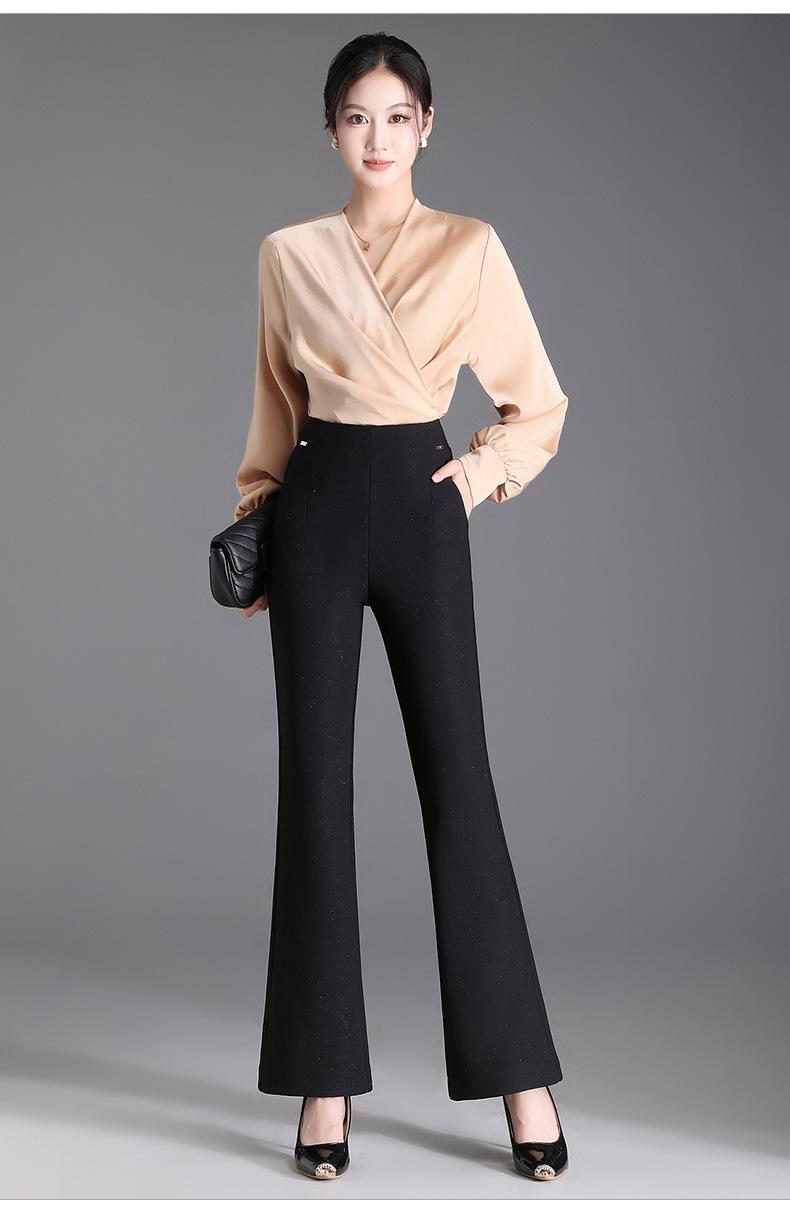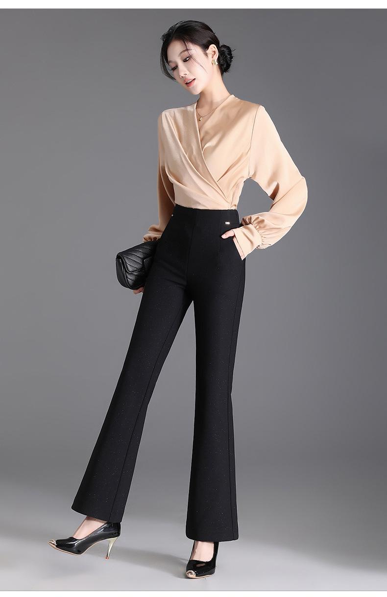 Pantalones de campana negros para mujer, moda de otoño e invierno, ajustados, de cintura alta, elegantes, casuales, para mujer, pantalones ajustados, elásticos, pantalones