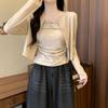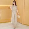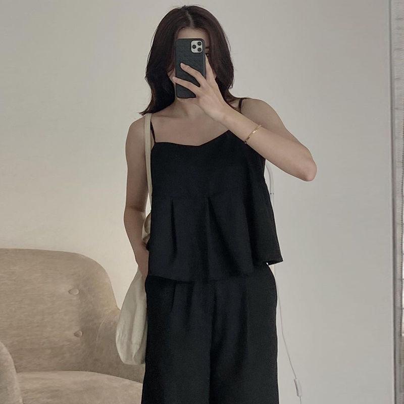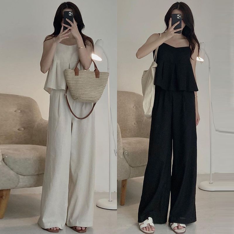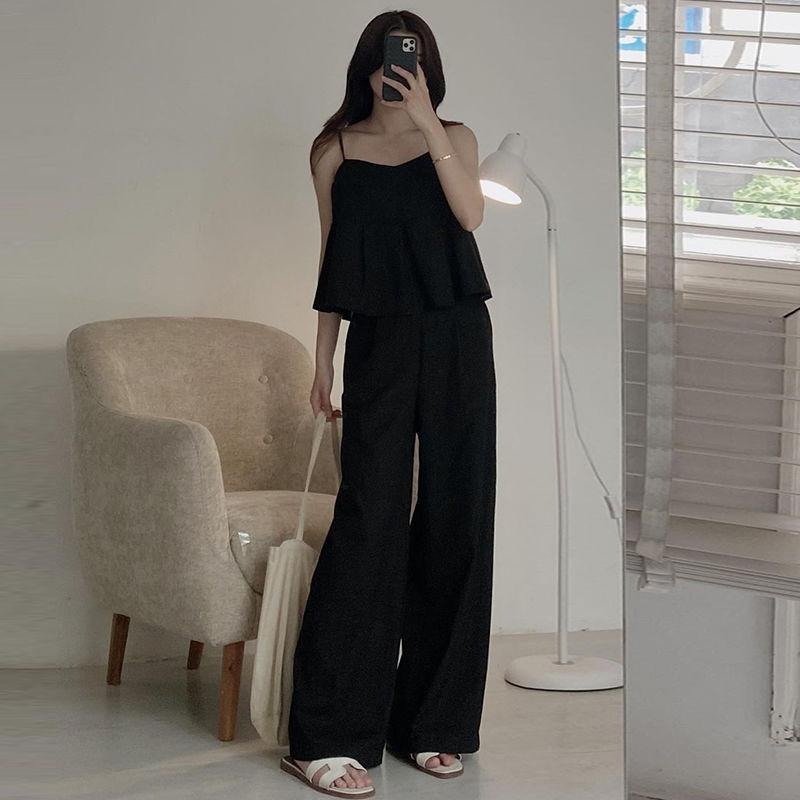 Verano 2025 Francés Casual Cuello Cuadrado Color Sólido Camisola + Cintura Alta Más Fácil de Combinar Pantalones Casuales de Pierna Ancha Conjunto de Dos Piezas a la Moda