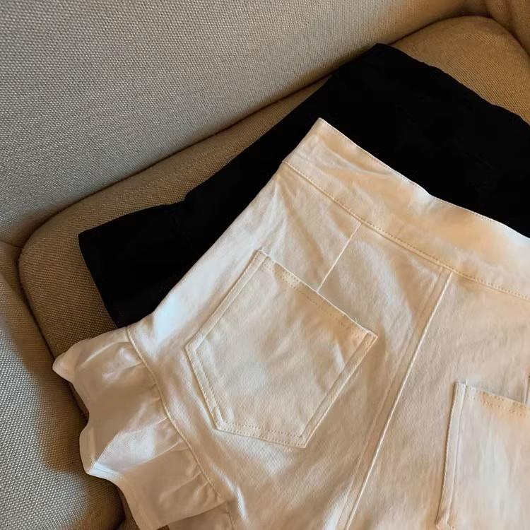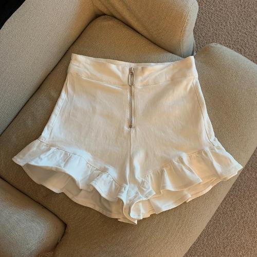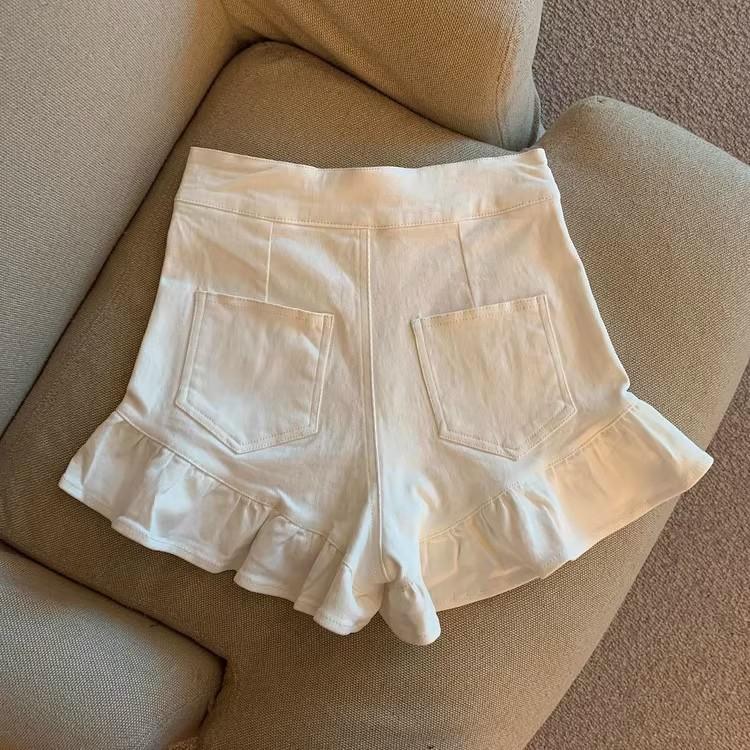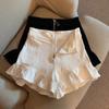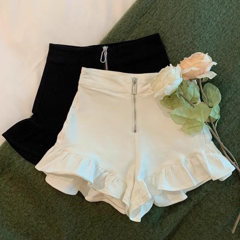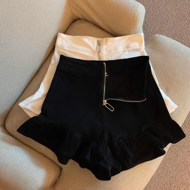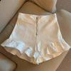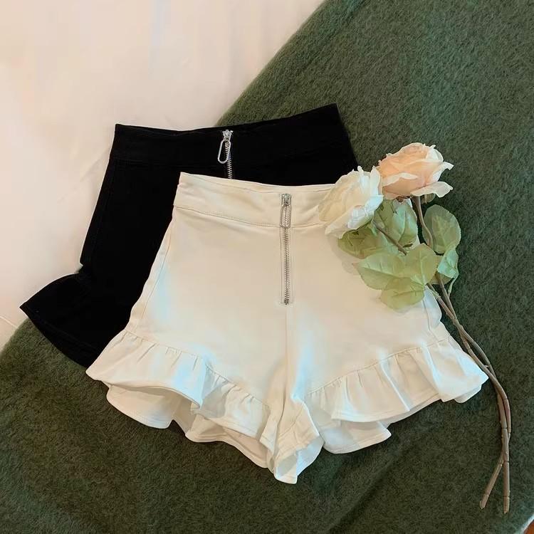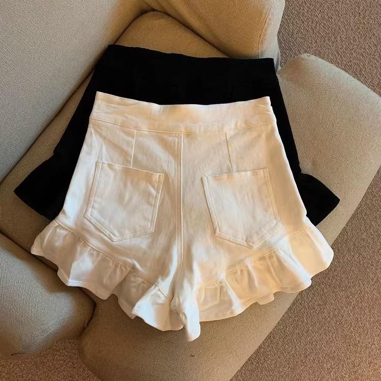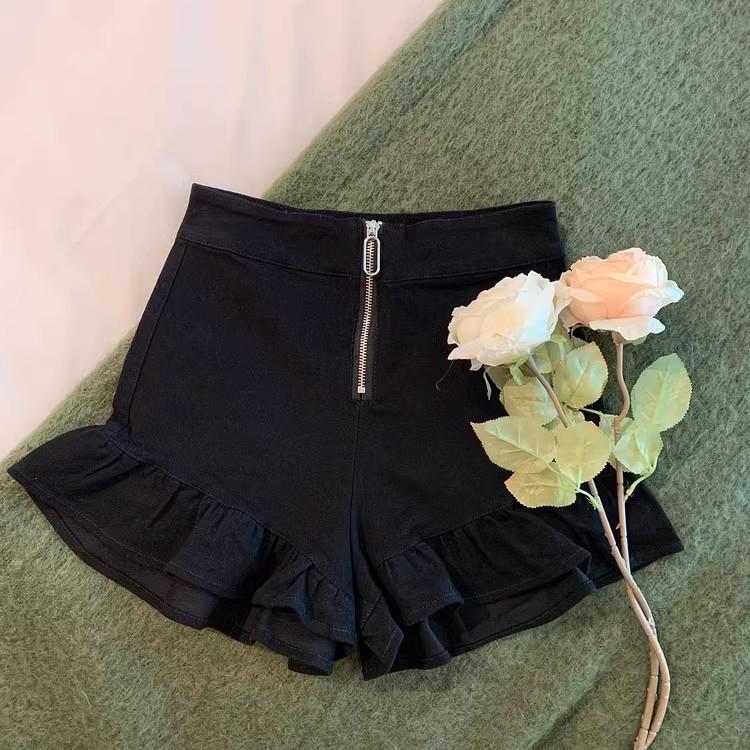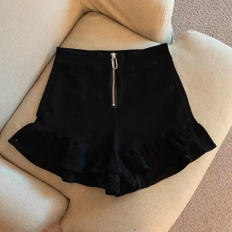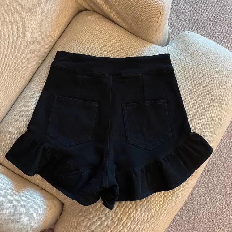Pantalones cortos de pierna ancha con volantes para mujer, tendencia de verano 2024, recién llegados, pantalones cortos casuales negros de cintura alta y ajustados.