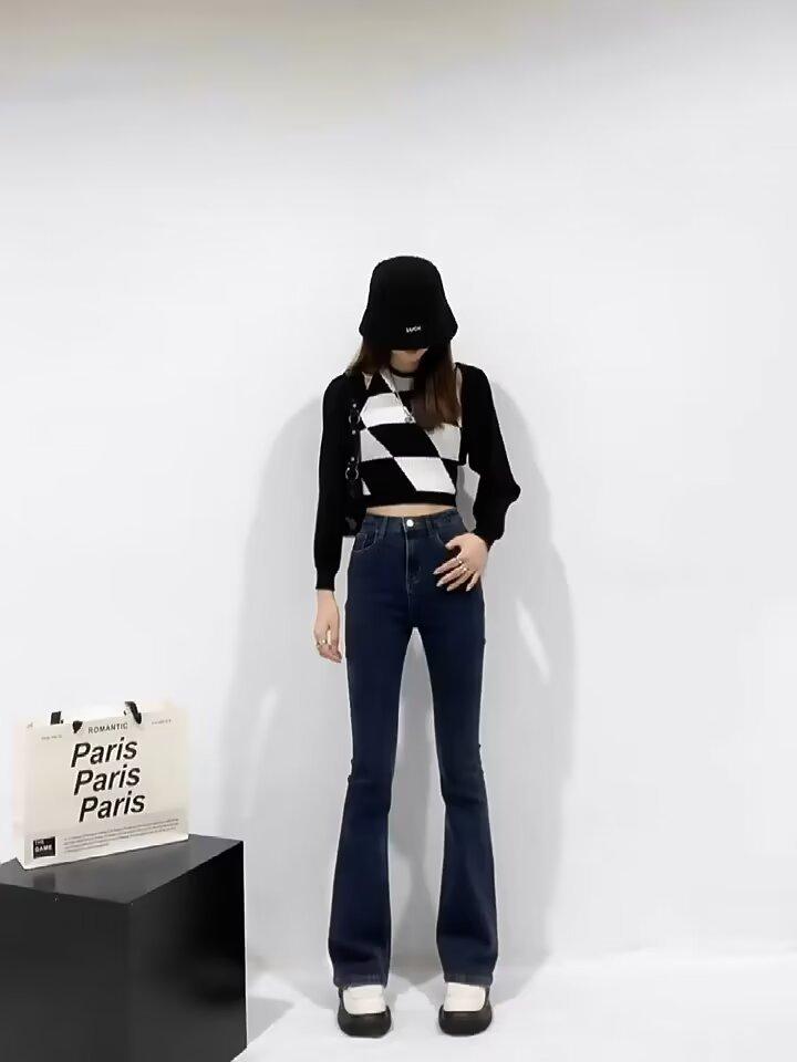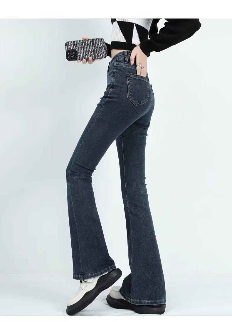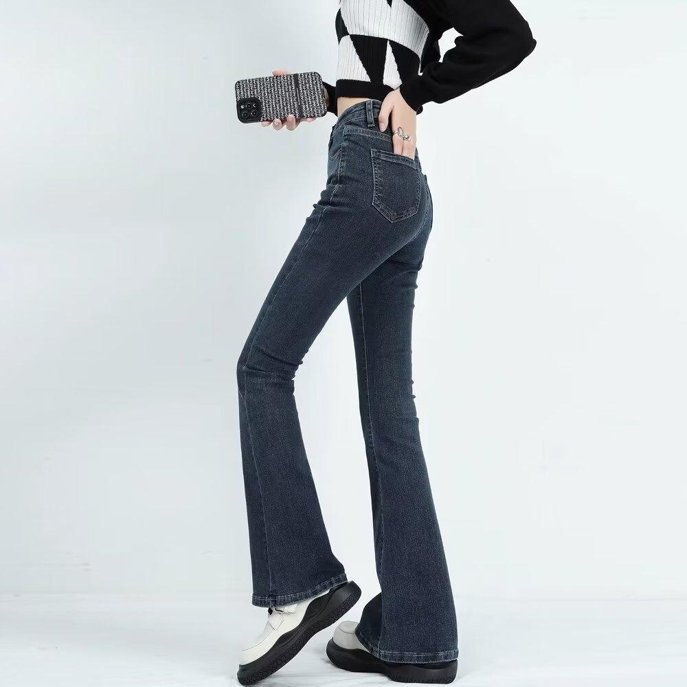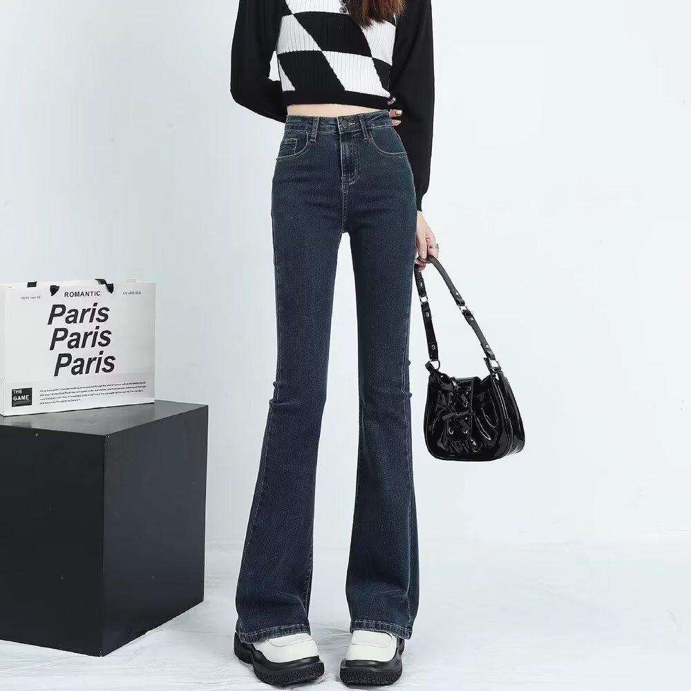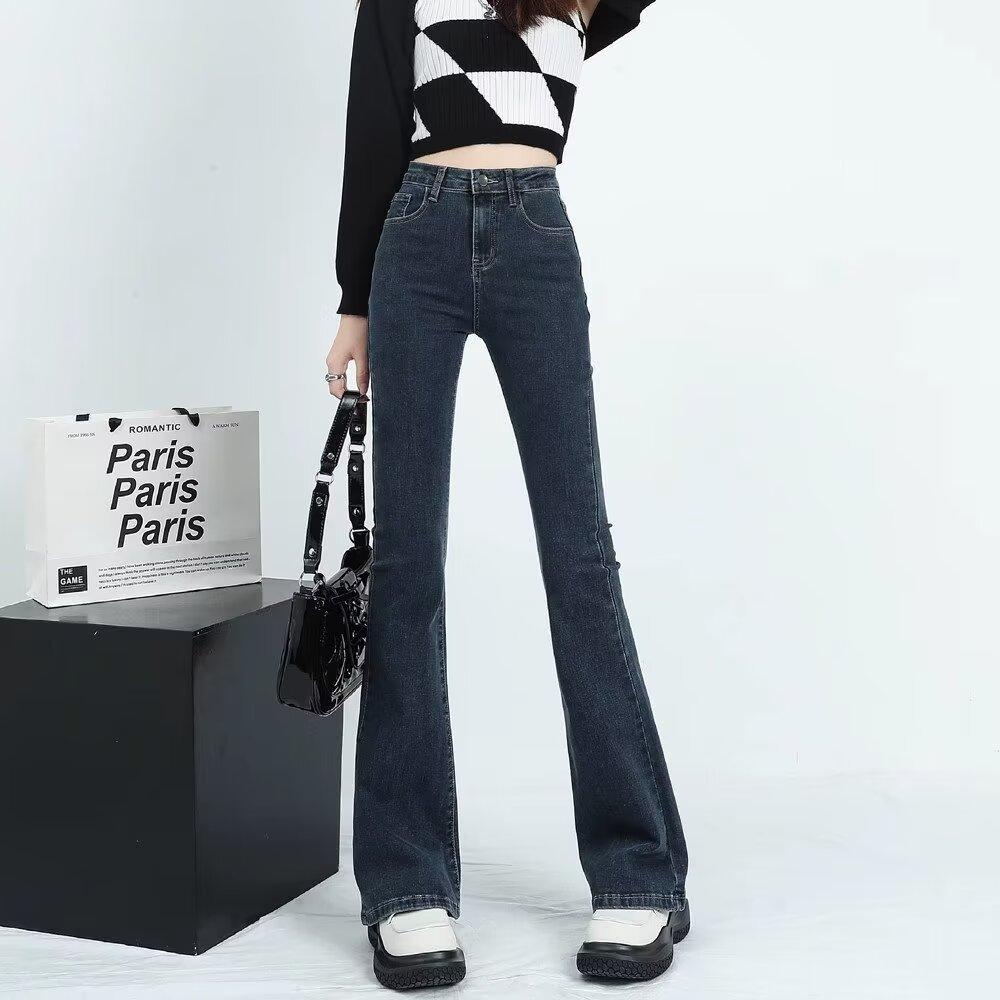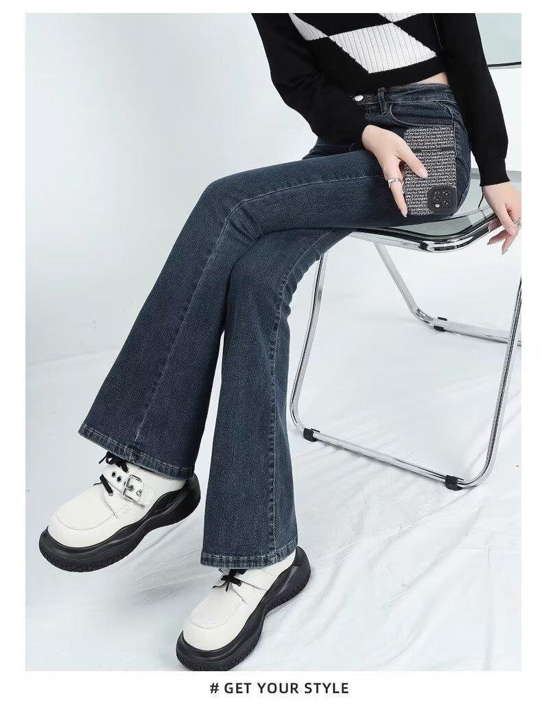 Jeans Casuales Micro Acampanados para Mujer 2024 Nuevo Primavera y Otoño Elásticos Cintura Alta Sueltos Adelgazantes Jeans Herradura