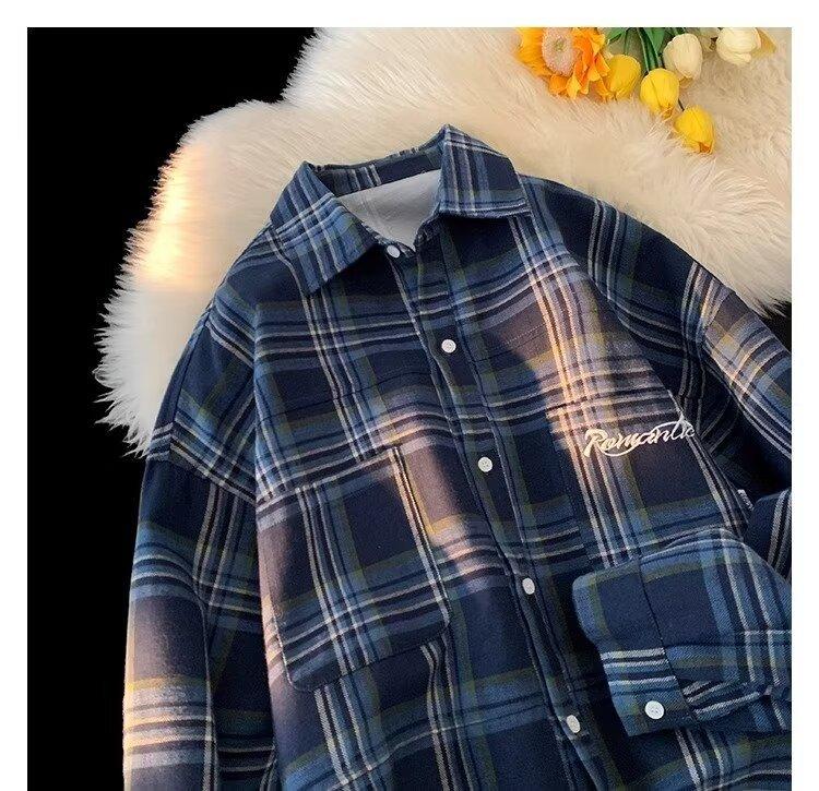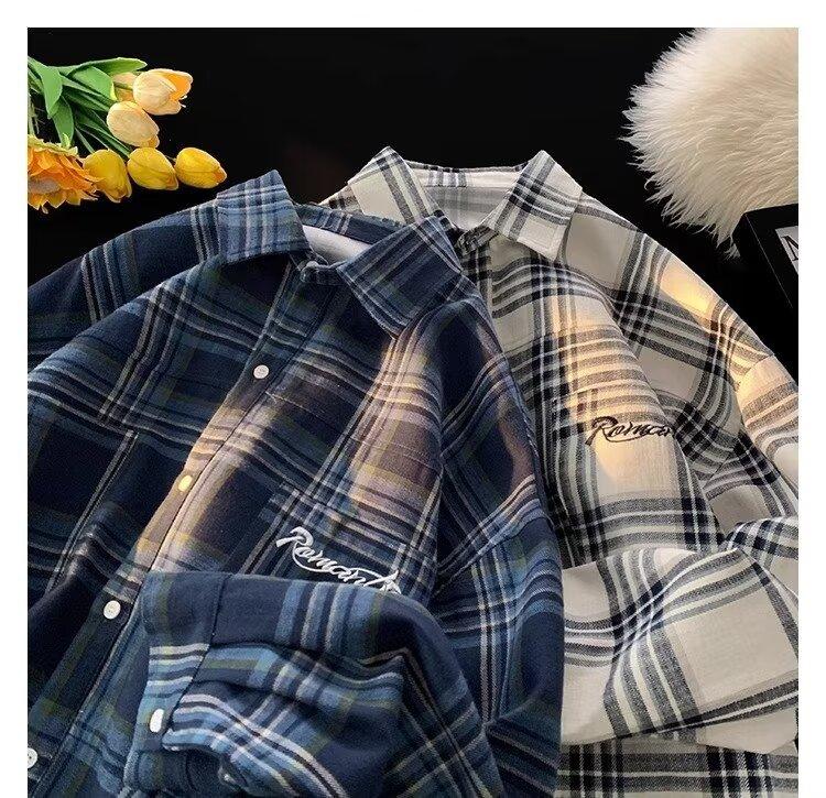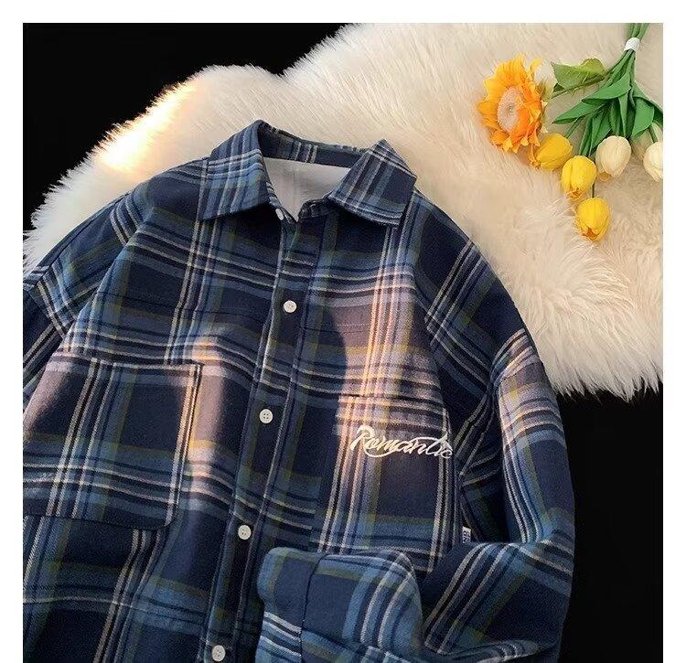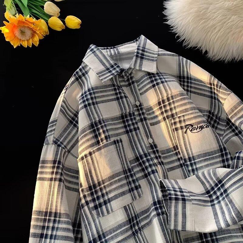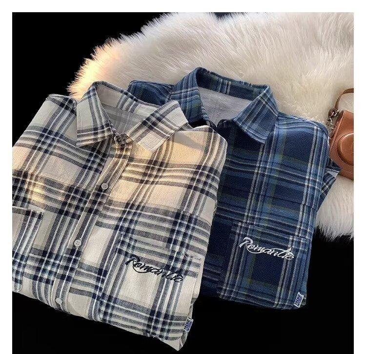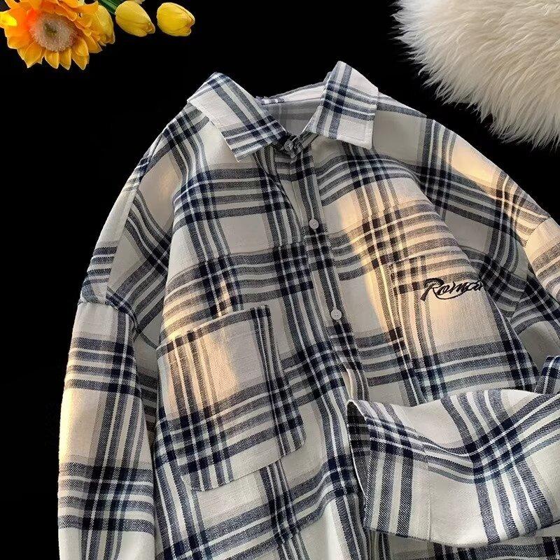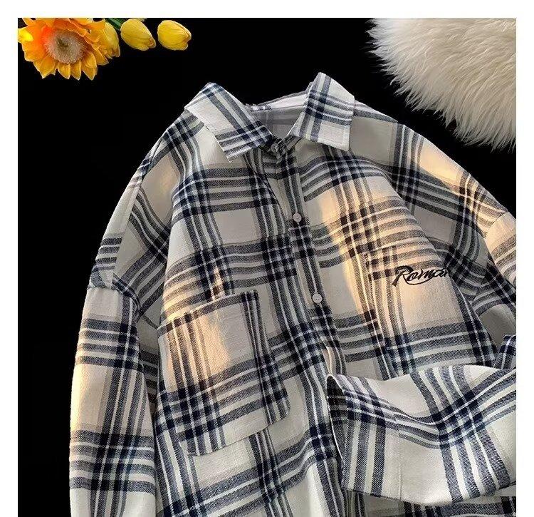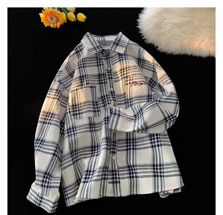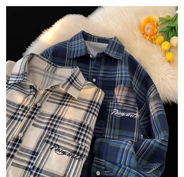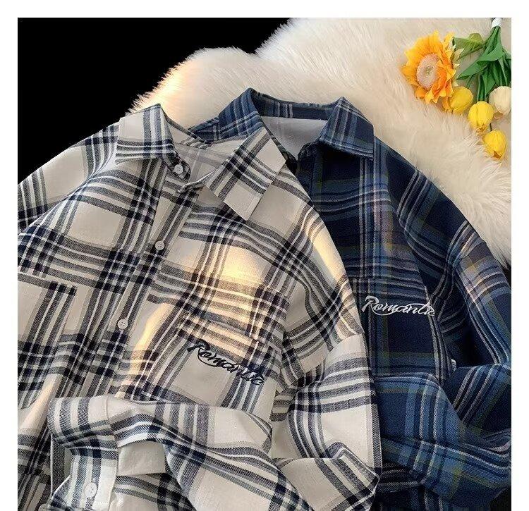 Camisa de Manga Larga con Letras 2024 Estilo Japonés Estilo Hong Kong Camisa Holgada Ins Chaqueta Casual Veraniega de Moda para Hombre y Mujer