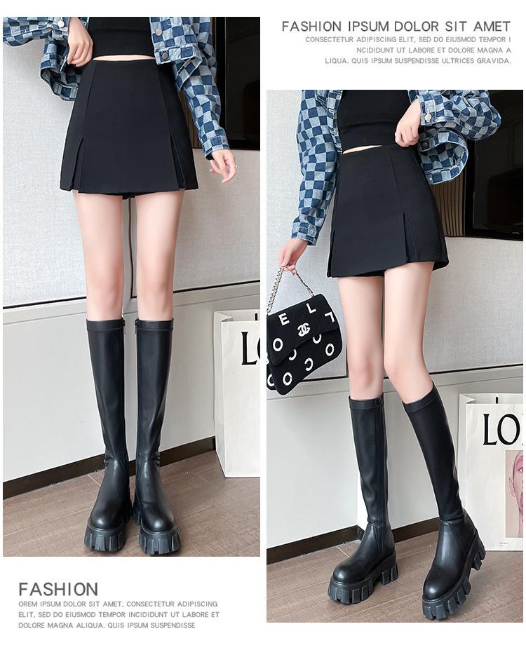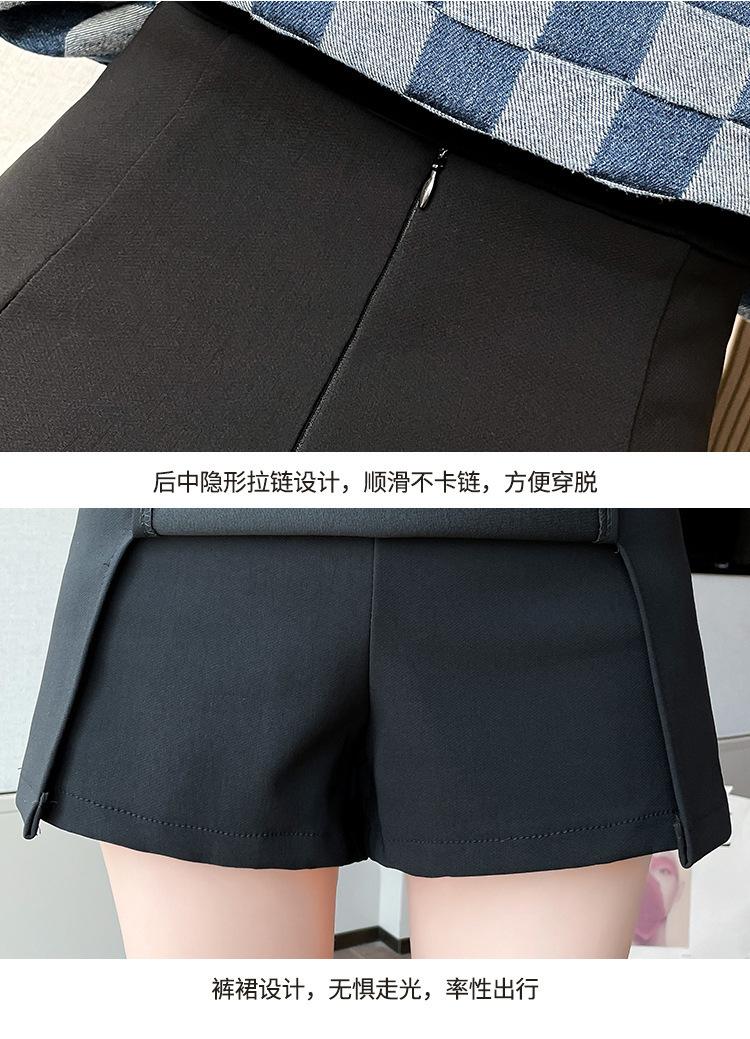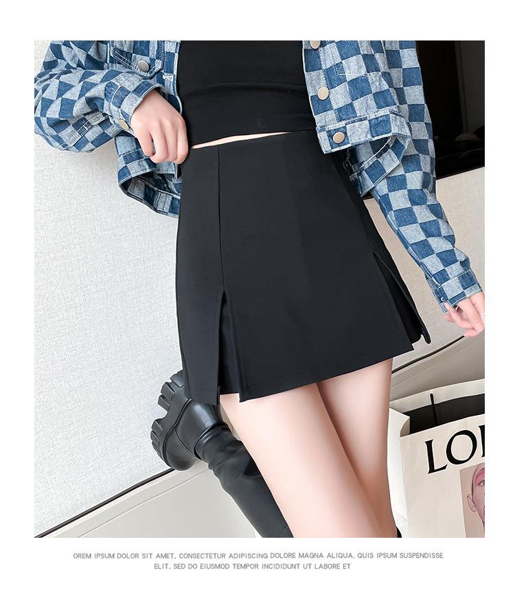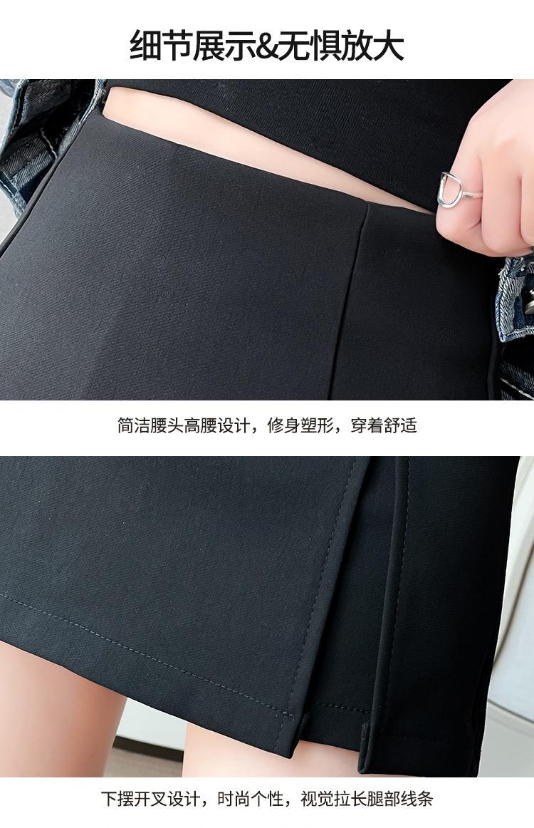 Falda Negra Versátil de Primavera y Verano Pantalones Cortos con Abertura para Mujer 2024 Nueva Moda Cintura Alta Ajustada Línea A Falda Corta