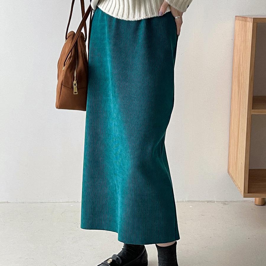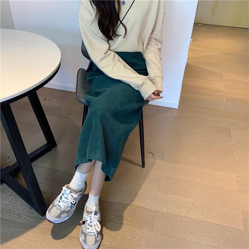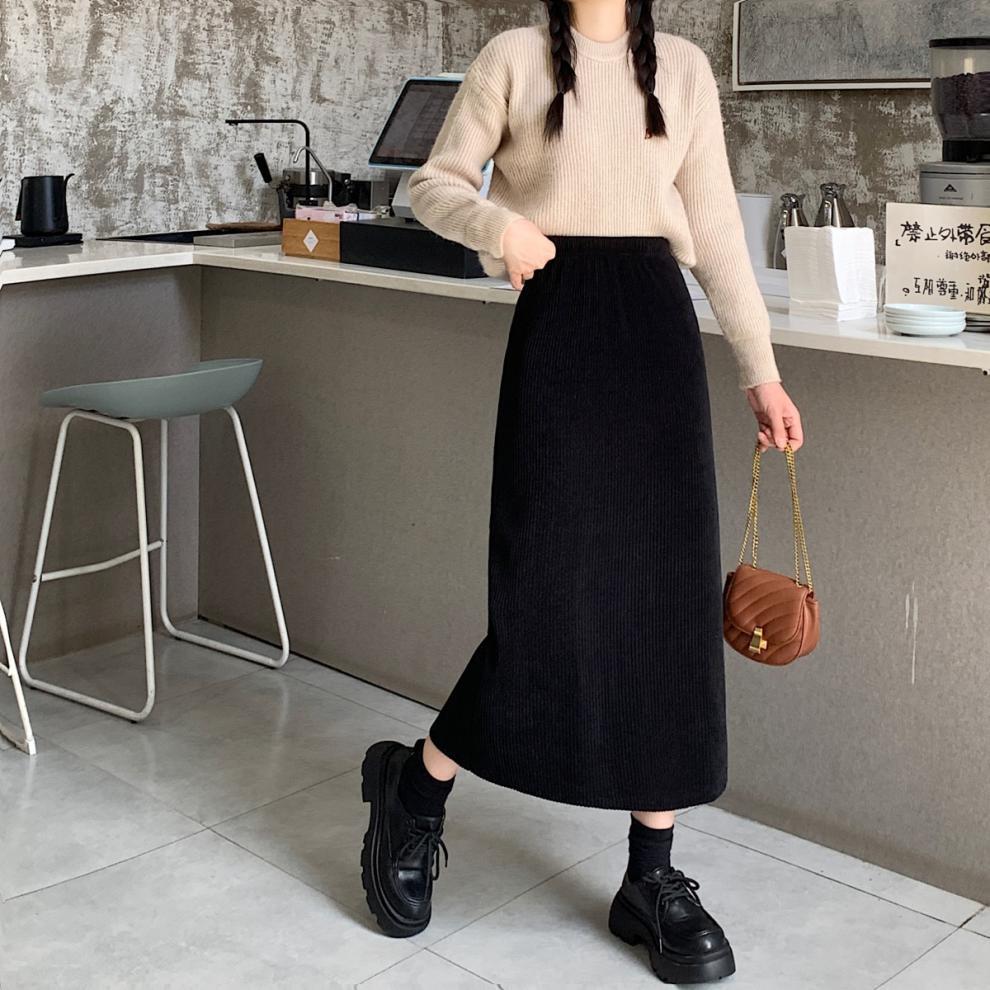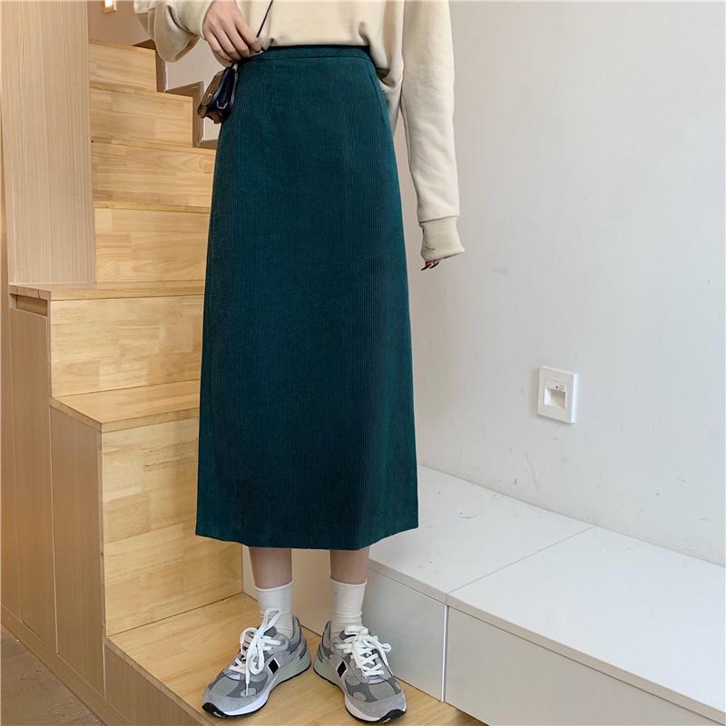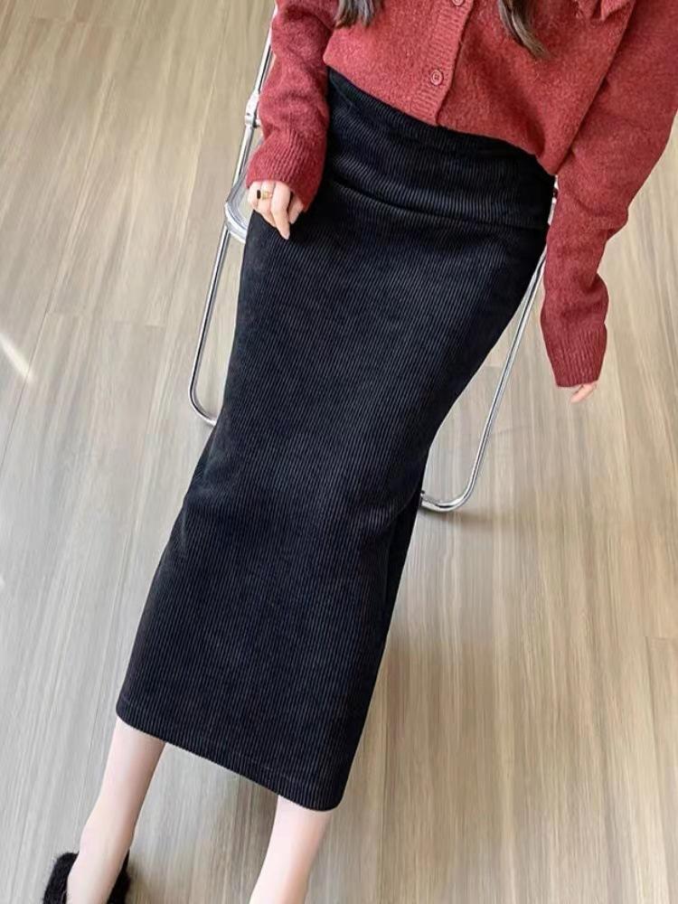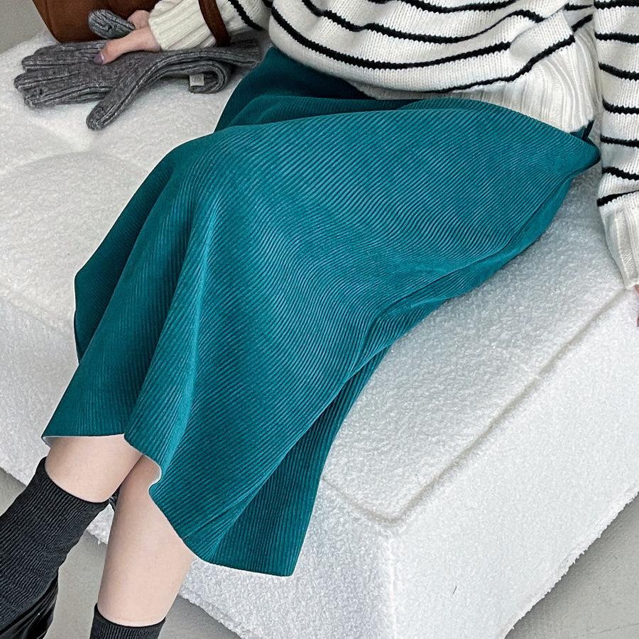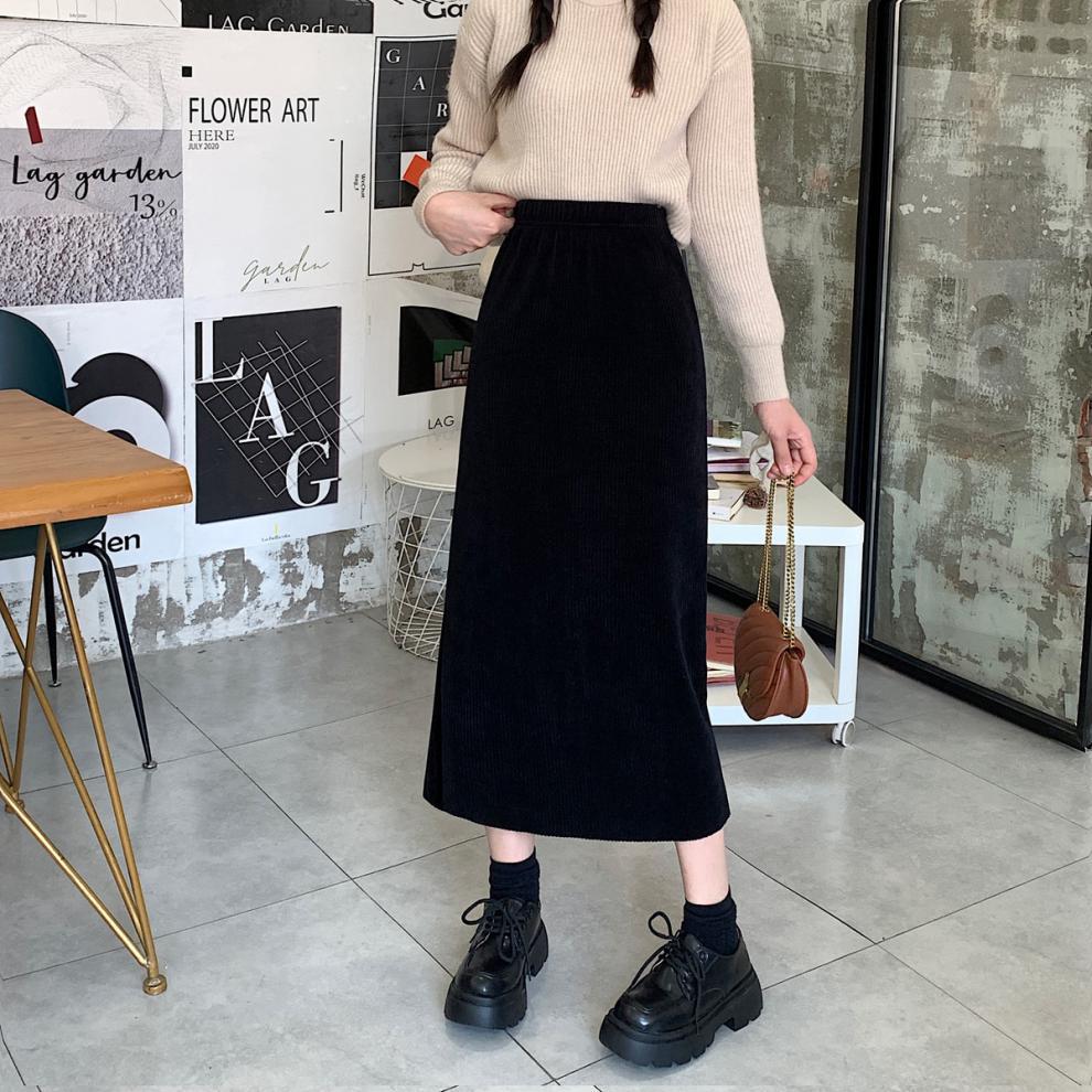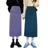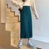 Falda de pana gruesa de otoño e invierno, cintura alta, adelgazante, elástica, con abertura en la cadera, línea A, longitud media, de un solo paso.