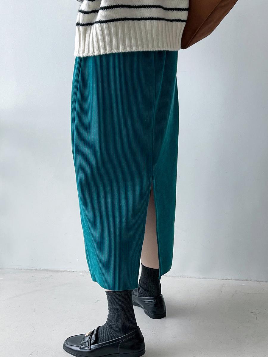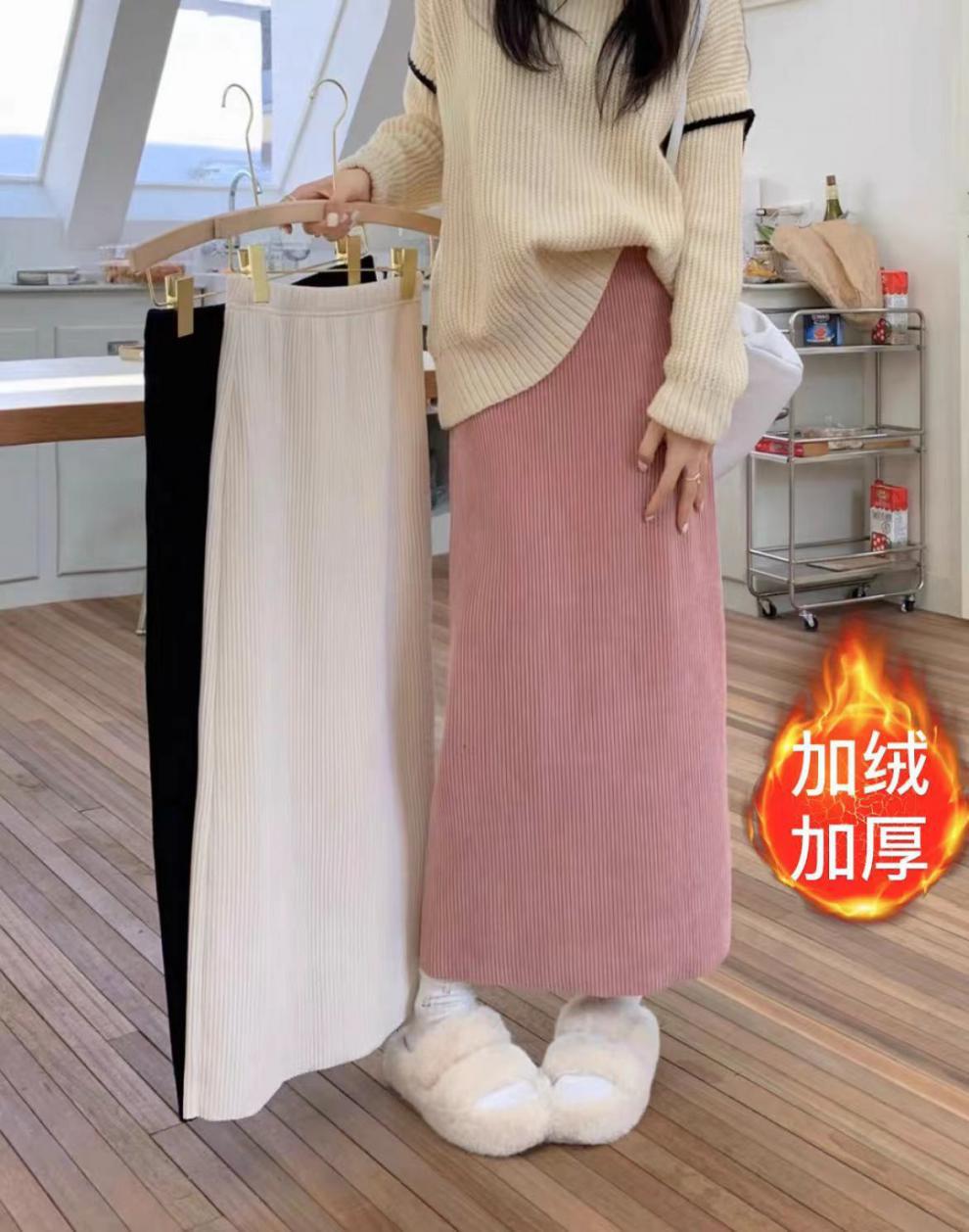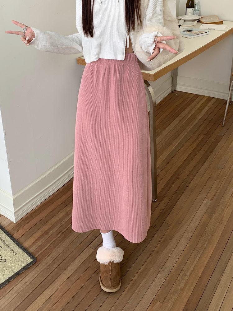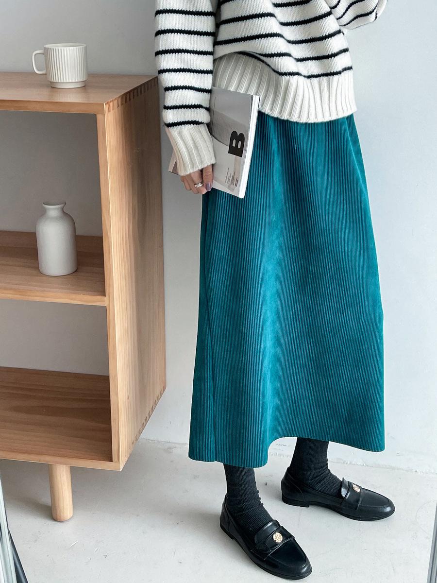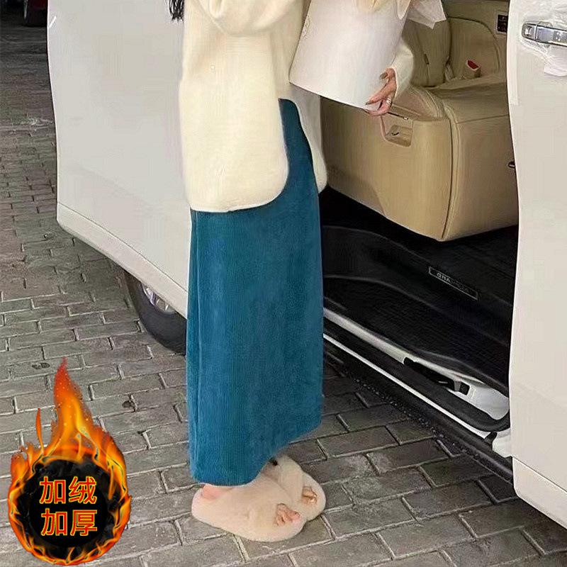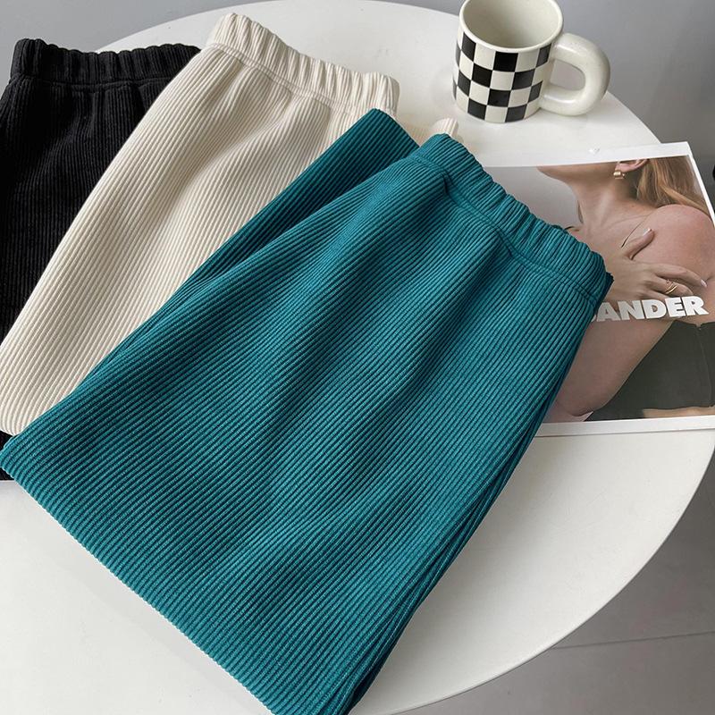 Falda de pana gruesa de otoño e invierno, cintura alta, adelgazante, elástica, con abertura en la cadera, línea A, longitud media, de un solo paso.