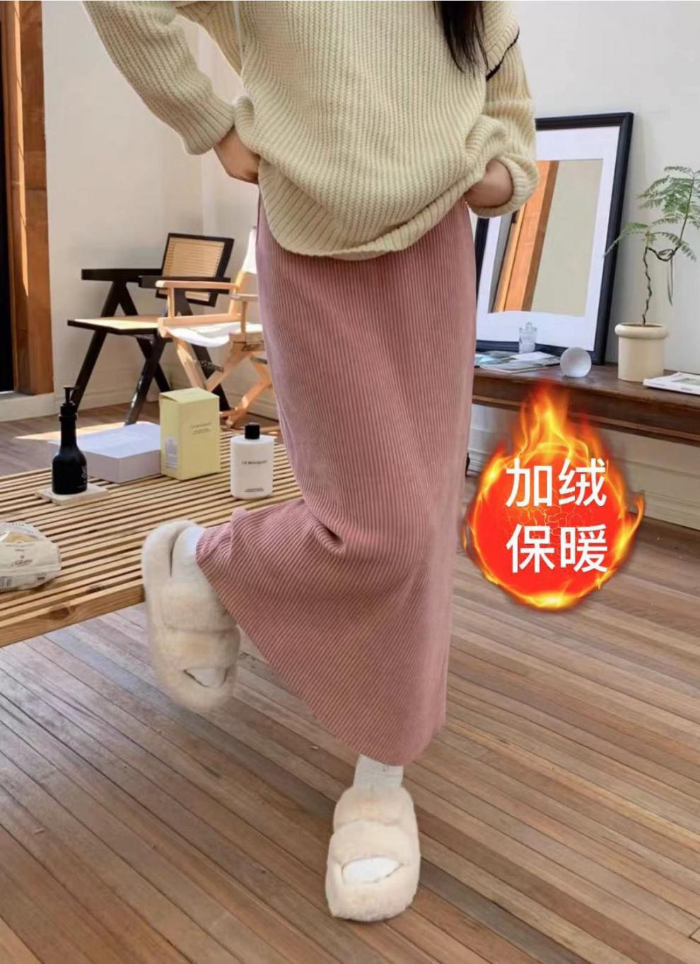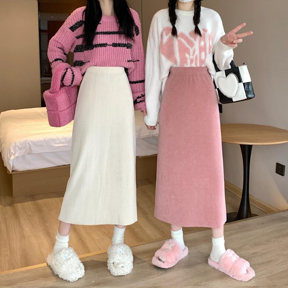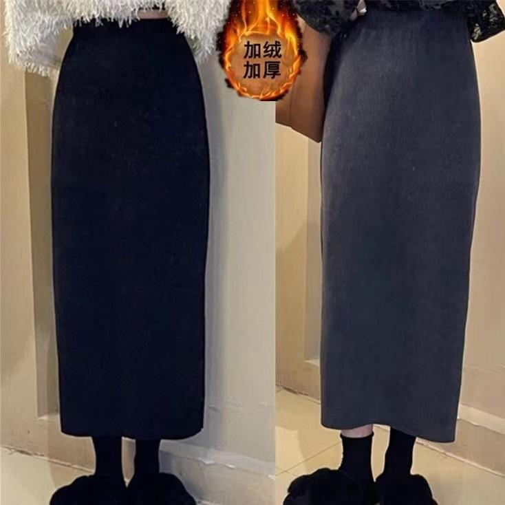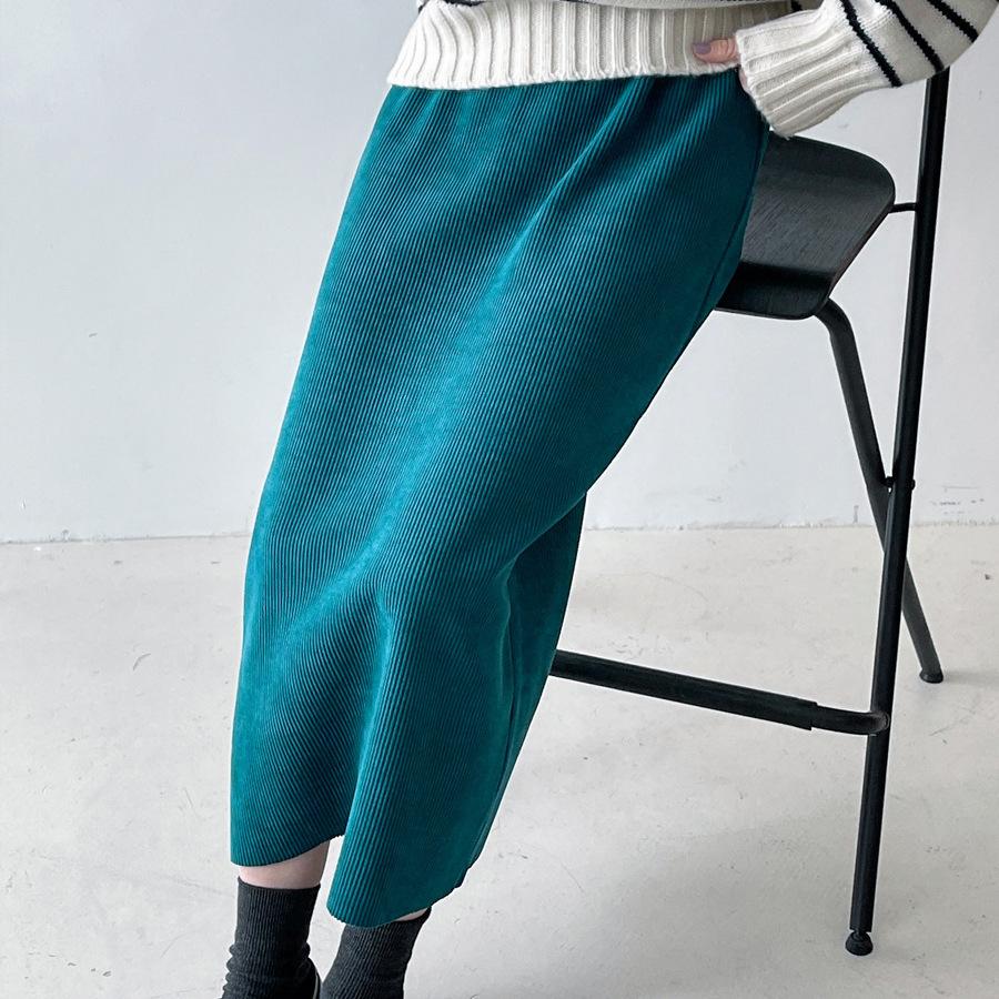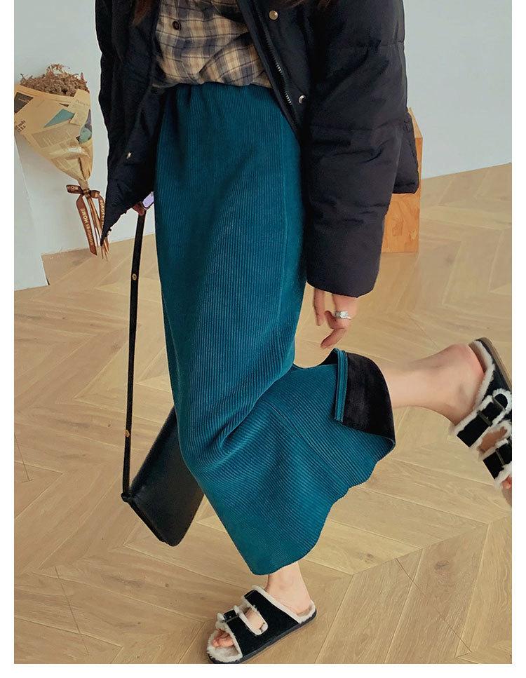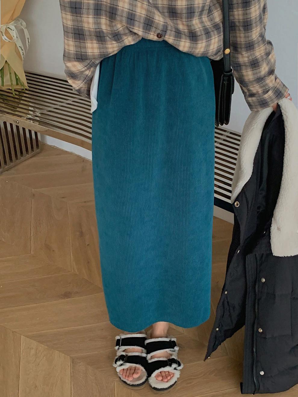 Falda de pana gruesa de otoño e invierno, cintura alta, adelgazante, elástica, con abertura en la cadera, línea A, longitud media, de un solo paso.