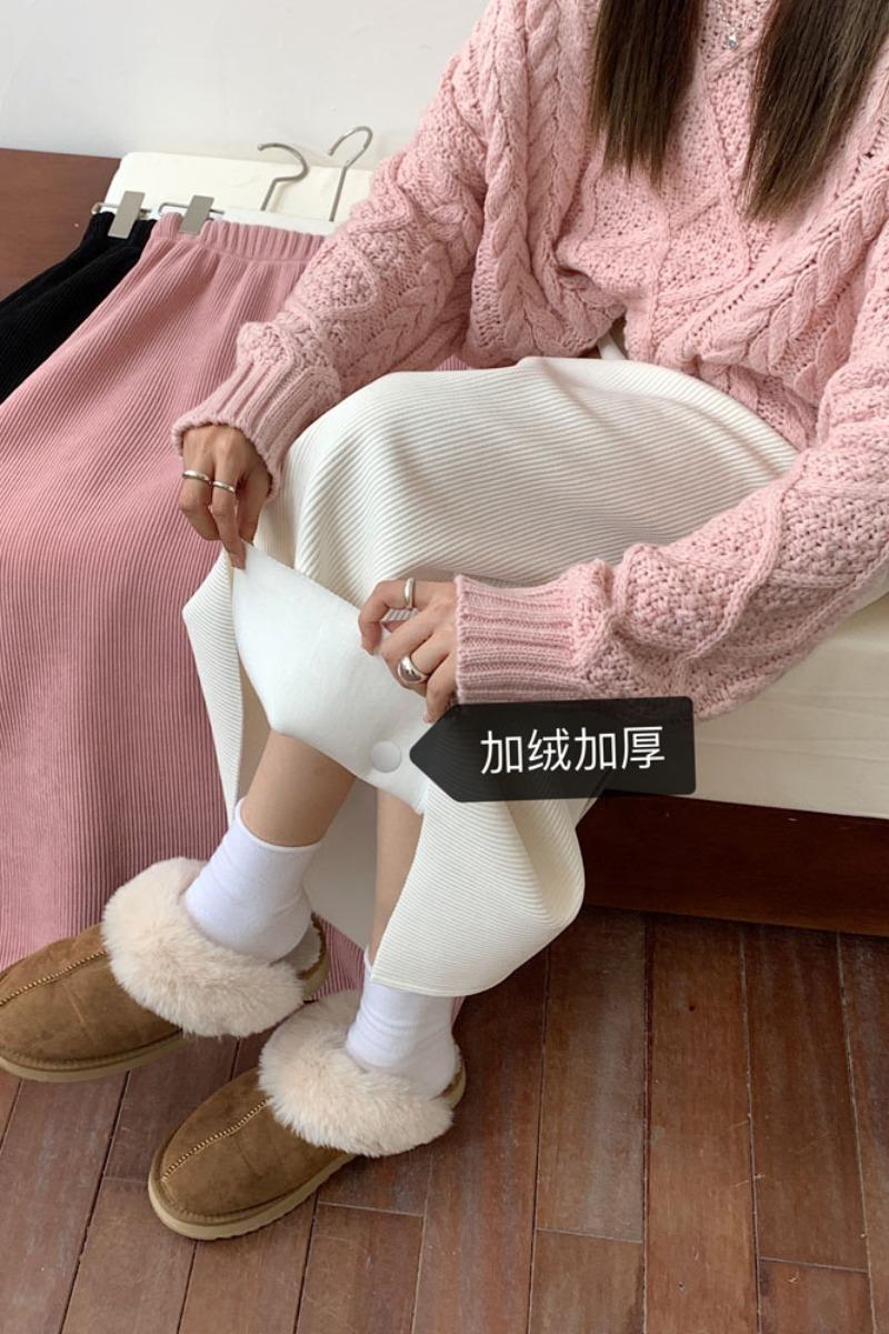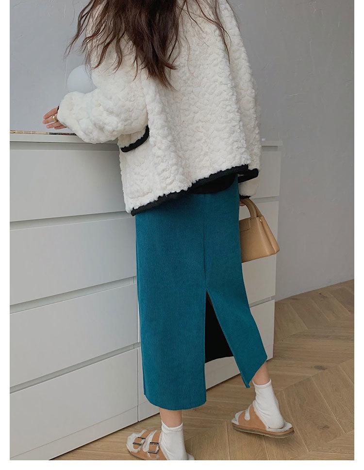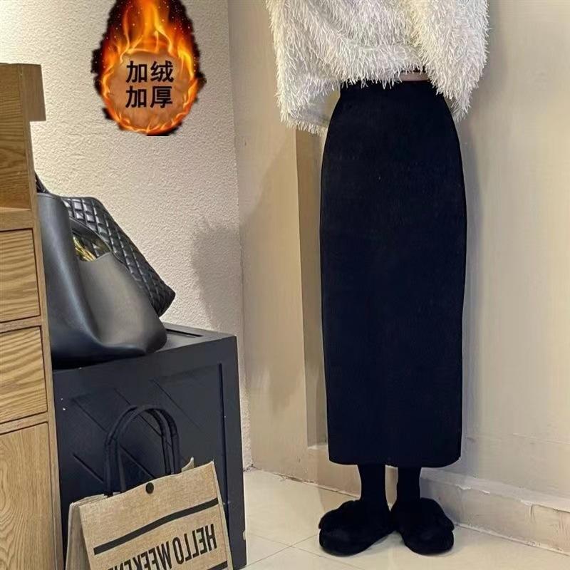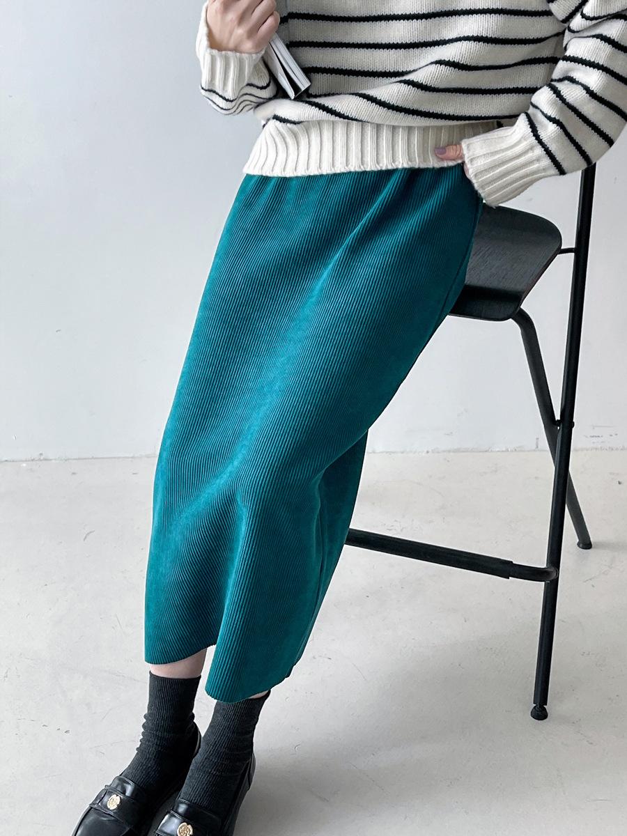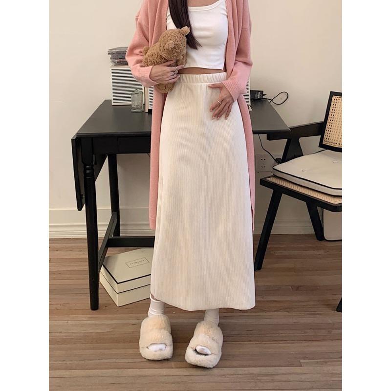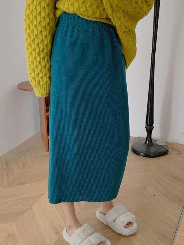 Falda de pana gruesa de otoño e invierno, cintura alta, adelgazante, elástica, con abertura en la cadera, línea A, longitud media, de un solo paso.