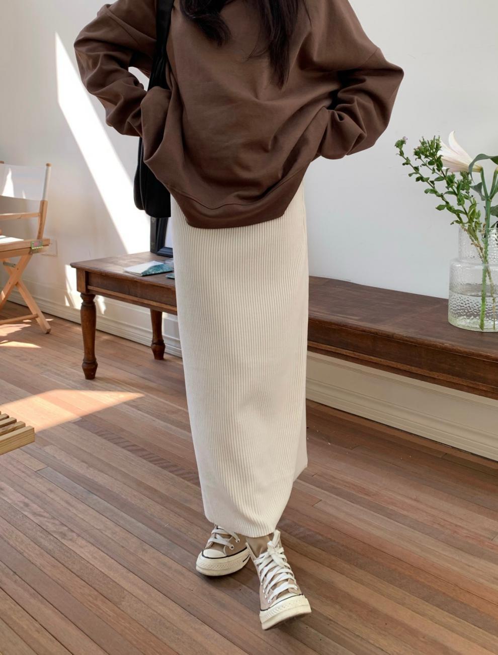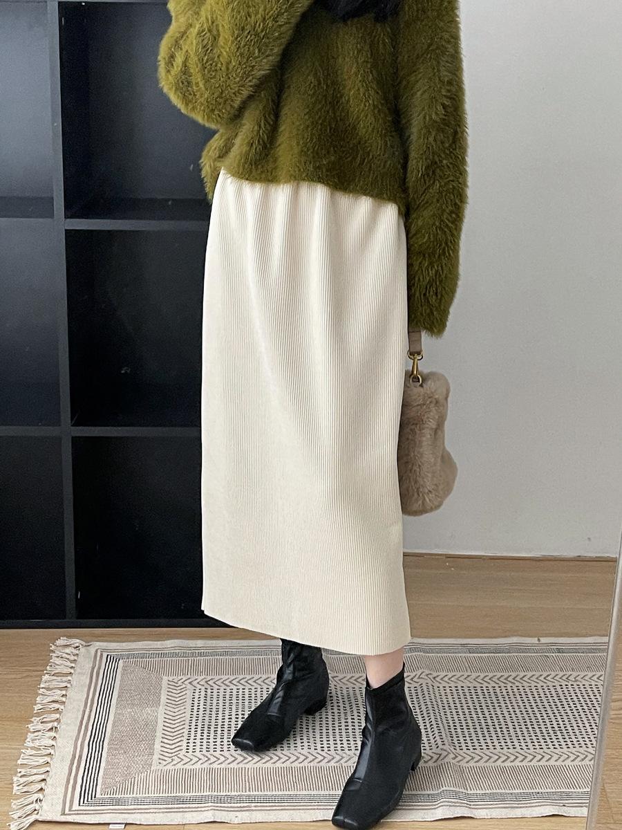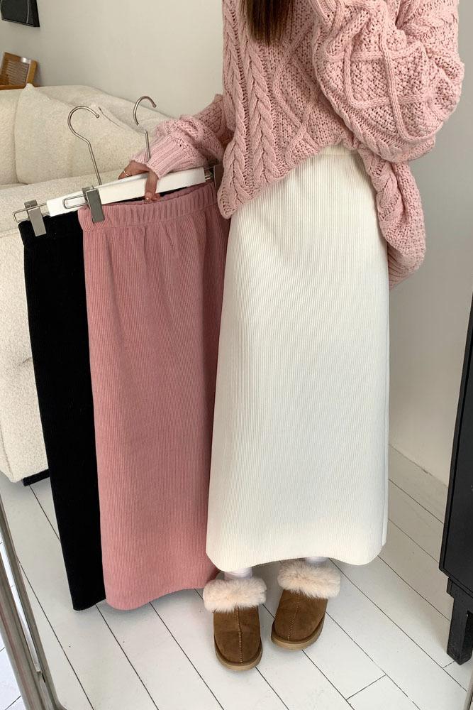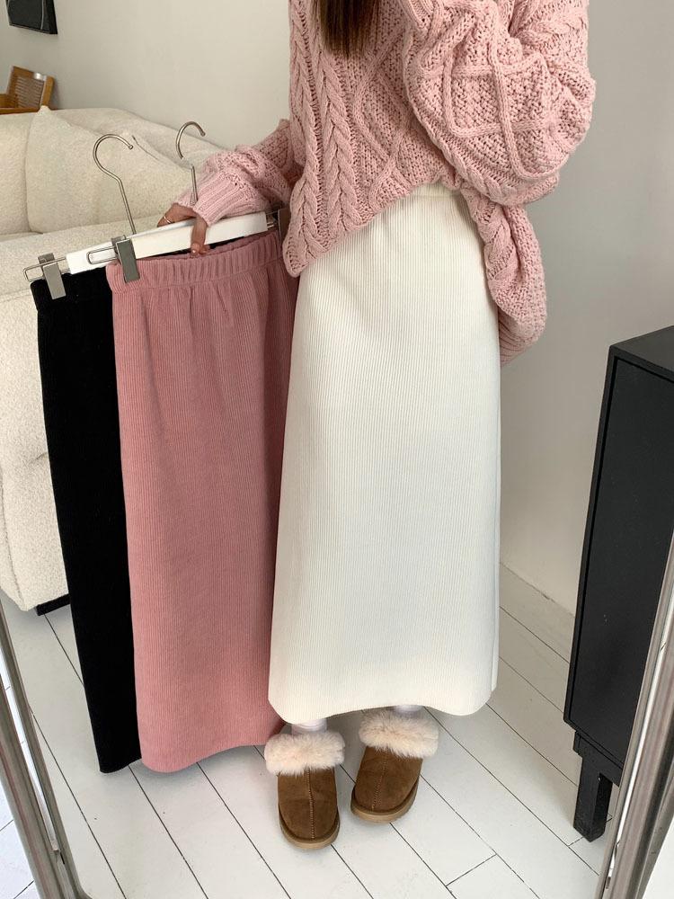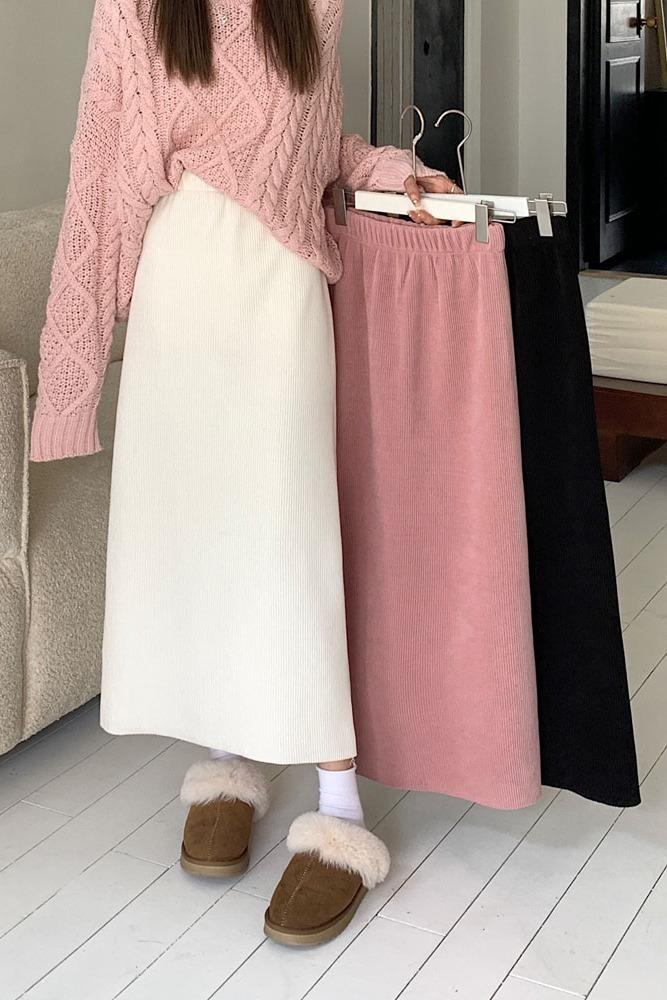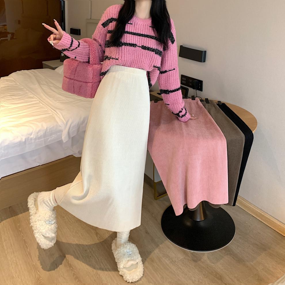 Falda de pana gruesa de otoño e invierno, cintura alta, adelgazante, elástica, con abertura en la cadera, línea A, longitud media, de un solo paso.